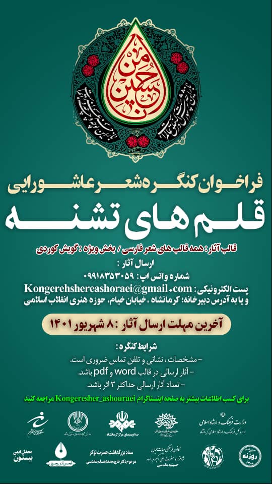 گفتنی است این کنگره با همکاری اداره کل فرهنگ و ارشاد اسلامی، حوزه هنری سازمان تبلیغات اسلامی، صدا و سیما و اداره کل تبلیغات اسلامی استان کرمانشاه، سازمان بسیج هنرمندان، محفل ادبی بیستون، کانون فرهنگی هنری و هیئت محبان شاهزاده حضرت علیاکبر (ع) حسینیه مقدسی و برخی دیگر از نهادها برگزار می شود.