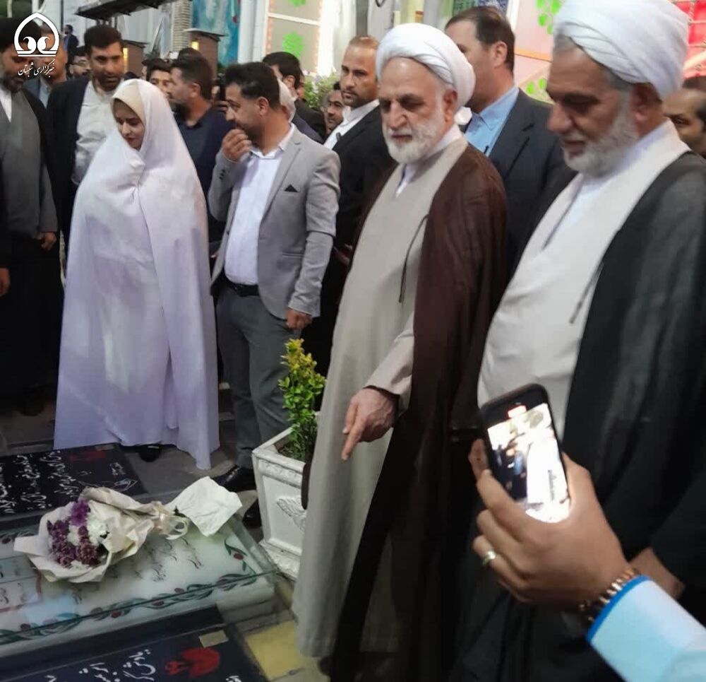 همزمانی حضور رئیس قوه قضائیه و یک زوج جوان در گلزار شهدای کرمان
