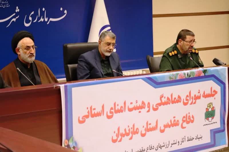 به گزارش خبرنگار خبرگزاری شبستان از استان مازندران، سرهنگ پاسدار محمد حسن سلامی-مدیرکل حفظ آثار و نشر ارزش های دفاع مقدس مازندران در جلسه شورای هماهنگی و هیئت امنای استانی دفاع مقدس استان که در فرمانداری ساری برگزارشد، با بیان اینکه موضوع دفاع مقدس و مقاومت، موضوع انقلاب و توجه به ارزش های انقلابی و مکتب انقلاب، امام و شهدا، مقاومت، زنده کردن یاد و راه شهیدان است، اظهار کرد: خداوند متعال را شاکریم به همت مردم و مسئولین در هفته دفاع مقدس که هفته بزرگداشت انقلاب و ارزشهای انقلاب اسلامی است تلاشهای ارزشمندی در استان مازندران صورت گرفت.