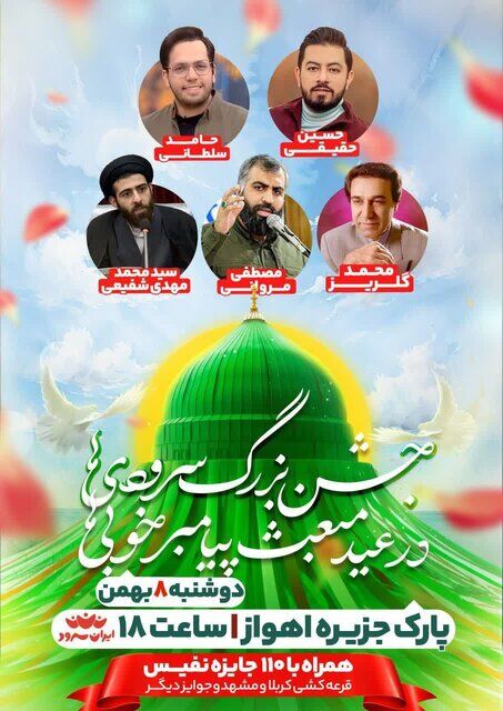 به گزارش خبرنگار خبرگزاری شبستان از خوزستان، جشن بزرگ ایران سرود، هشتم بهمنماه همزمان با ۲۷ رجب و فرارسیدن عید مبعث، در پارک جزیره اهواز با حضور اقشار مختلف مردم برگزار میشود. برنامه «ایران سرود» در دو سال گذشته با هدف معرفی گروههای سرود مختلف در سراسر ایران تولید شده است.