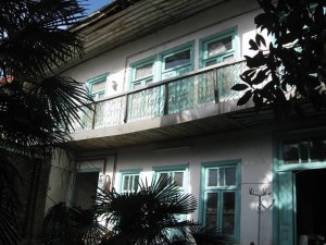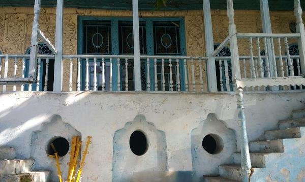 در هر طبقه ایوان باریکی در ضلع رو به حیاط بنا قرار داشت. ستونهای ایوان طبقهی همکف، به صورت آجری و در طبقه اول از ستونهای چوبی ساده استفاده شده بود. خانم ژنی در این عمارت تنها زندگی میکرد و پیش از فوت خانه را به سرایدارش بخشیده بود.