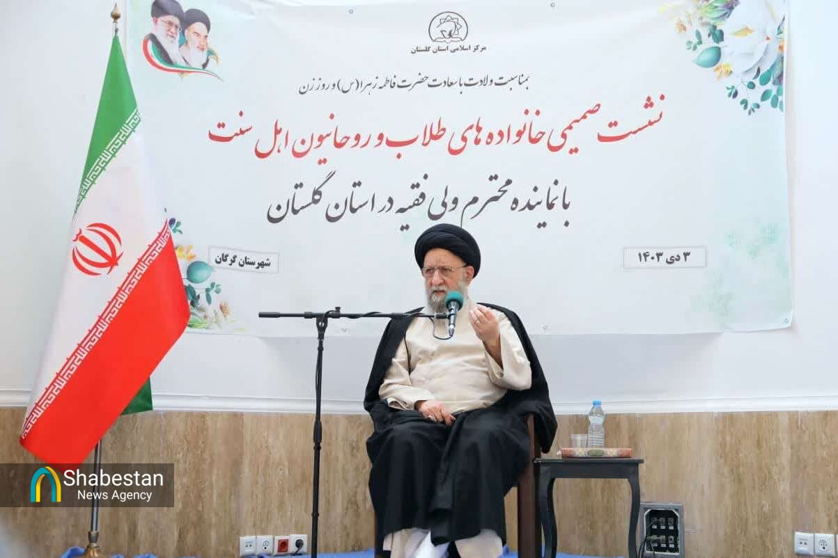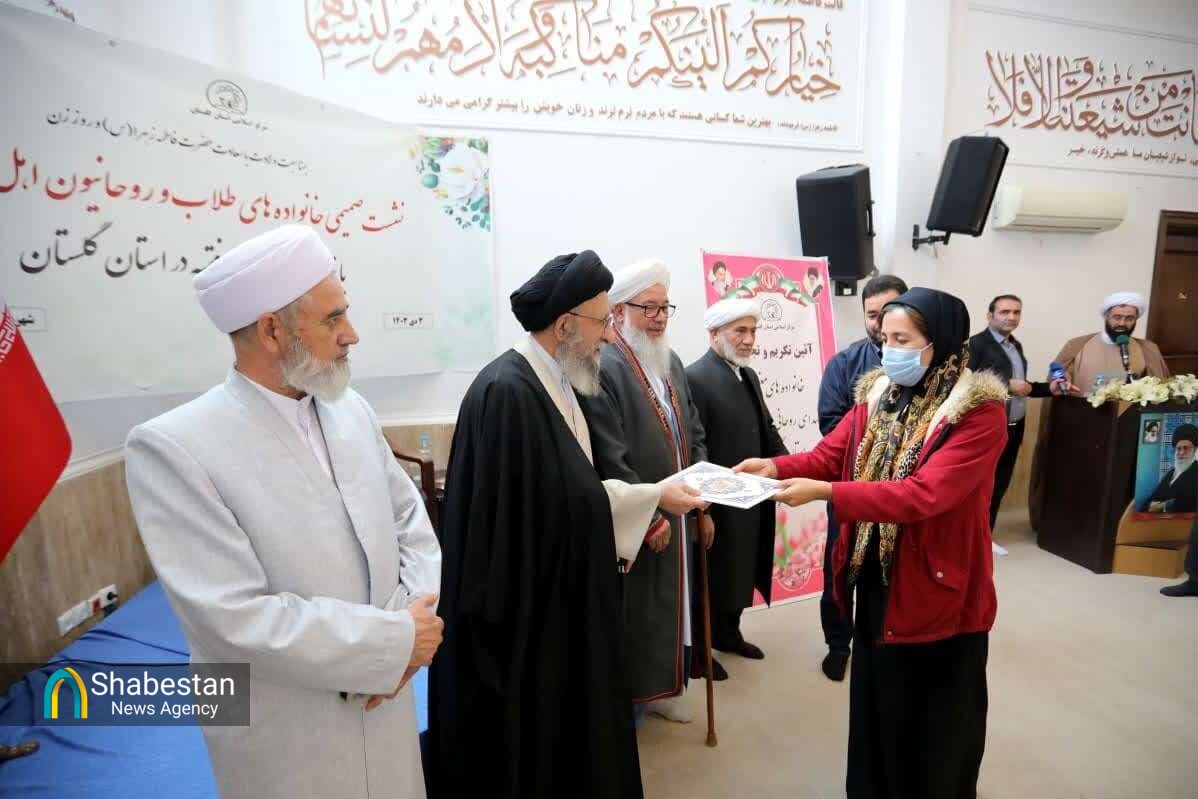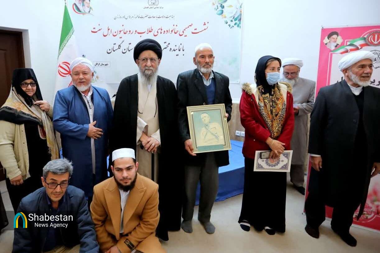 به مناسبت ولادت با سعادت حضرت فاطمه زهرا(س) و روز زن، نشست صمیمی جمعی از خانواده های طلاب و روحانیون اهل سنت استان گلستان با آیت الله سیدکاظم نورمفیدی، نماینده مقام معظم رهبری در استان گلستان و امام جمعه گرگان در بیت الزهرا(س) گرگان برگزار شد. در پایان این مراسم از جمعی از خانواده های شهدا و ایثارگران تجلیل به عمل آمد.