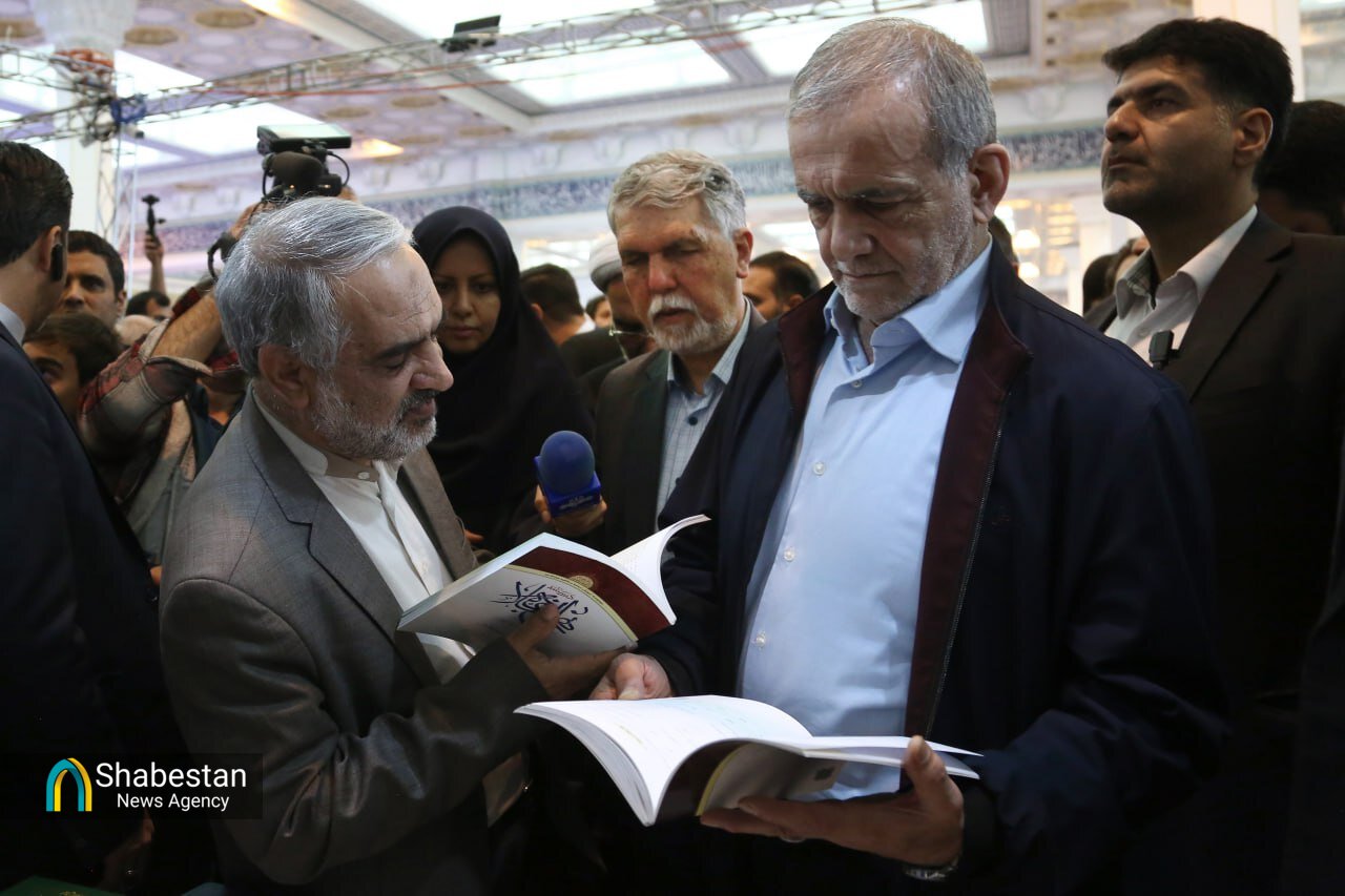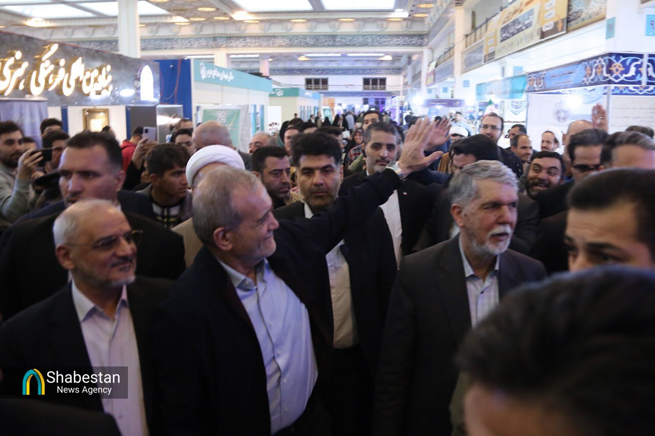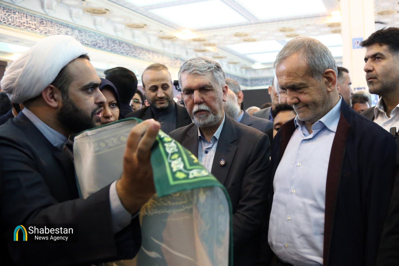 رئیسجمهور، مسعود پزشکیان با همراهی وزیر فرهنگ در آخرین روز از سیودومین نمایشگاه بینالمللی قرآن کریم در مصلای امام خمینی(ره) حضور یافت و از غرفههای مختلف این نمایشگاه بازدید کرد.