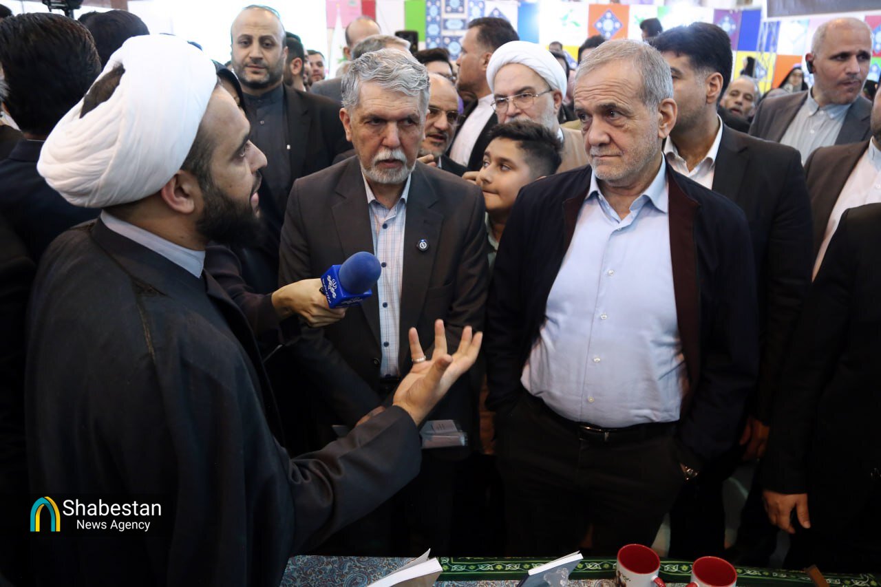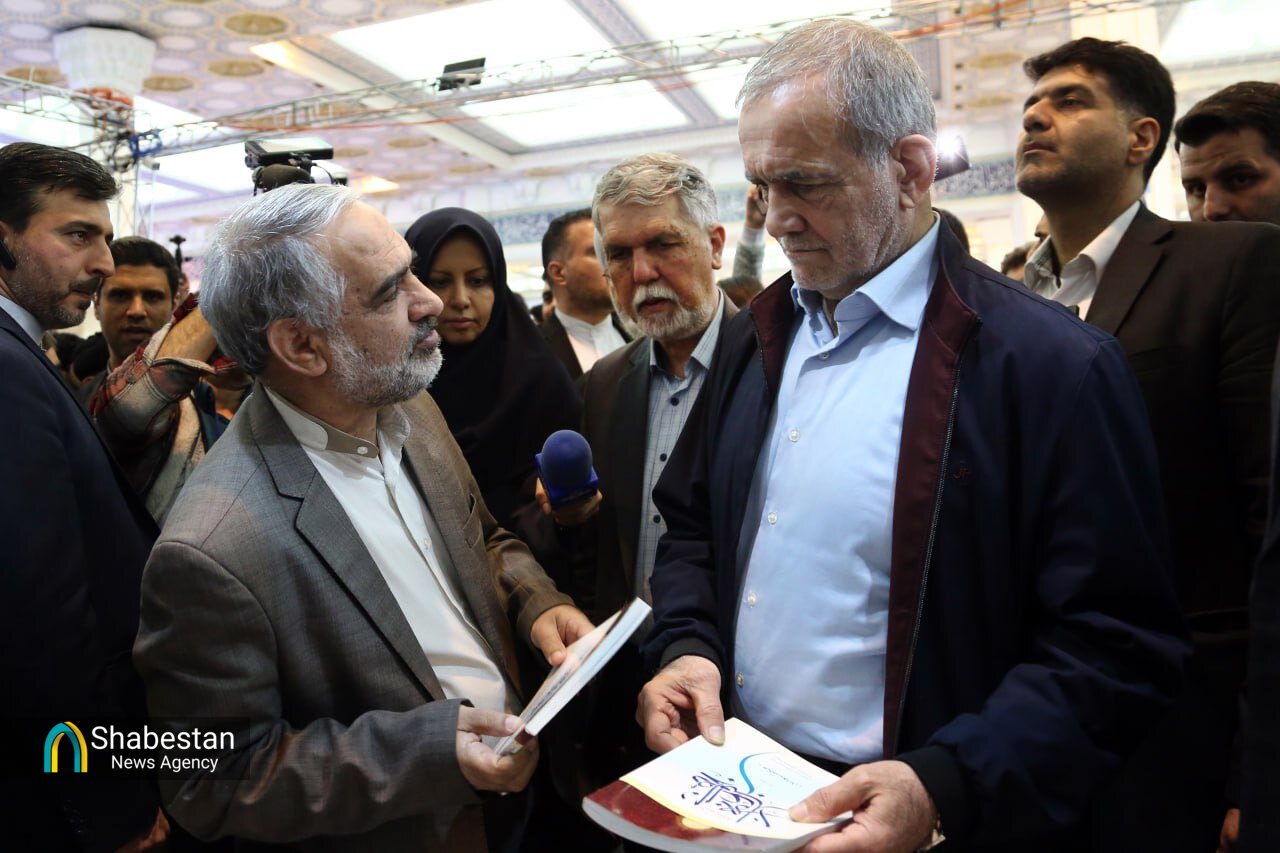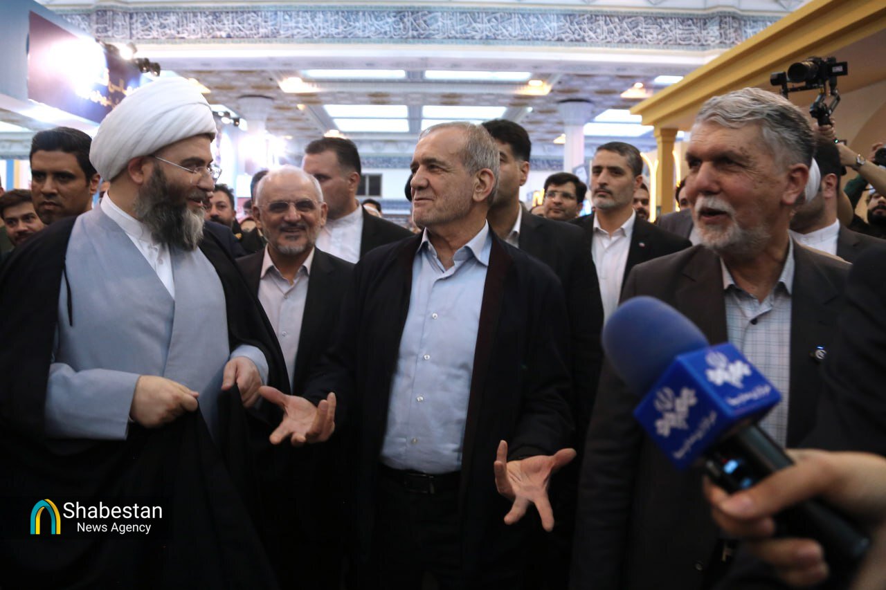 رئیسجمهور، مسعود پزشکیان با همراهی وزیر فرهنگ در آخرین روز از سیودومین نمایشگاه بینالمللی قرآن کریم در مصلای امام خمینی(ره) حضور یافت و از غرفههای مختلف این نمایشگاه بازدید کرد.