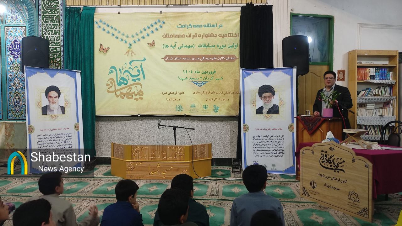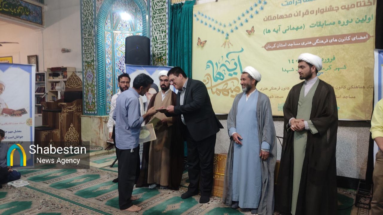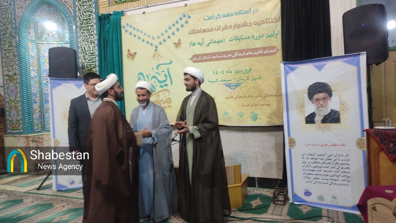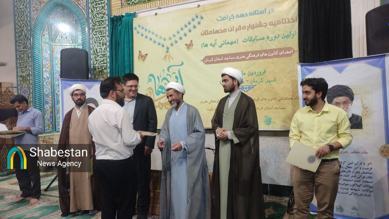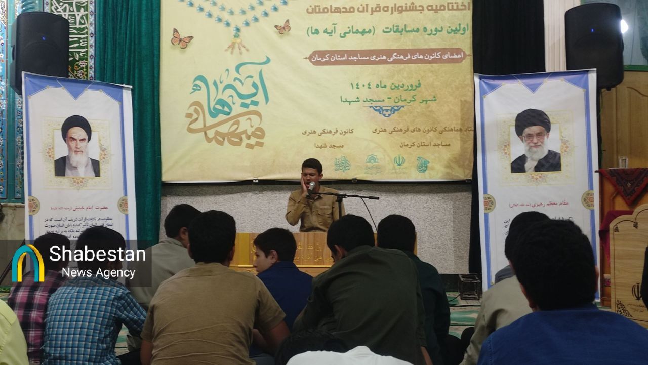 اختتامیه مرحله استانی هفدهمین جشنواره قرآنی مدهامتان ( اولین دوره جشنواره قرآنی مهمانی آیه ها) با حضور ۸ تیم متشکل از ۱۰۰ نفر شرکت کننده به میزبانی کانون شهدای مسجد با قدرت شهر کرمان برگزار شد.