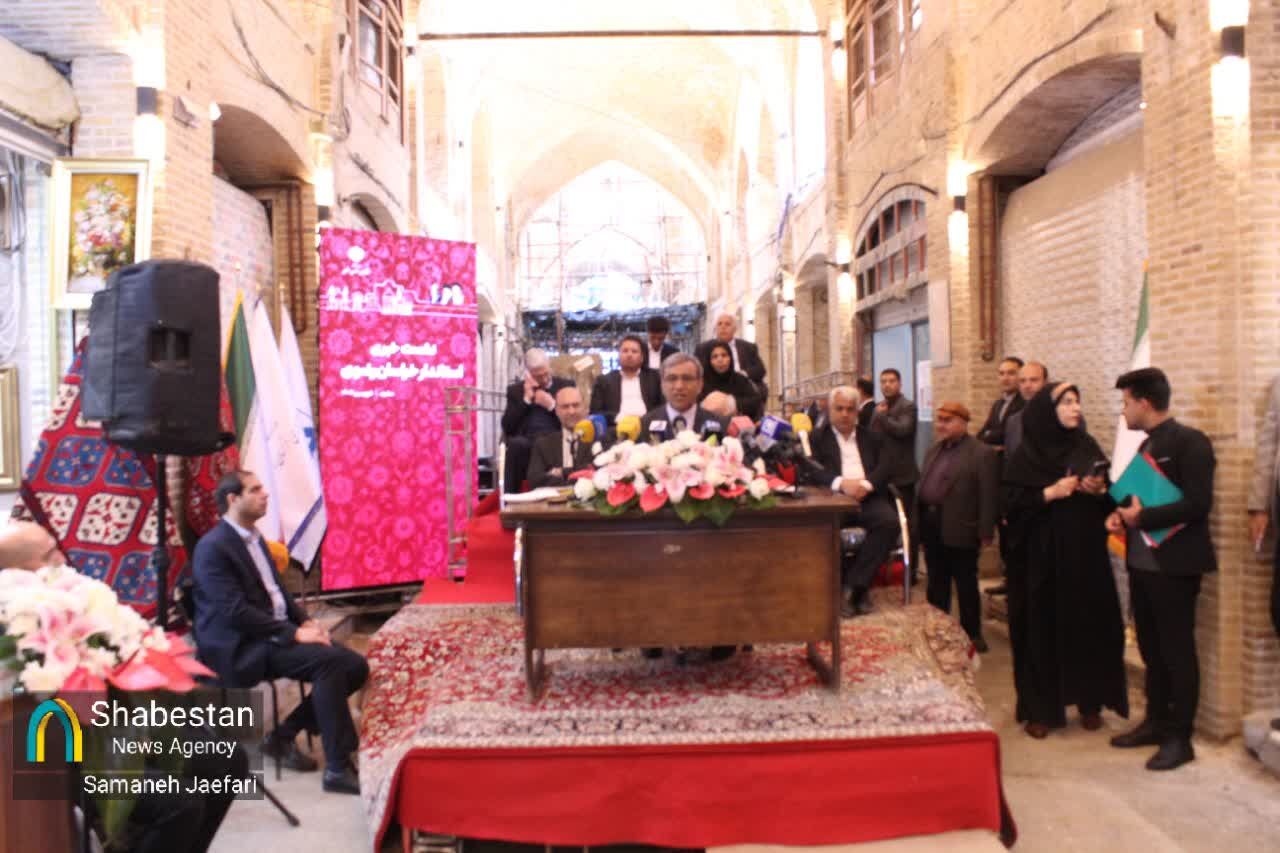 اولین نشست خبری غلامحسین مظفری، استاندار خراسان رضوی امروز شنبه ۳۰ فروردین ماه در مکان تاریخی و فرهنگی بازار فرش مشهد برگزار شد و استاندار ضمن گزارش عملکرد شش ماهه خود، به سوالات خبرنگاران پاسخ داد.