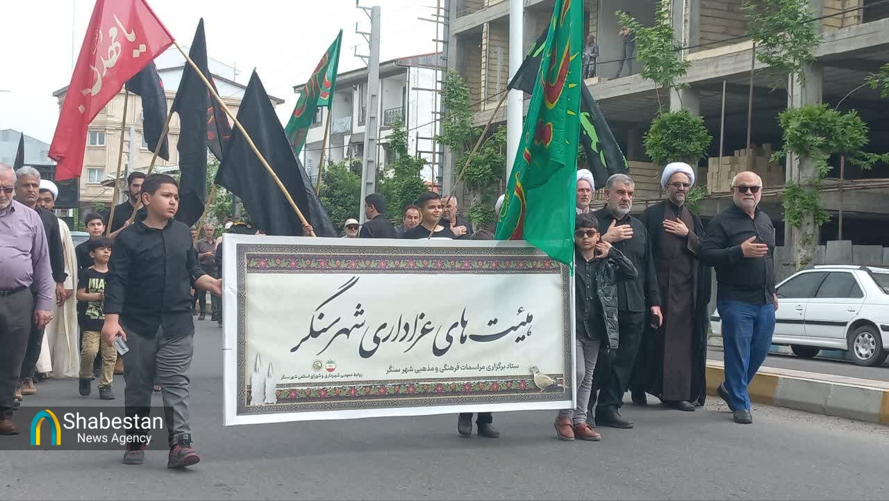 همزمان با سالروز شهادت امام جعفر صادق(ع)، رییس مذهب تشییع، مردم مومن و ولایتمدار سنگر در دسته عزاداری و سینه زنی، مسیر حوزه مقاومت بسیج سنگر به سمت مزار شهید گمنام را پیمودند.