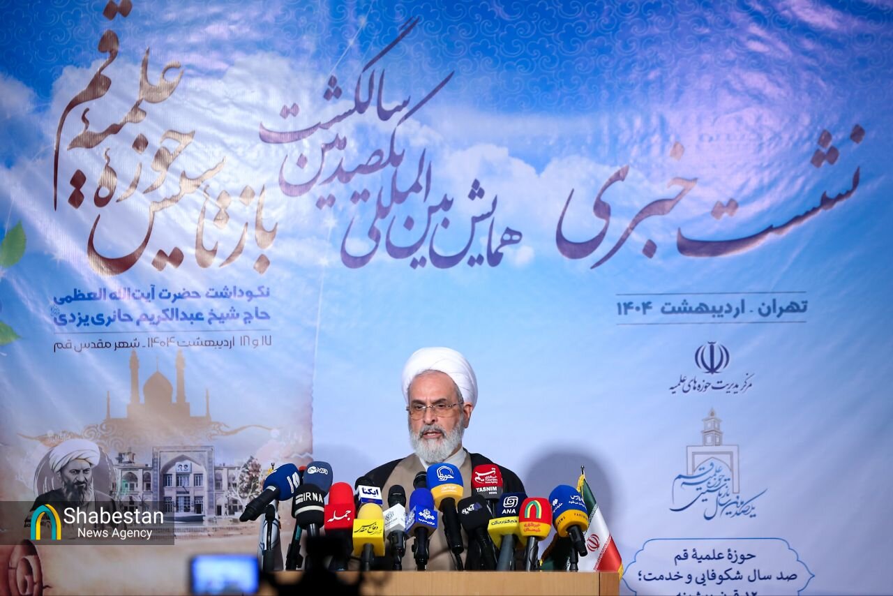 نشست خبری همایش بینالمللی یکصدمین سالگشت بازتأسیس حوزه علمیه قم (نکوداشت حضرت آیتالله حاج شیخ عبدالکریم حائری یزدی) امروز یکشنبه، ۱۴ اردیبهشت ماه ۱۴۰۴ با حضور آیتالله اعرافی، مدیر حوزههای علمیه کشور در باغ موزه ملک برگزار شد.