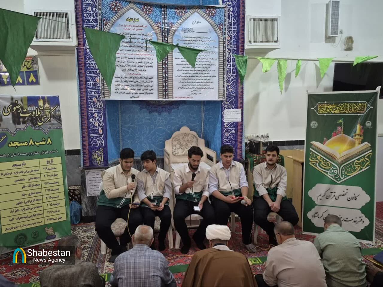 بمناسبت دهه کرامت کرسی تلاوت رضوی با عنوان۸ شب ۸ مسجد در مسجد ثارالله(س) شهرک ظفر، مسجد اشجاری خیام، مسجد الزهرا(س) شهرک تعاون، مسجد قمربنی هاشم(ع) شاطرآباد و مسجد چهارمین شهید محراب الهیه برگزار شد.