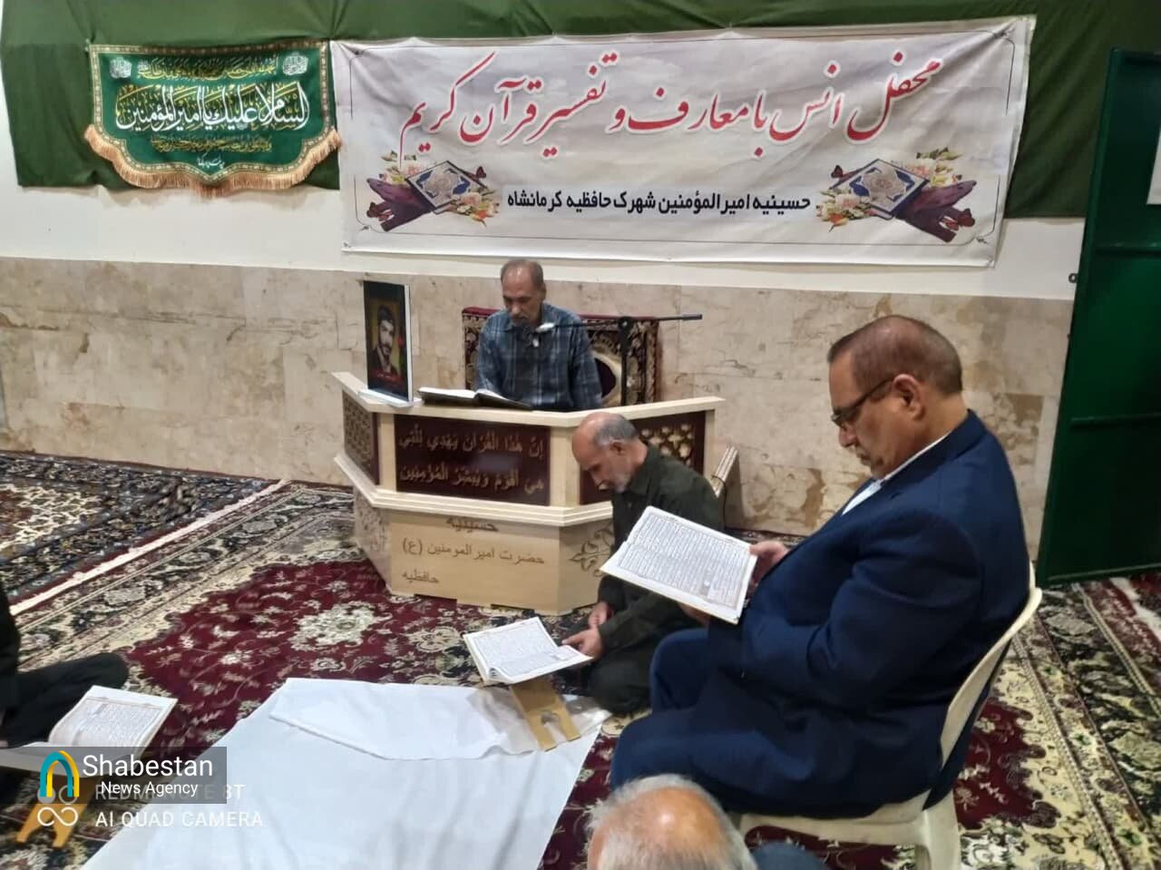 همزمان با ایام دهه کرمات جلسه تلاوت و تفسیر قرآن کریم به یاد شهید محمد رضا رحمانی و با حضور خانواده شهید، امروز جمعه در حسینیه امیر المومنین(ع) حافظیه کرمانشاه برگزار شد.