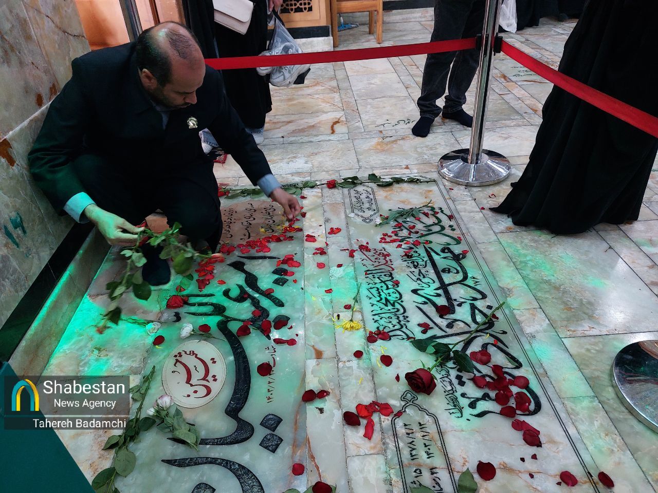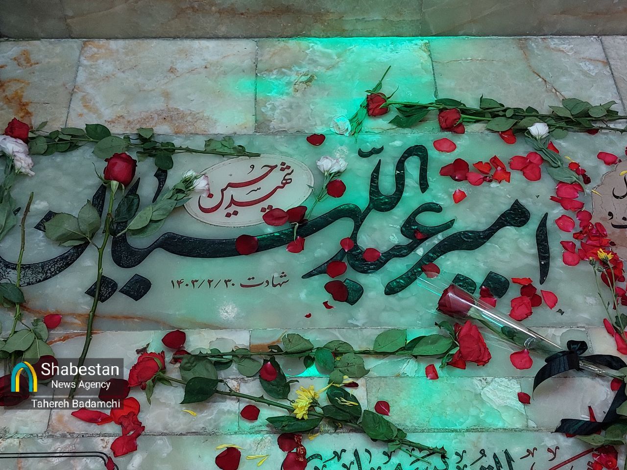 همزمان با سالگرد پرواز اردیبهشت، یادآور شهادت آیتالله رئیسی و همراهان؛ مزار وزیر شهید امورخارجه، حسین امیر عبداللهیان در ضلع شمالی شبستان امام خمینی(ره) حرم مطهر حضرت عبدالعظیم حسنی علیه السلام حال و هوای خاصی دارد و زواری از راه دور و نزدیک به مقام شهدا ادای احترام میکنند؛ مزار شهید امیر عبداللهیان در جوار مزار شهید سیدمهدی جلادتی و بالا سر شهید وحید زمانینیا است.