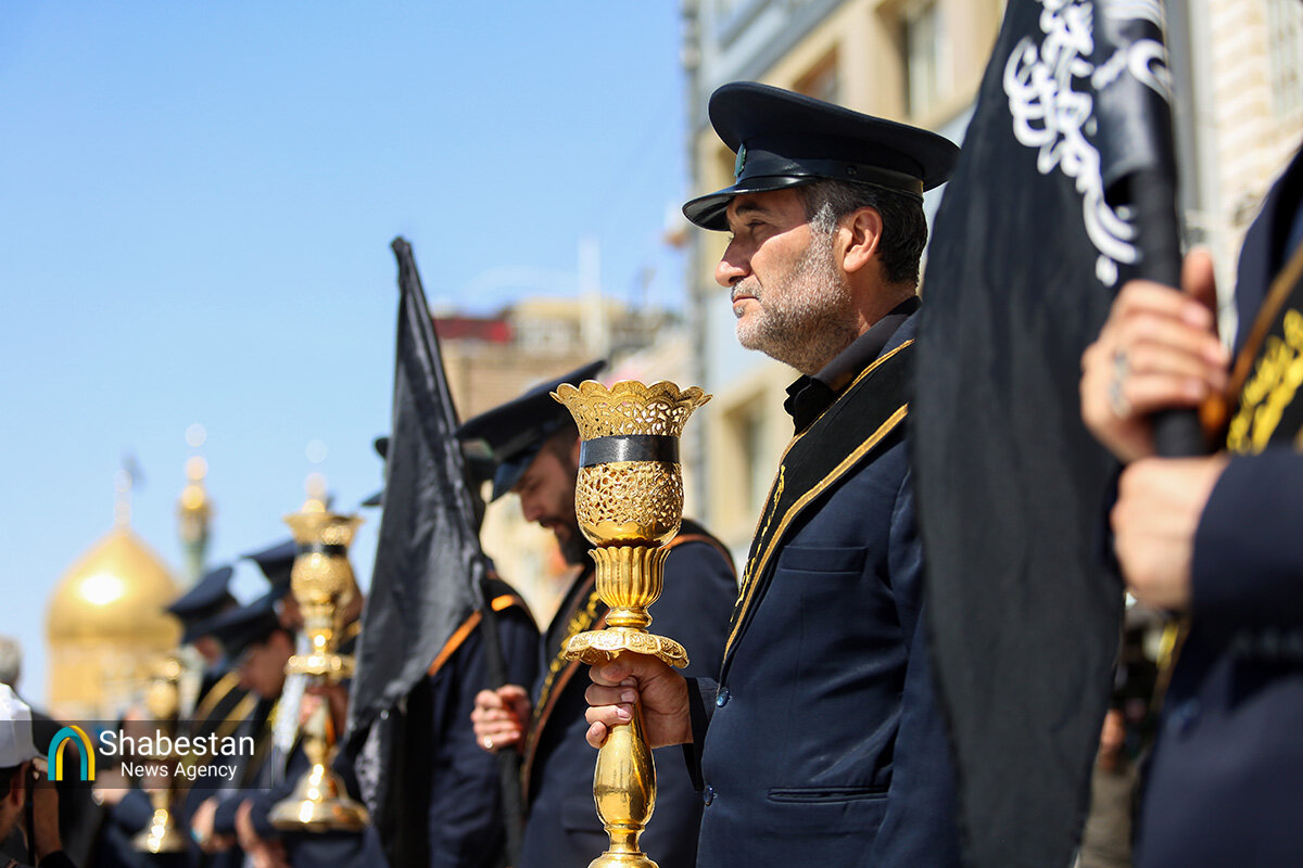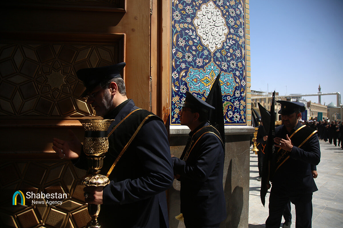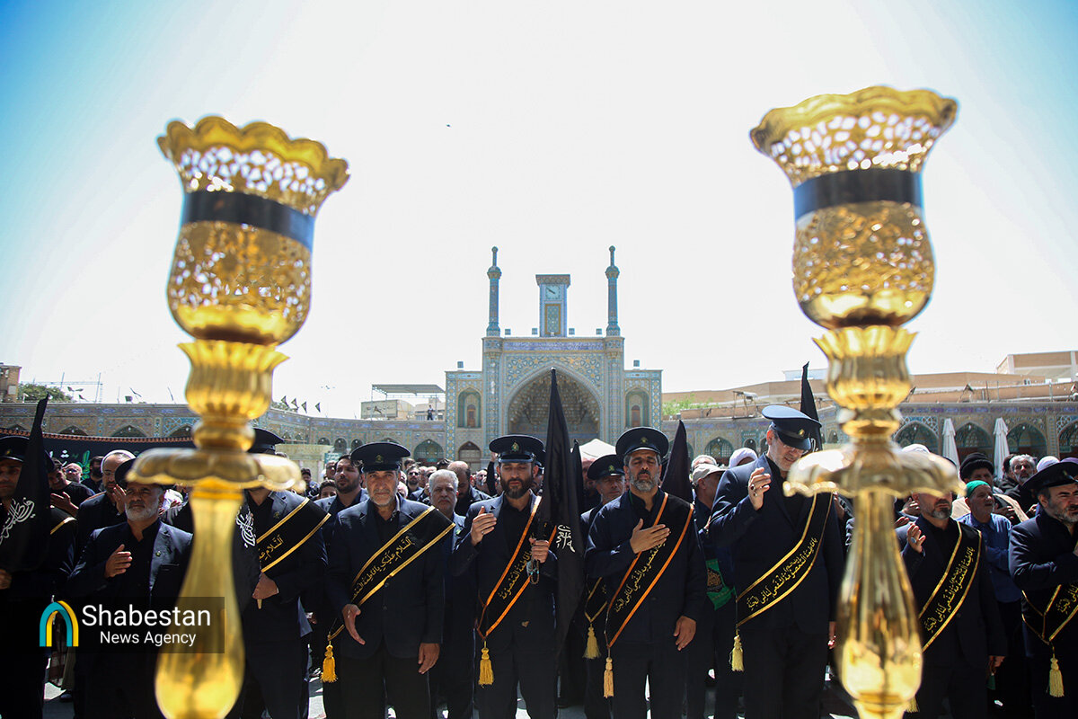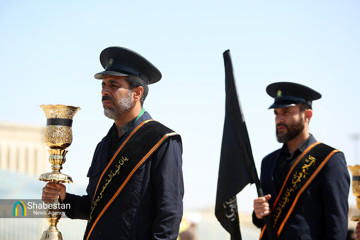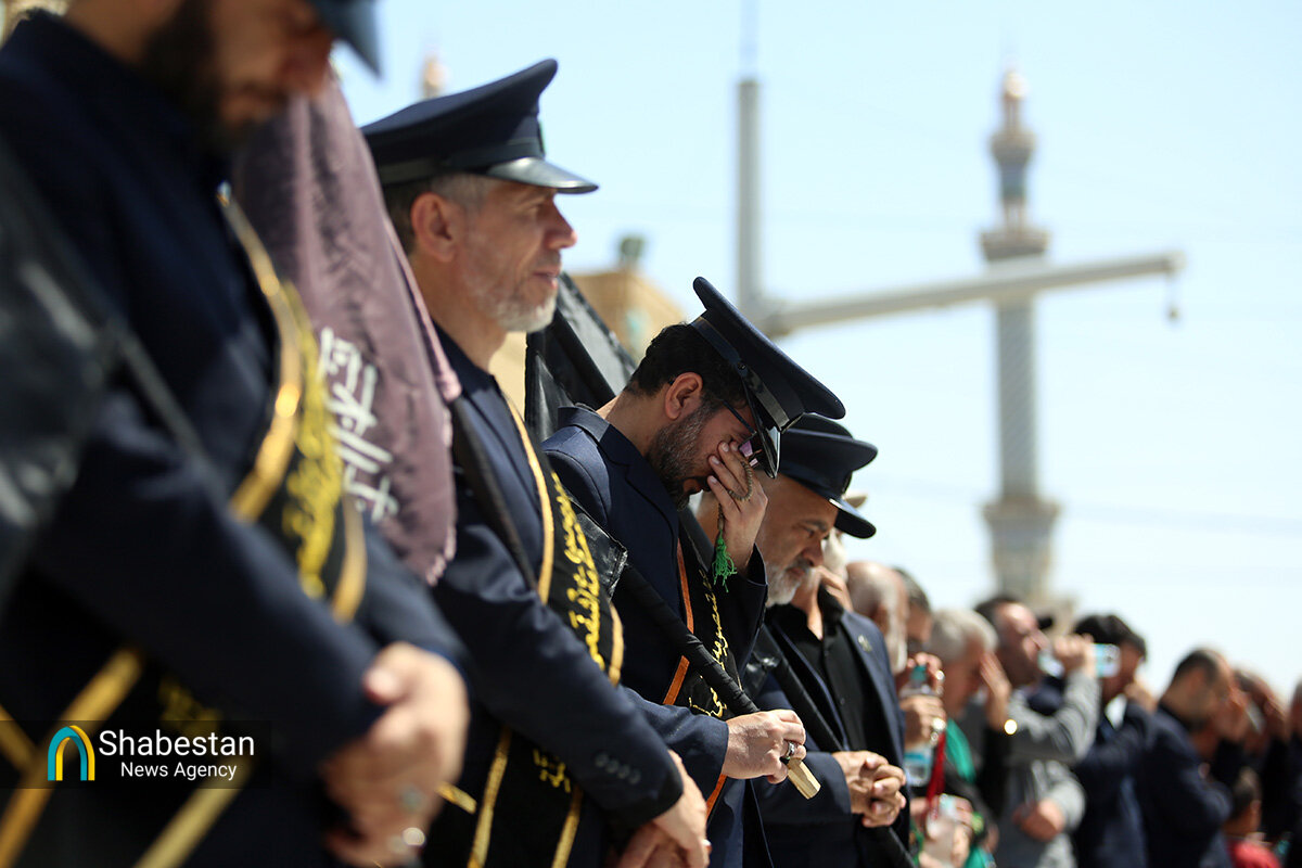دسته عزای خادمان و زائران حرم مطهر بانوی کرامت امروز از مسجد امام حسن عسکری علیه السلام به سمت حرم مطهر بانوی کرامت به راه افتاد و مراسم عزاداری با مداحی حسن اسداللهی در صحن امام رضا علیه السلام با حضور پرشور مردم برپا شد.