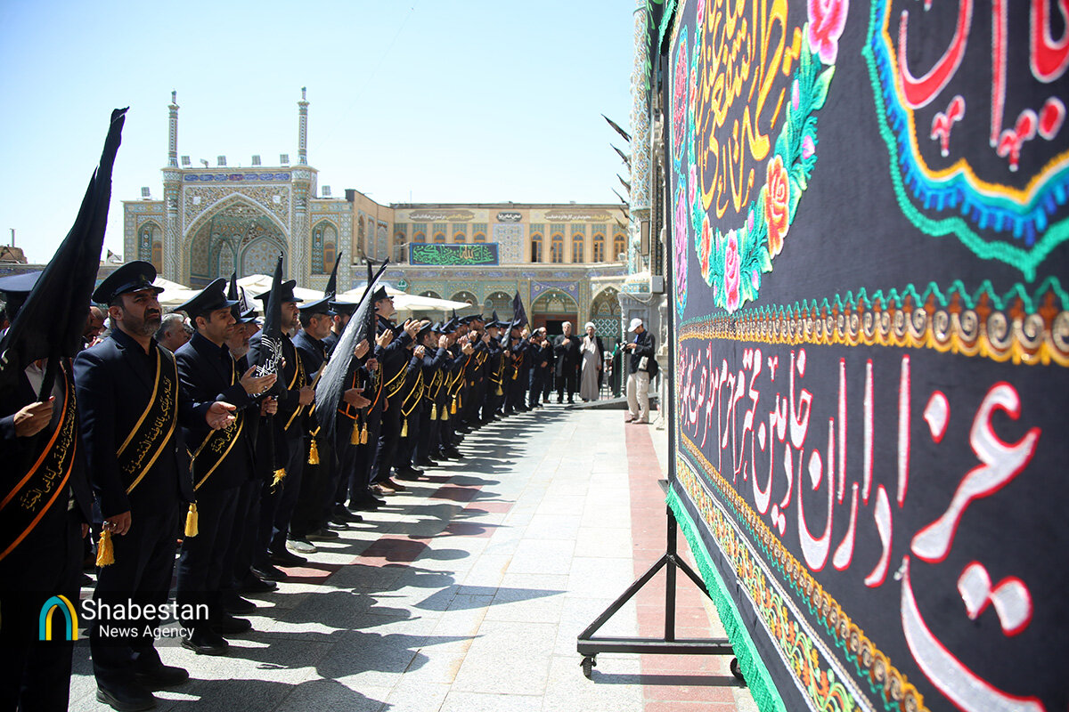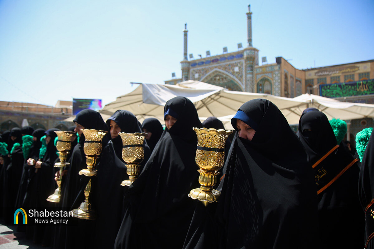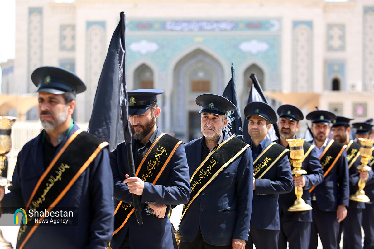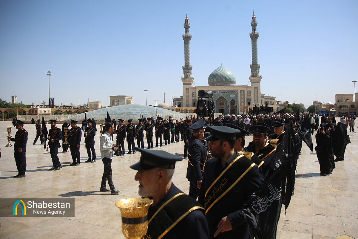 دسته عزای خادمان و زائران حرم مطهر بانوی کرامت امروز از مسجد امام حسن عسکری علیه السلام به سمت حرم مطهر بانوی کرامت به راه افتاد و مراسم عزاداری با مداحی حسن اسداللهی در صحن امام رضا علیه السلام با حضور پرشور مردم برپا شد.