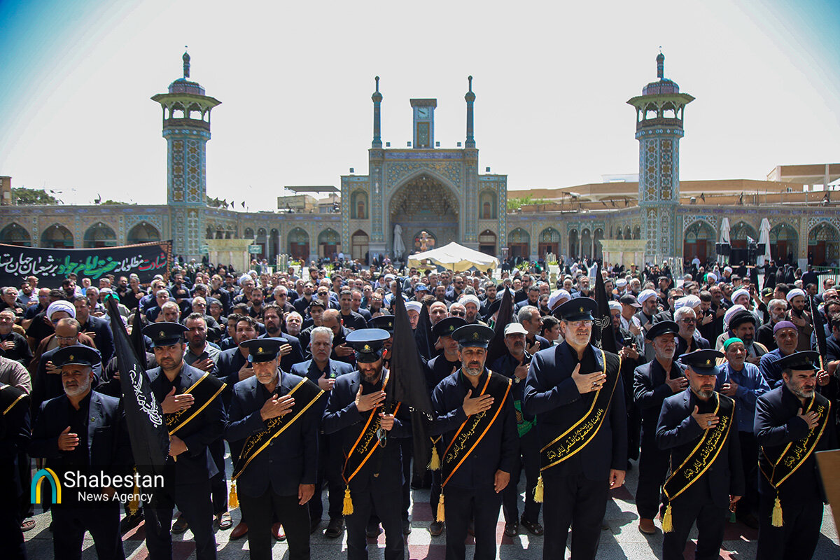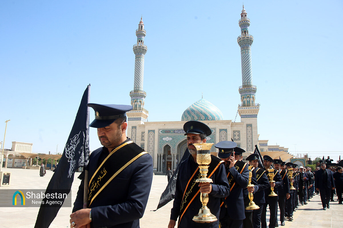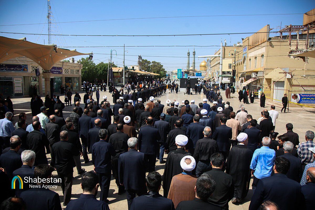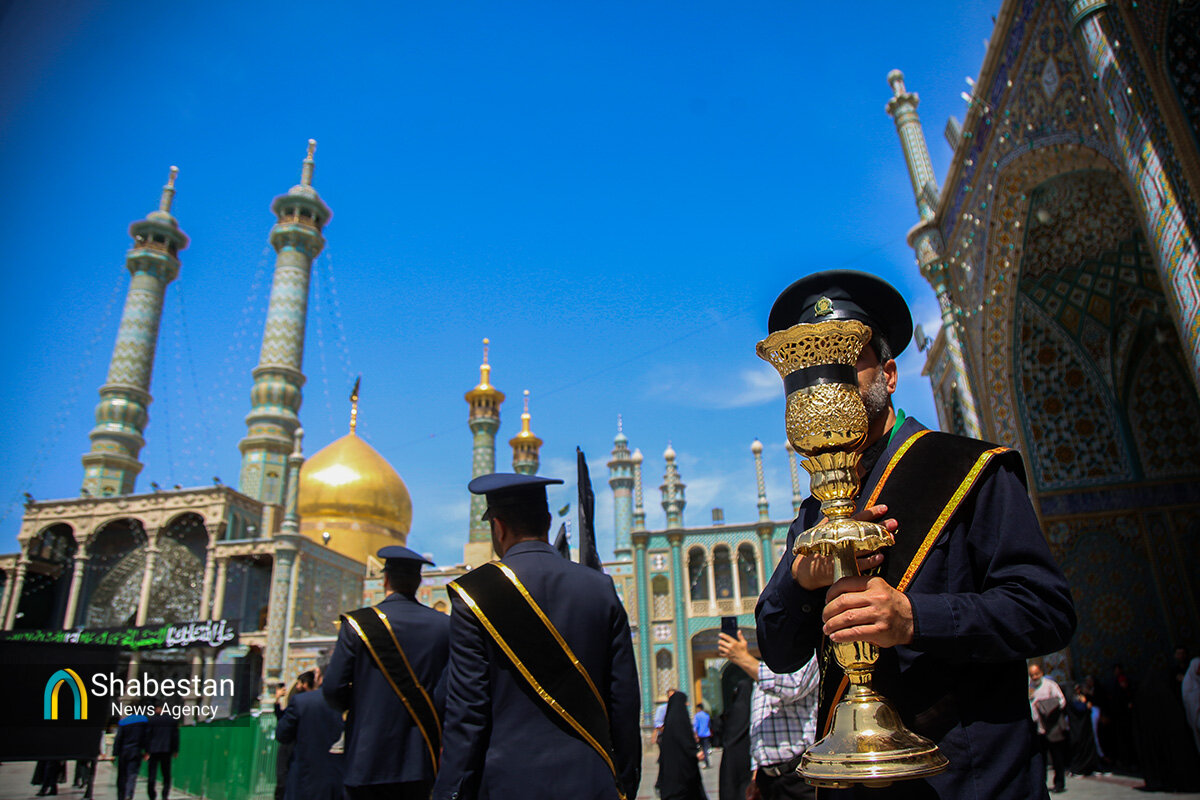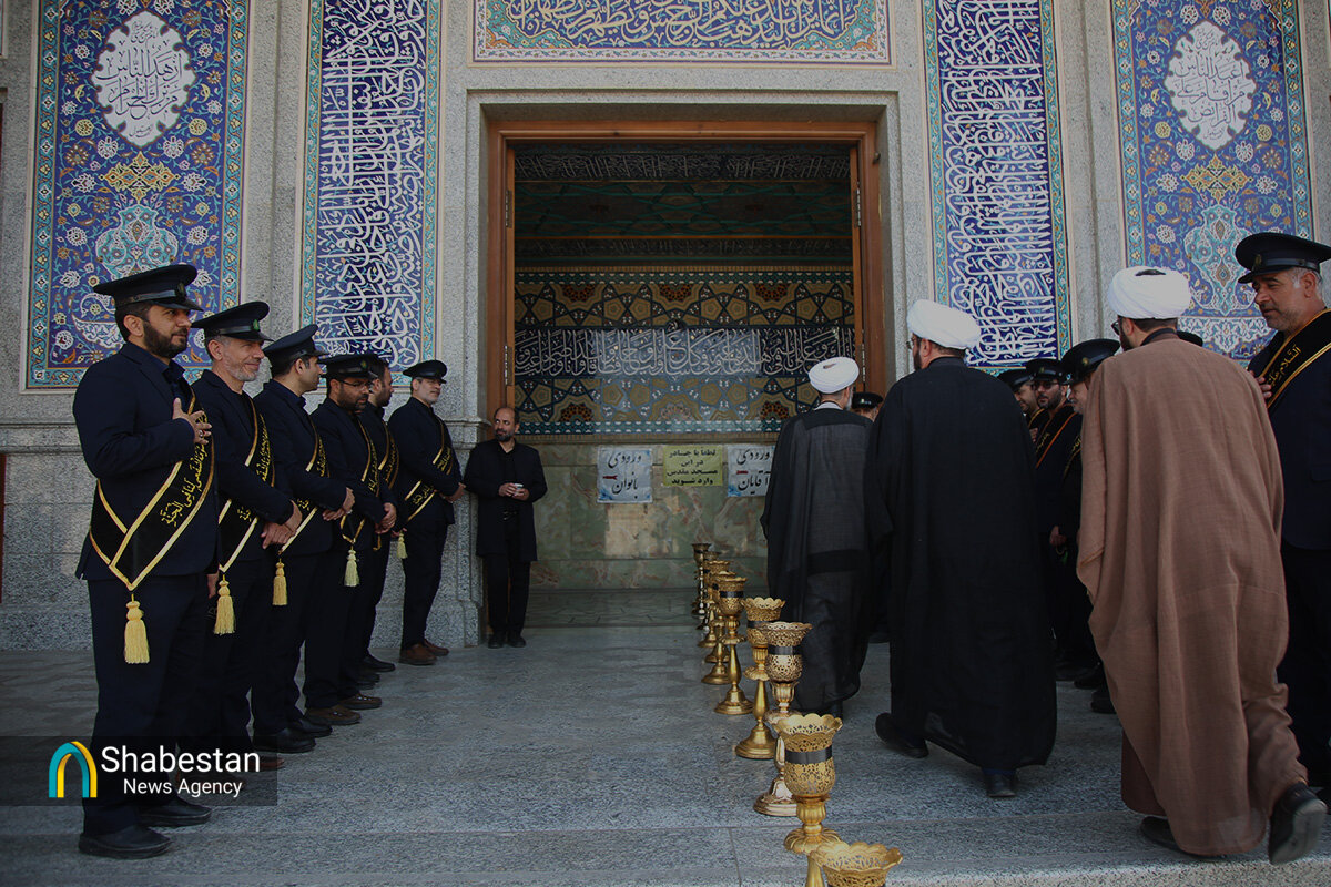دسته عزای خادمان و زائران حرم مطهر بانوی کرامت امروز از مسجد امام حسن عسکری علیه السلام به سمت حرم مطهر بانوی کرامت به راه افتاد و مراسم عزاداری با مداحی حسن اسداللهی در صحن امام رضا علیه السلام با حضور پرشور مردم برپا شد.