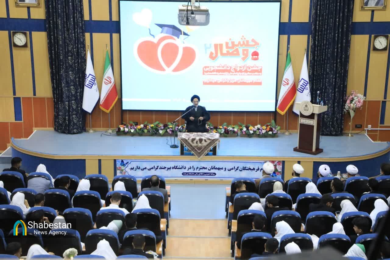 جشن ازدواج دانشجویی «وصال۲» همزمان با سالروز پیوند آسمانی حضرت علی(ع) و حضرت فاطمه(س) با حضور ۱۰۲ زوج دانشجو امروز (۸ خرداد ) در دانشگاه بیرجند برگرار شد.