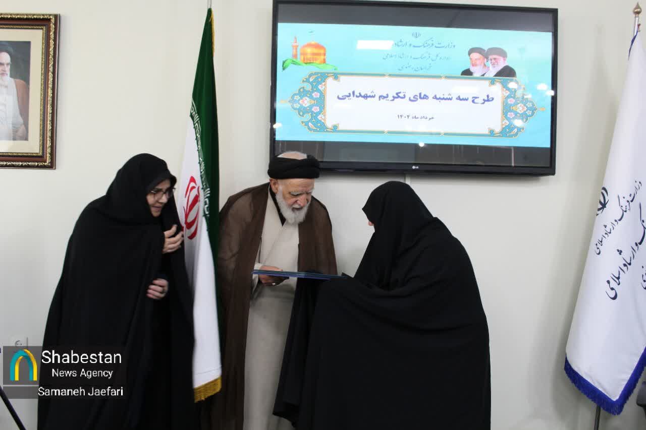 دومین جلسه طرح ملی سه شنبه های تکریم شهدایی با محوریت شهدای کانونی (تکریم خانواده شهدای کانونهای فرهنگی هنری مساجد خراسان رضوی) به صورت برخط با حضور وزیر محترم فرهنگ وارشاد اسلامی جناب آقای دکتر صالحی امروز سه شنبه ۱۳ خرداد۱۴۰۴ در سالن جلسات اداره کل فرهنگ وارشاد اسلامی خراسان رضوی برگزار شد. در این جلسه با حضور حسین مسگرانی، مدیر کل فرهنگ و ارشاد اسلامی استان، خدیوی مدیرکل بنیاد شهید استان و حسن افکار مدیر ستاد کانون های فرهنگی مساجد استان از ۴ خانواده شهدای کانونی مشهد تقدیر شد.