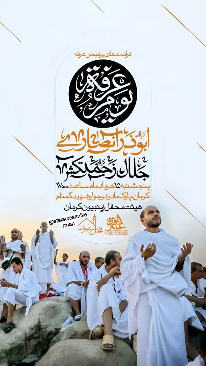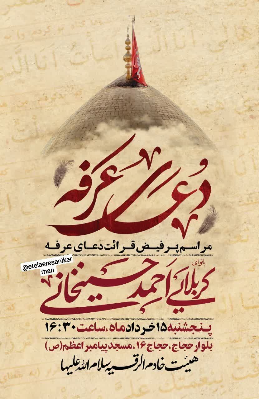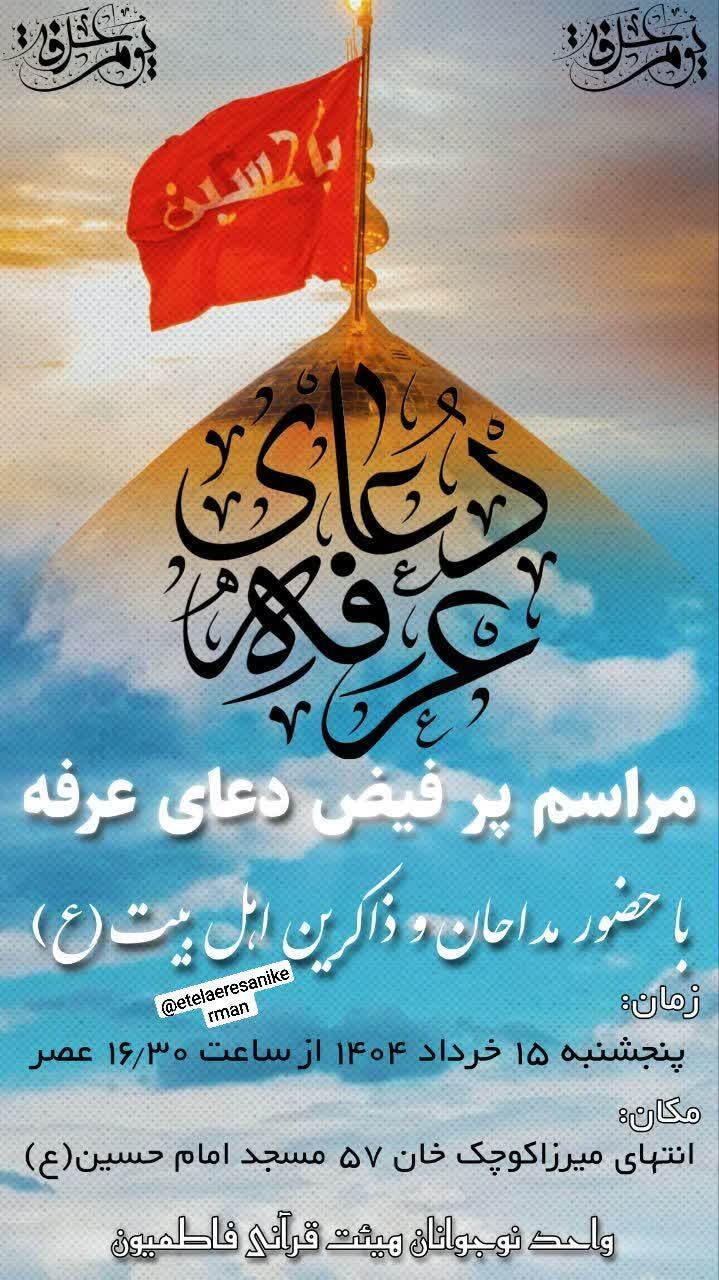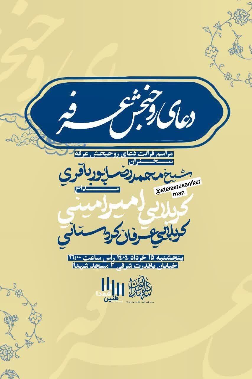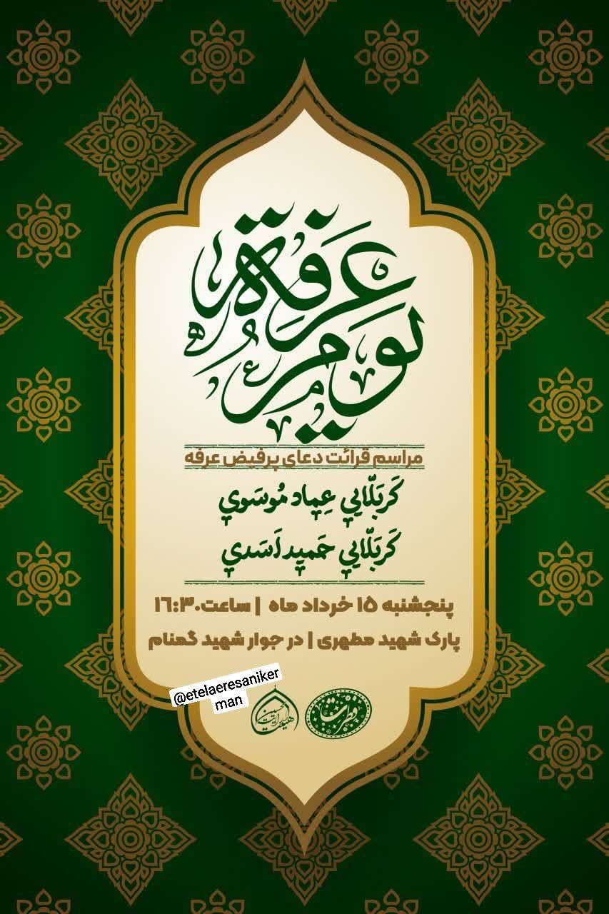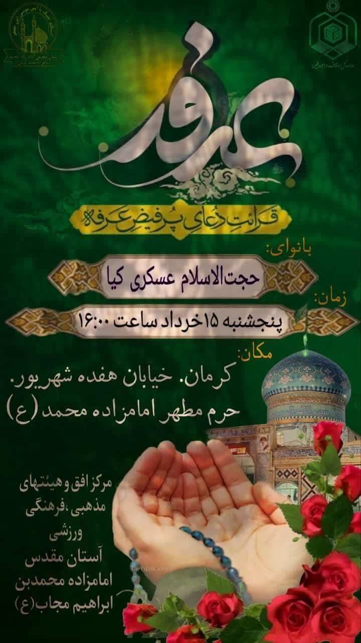 دعای روحبخش عرفه، عصر نهم ذیحجه در صدها نقطه از استان کرمان برگزار می‌شود؛ برخی از این مجالس در قالب پوستر اطلاع‌رسانی شده است.