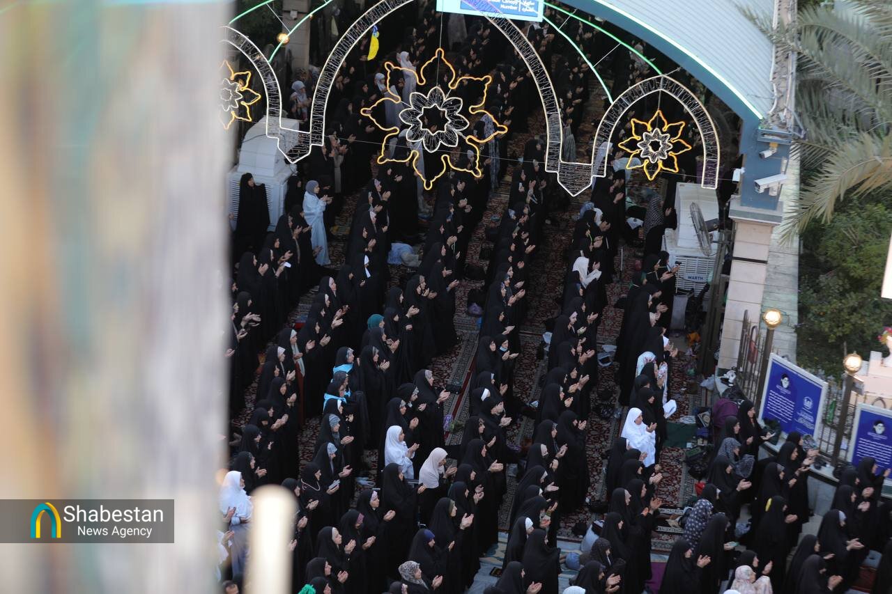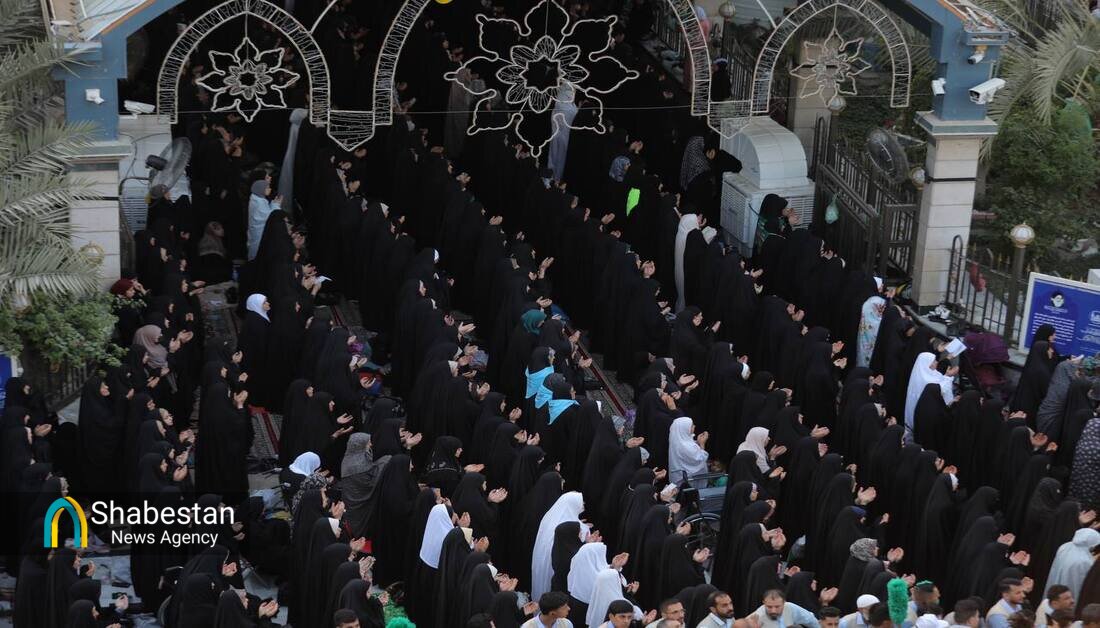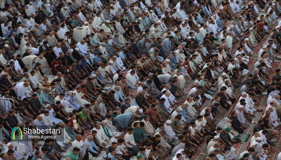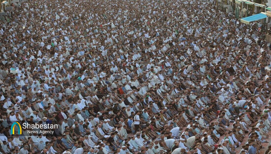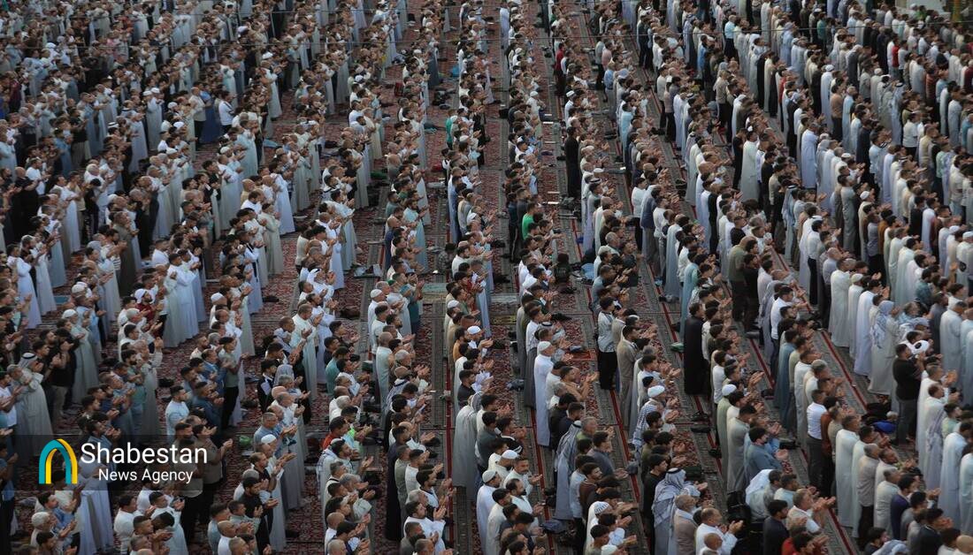 مومنان در فضایی معنوی و دستان دعا رو به آسمان نماز عید قربان را در نزدیکی حرم امام حسین و برادرش حضرت عباس (علیهما السلام) با نوای «لبیک اللهم لبیک» اقامه کردند.