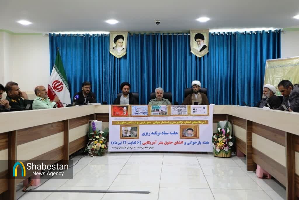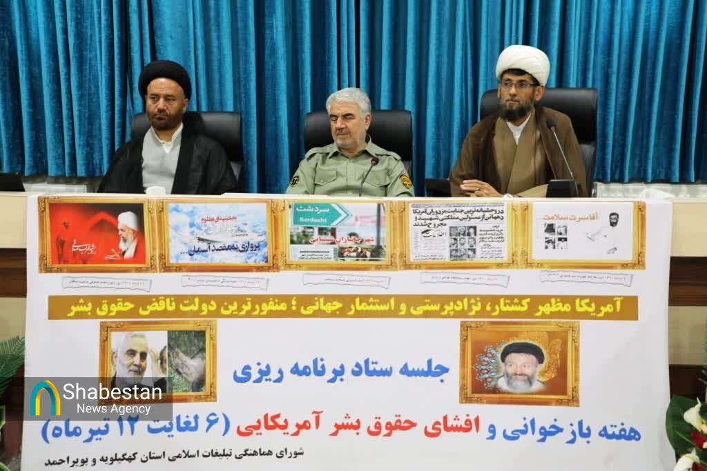 به همت شورای هماهنگی تبلیغات اسلامی استان کهگیلویه و بویراحمد نشست ستاد برنامهریزی هفته بازخوانی و افشای حقوق بشر آمریکایی(۶ لغایت ۱۲ تیر ماه) با حضور اعضا در دفتر نماینده ولی فقیه در استان برگزار شد.