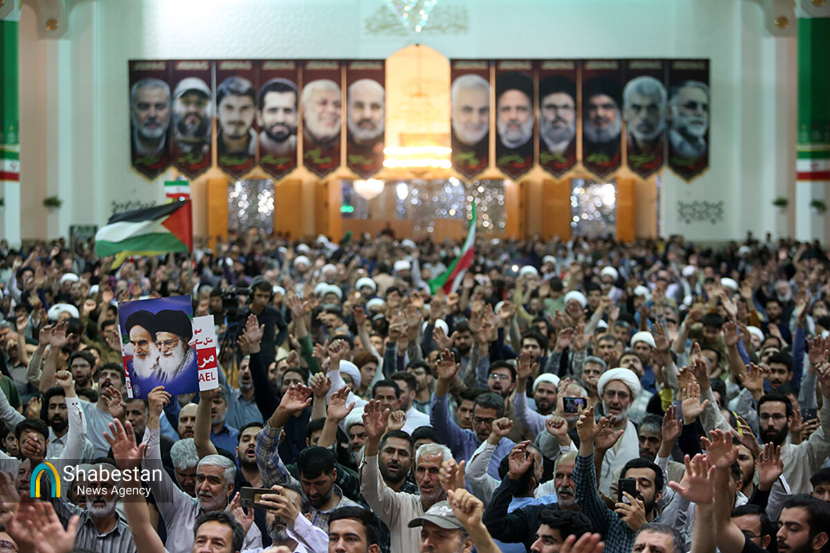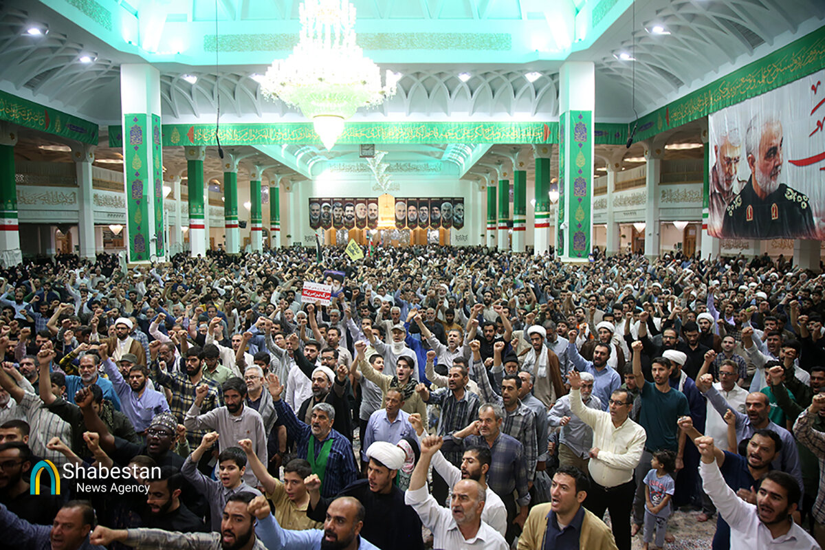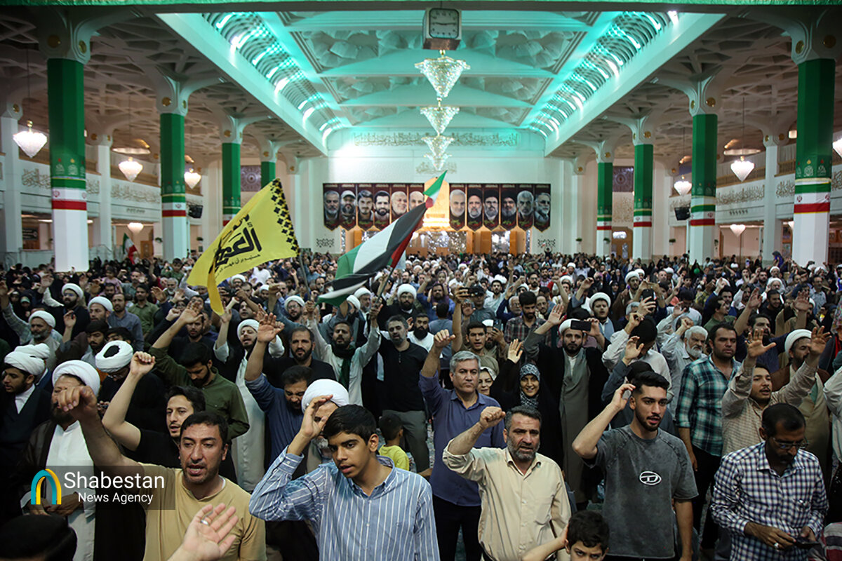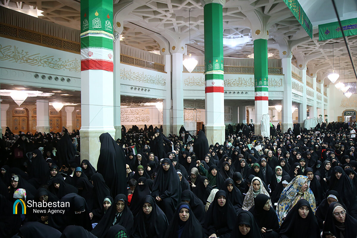 اجتماع بزرگ فداییان علی، غدیریان خیبرشکن به منطور تجدید بیعت امت حزب الله با فاتح خیبر و اعلام انزجار مردم ولایتمدار از جنایات رژیم منحوس صهیونیستی در حرم مطهر حضرت فاطمه معصومه سلام الله علیها برگزار شد.