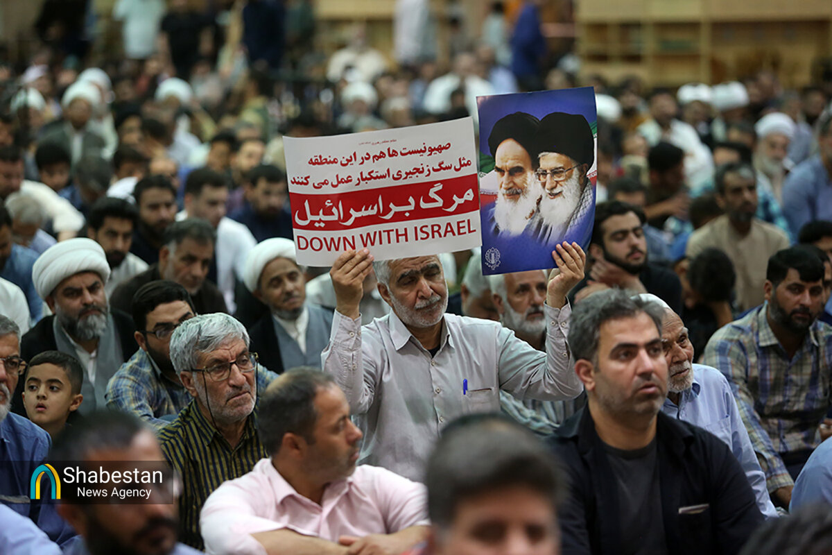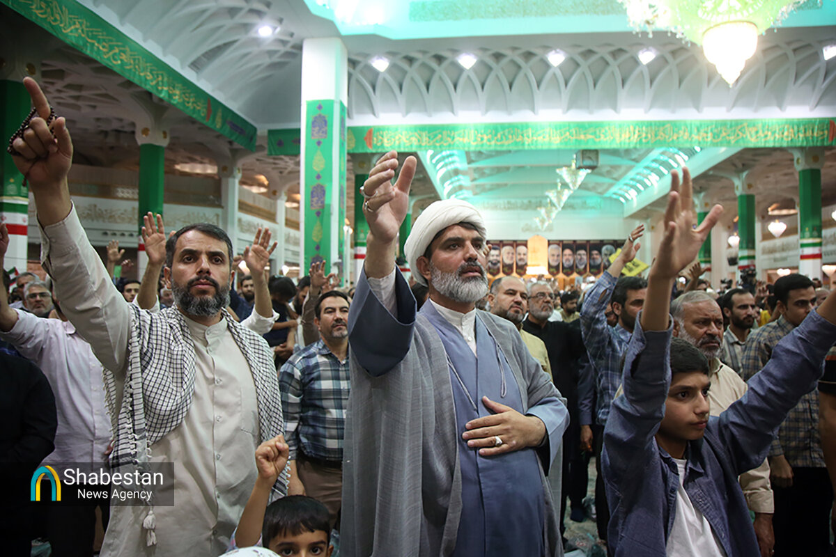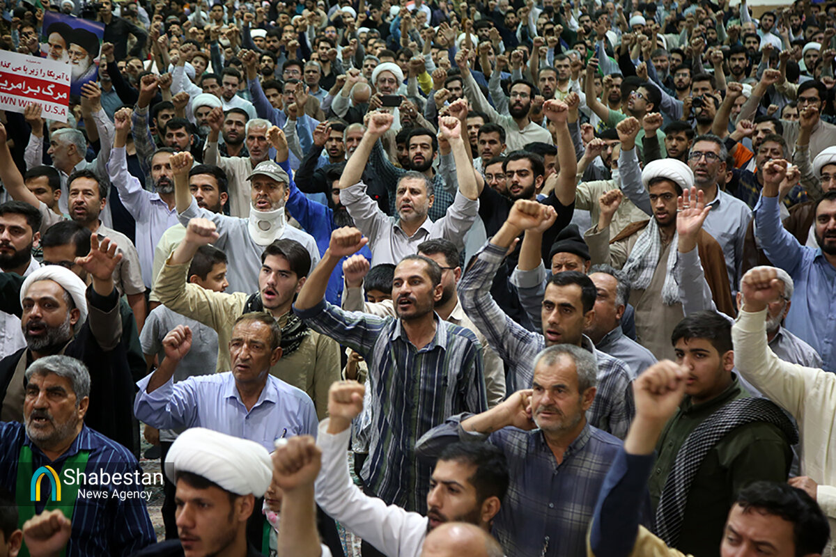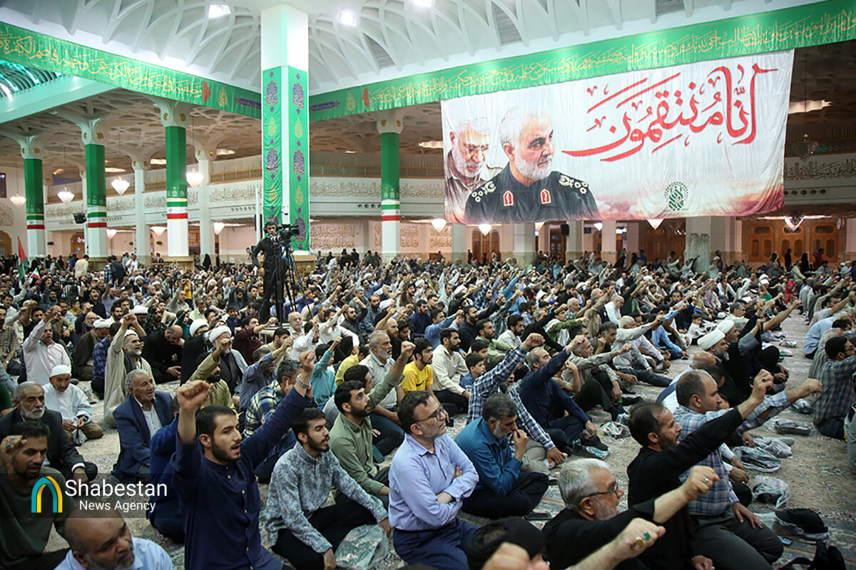 اجتماع بزرگ فداییان علی، غدیریان خیبرشکن به منطور تجدید بیعت امت حزب الله با فاتح خیبر و اعلام انزجار مردم ولایتمدار از جنایات رژیم منحوس صهیونیستی در حرم مطهر حضرت فاطمه معصومه سلام الله علیها برگزار شد.