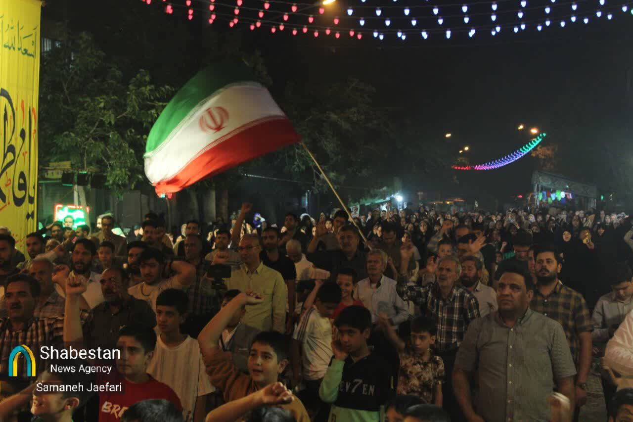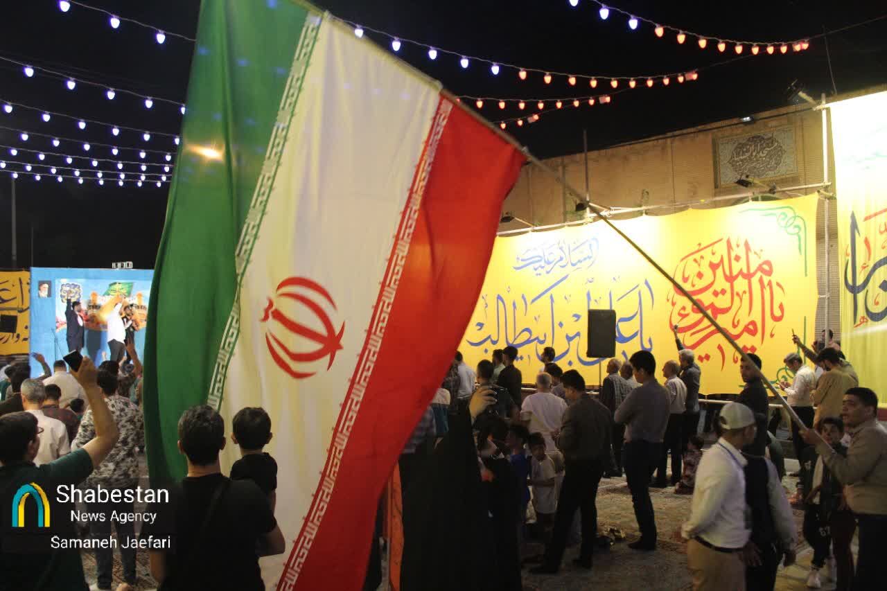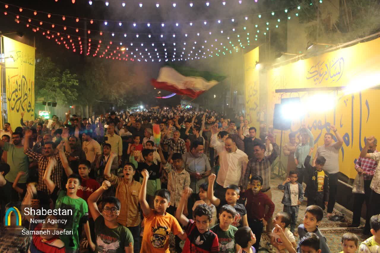 بچه‌های مسجدی در هیات محبان‌المهدی(عج) محله مصطفی خمینی مشهد، امشب جشن بزرگ غدیر را تبدیل به یک حماسه باشکوه کردند و ضمن گرامیداشت یاد شهدای حمله ددمنشانه اسرائیل به ایران، میثاق دوباره ای با ولایت بستند. غریو حیدر حیدر و شعارهای مرگ بر اسرائیل و مرگ بر آمریکا در زمان آغاز پاسخ کوبنده ایران به اسرائیل اوج این رویداد بزرگ بود که با حضور چند هزار نفر از مردم مشهد برگزار شد. این مراسم با اطعام شرکت کنندگان به پایان رسید.