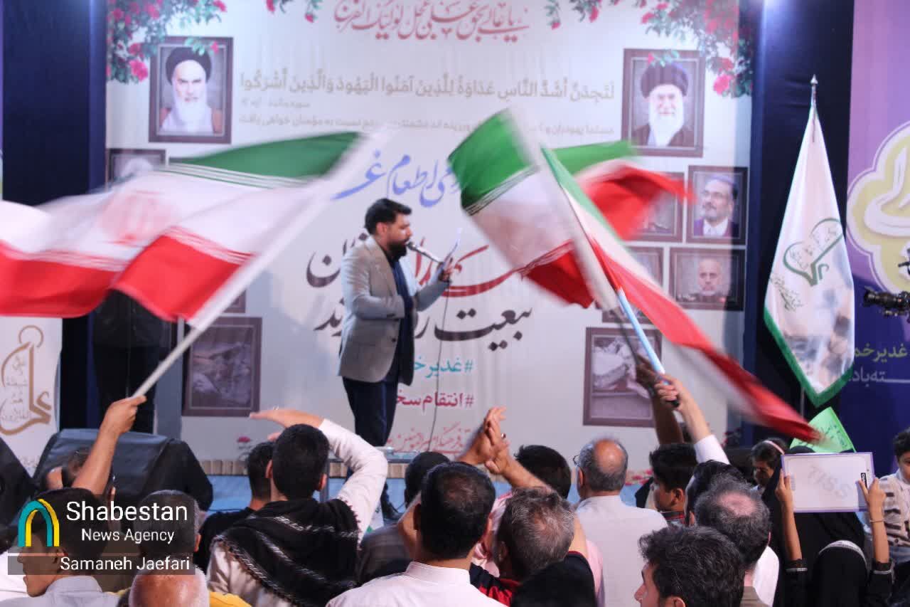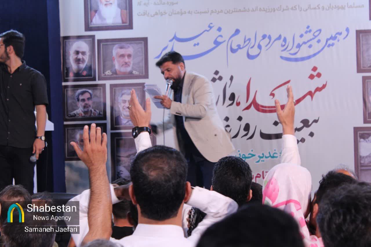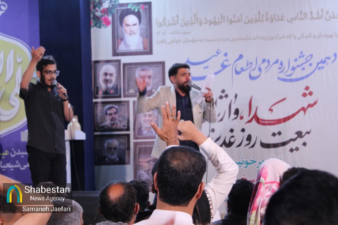 مردم انقلابی مشهد در ویژه برنامه دهمین جشنواره مردمی عید غدیر که شامگاه شنبه ۲۴ خرداد ماه در بولوار فدائیان اسلام مشهد برگزار شد بار دیگر با آرمان های امام انقلاب و ولی امر مسلمین جهان تجدید میثاق کردند و با غریو فریادهای حیدر حیدر و بانگ شعارهای مرگ بر اسرائیل ضمن محکومیت و اعلام انزجار از جنایات این رژیم کودک کش و حمایت از نیروهای مسلح ایران برای دفاع از وطن و حمله به این رژیم جعلی، آمادگی خود برای مبارزه علیه این غده سرطانی را اعلام کردند.