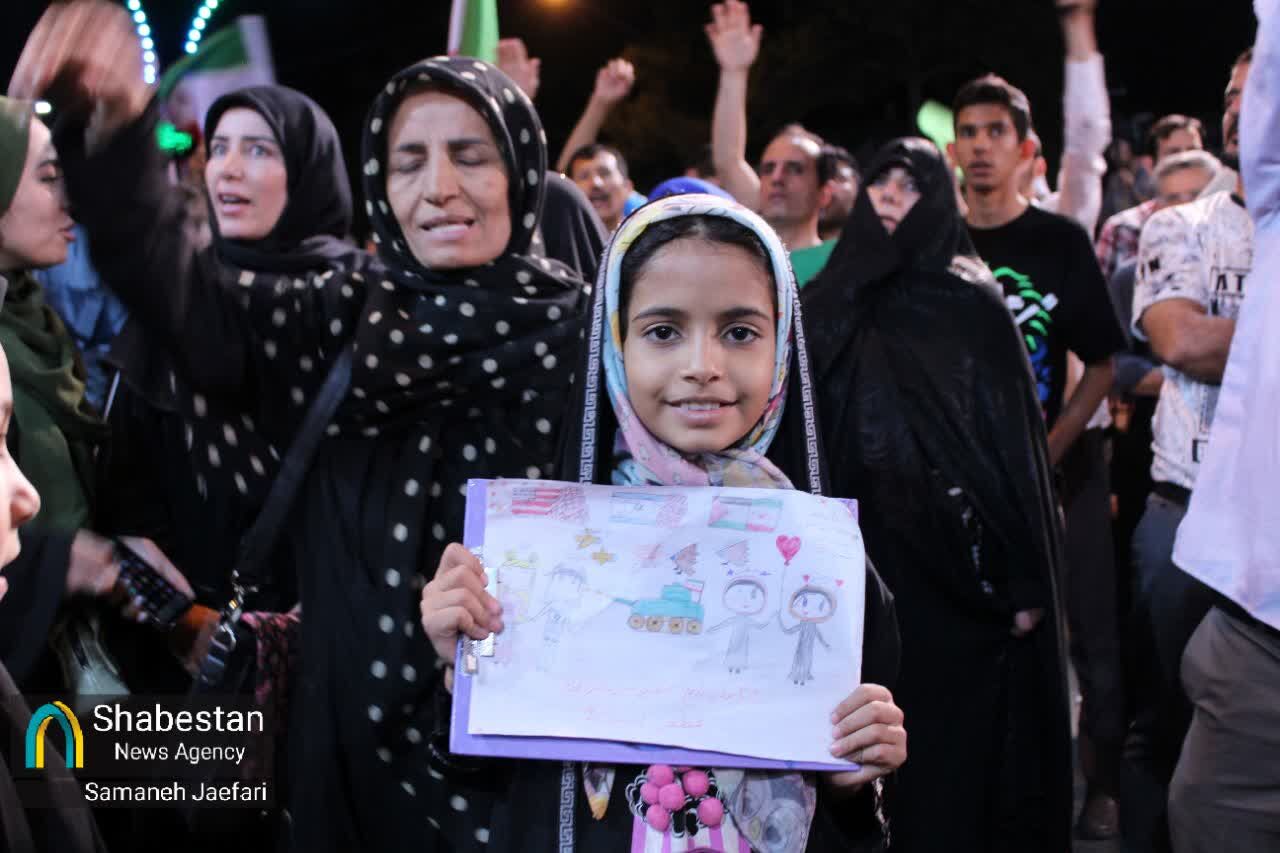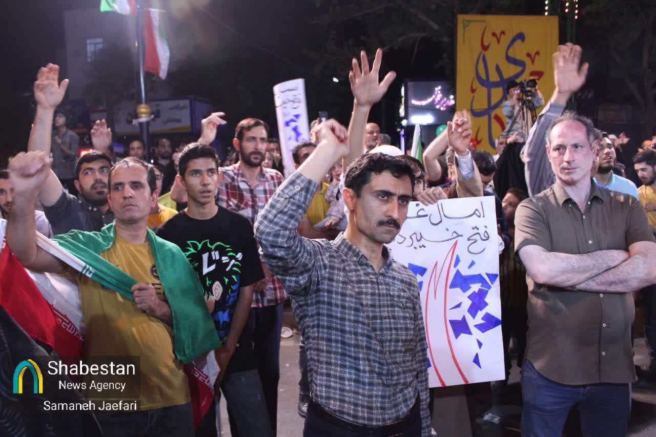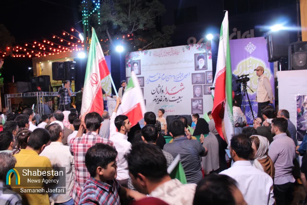 مردم انقلابی مشهد در ویژه برنامه دهمین جشنواره مردمی عید غدیر که شامگاه شنبه ۲۴ خرداد ماه در بولوار فدائیان اسلام مشهد برگزار شد بار دیگر با آرمان های امام انقلاب و ولی امر مسلمین جهان تجدید میثاق کردند و با غریو فریادهای حیدر حیدر و بانگ شعارهای مرگ بر اسرائیل ضمن محکومیت و اعلام انزجار از جنایات این رژیم کودک کش و حمایت از نیروهای مسلح ایران برای دفاع از وطن و حمله به این رژیم جعلی، آمادگی خود برای مبارزه علیه این غده سرطانی را اعلام کردند.