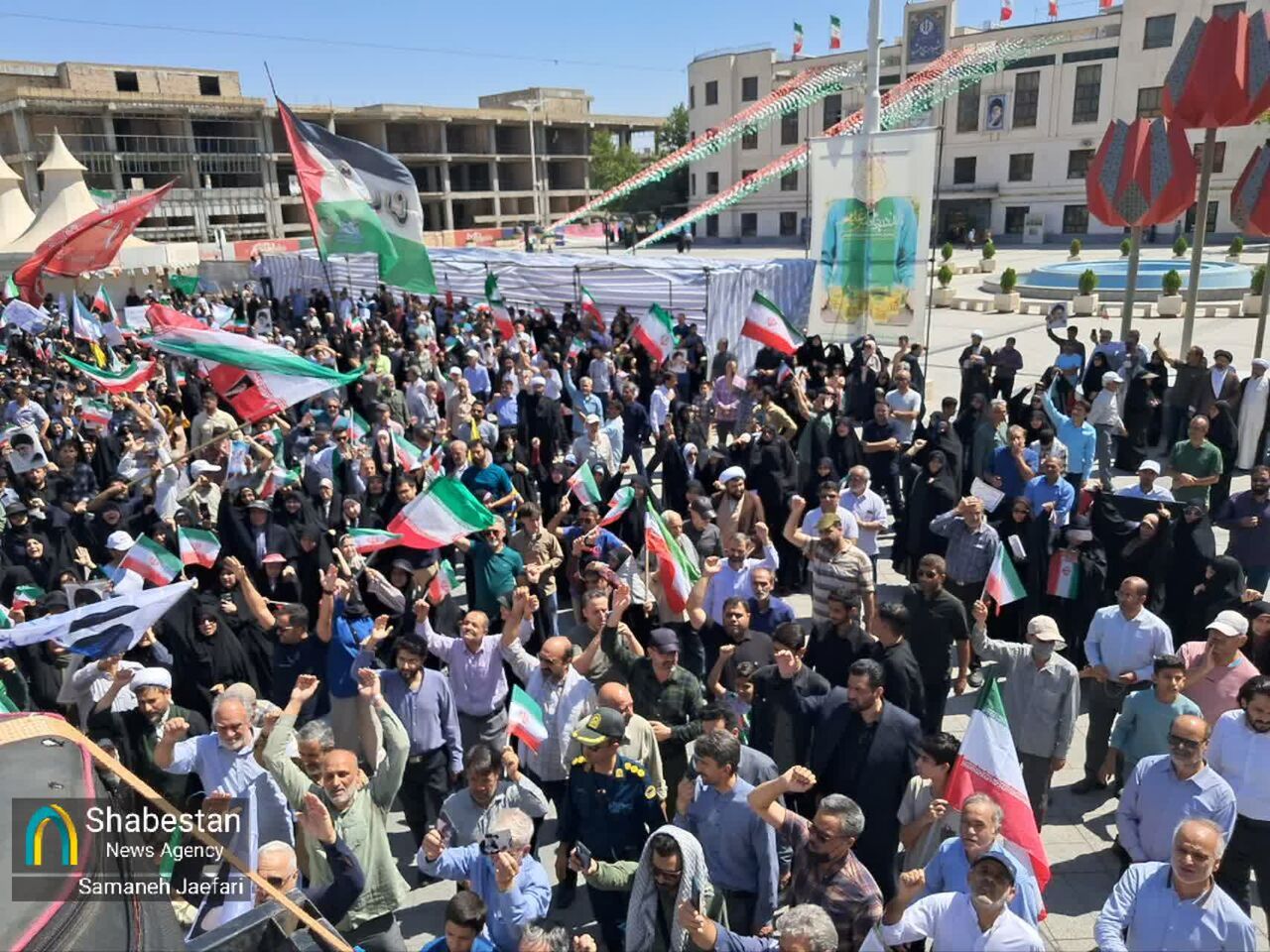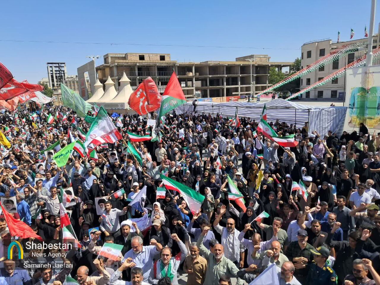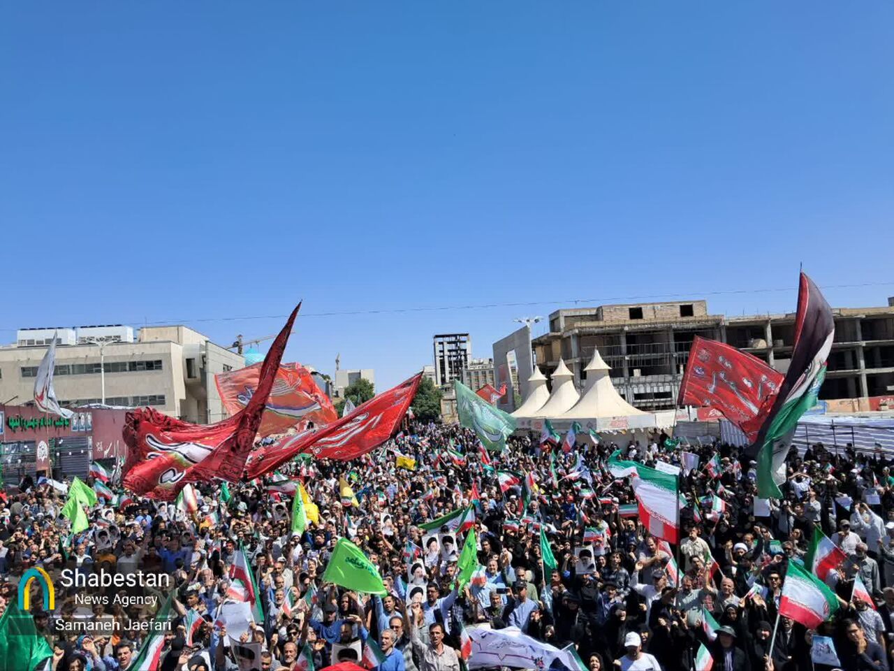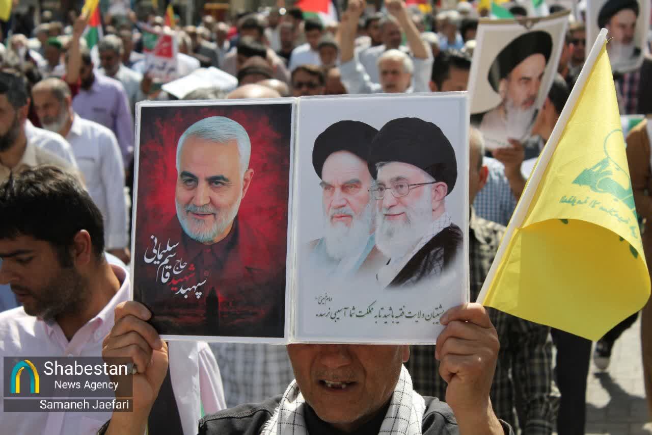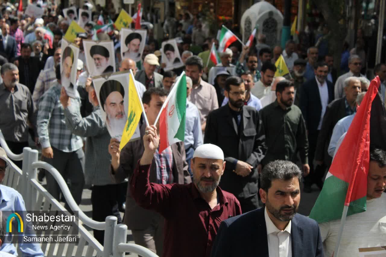 زائران و مجاوران حرم رضوی امروز جمعه ۳۰ خرداد ماه در محکومیت جنایات رژیم غاصب صهیونیستی و یاوهگوییهای رئیس جمهور آمریکا، پس از اقامه نماز جمعه از باب الجواد حرم مطهر رضوی، به سمت چهارراه شهدا راهپیمایی کرده و با شعارهای مرگ بر اسرائیل و مرگ بر آمریکا انزجار و خشم خود را از رژیم صهیونیستی اعلام و با فریادهای حیدر حیدر با تجدید بیعت با ولایت، آمادگی خود را بر مقابله علیه دشمنان وطن اعلام کردند.