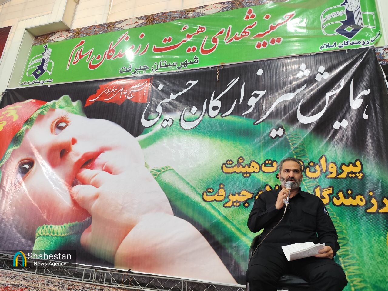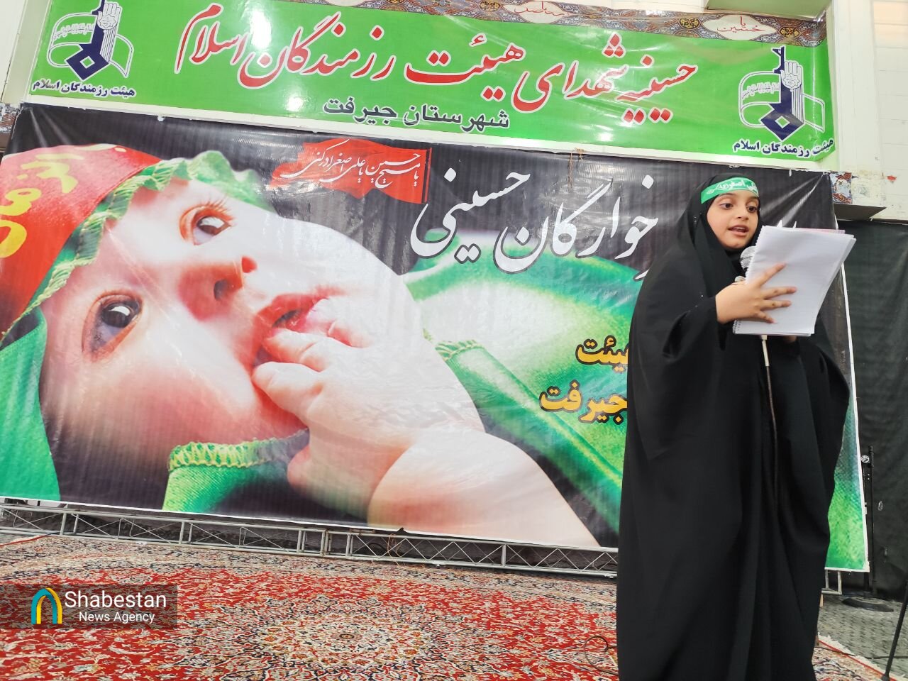 امروز در اولین جمعه ماه محرم همزمان با سراسر کشور مراسم شیرخوارگان حسینی در حسینیه شهدای شهر جیرفت به همت پیروان عترت هیئت رزمندگان اسلام برگزار شد.