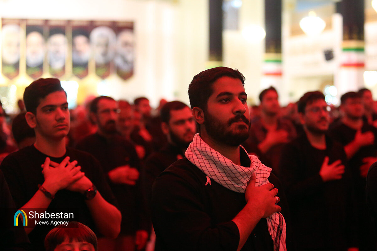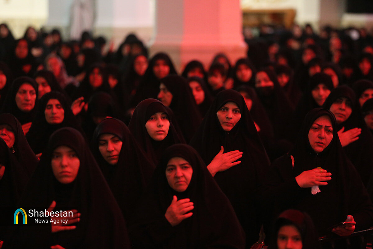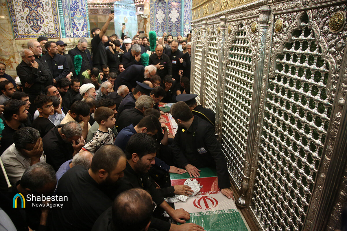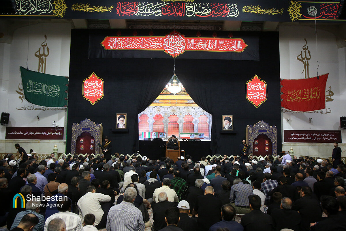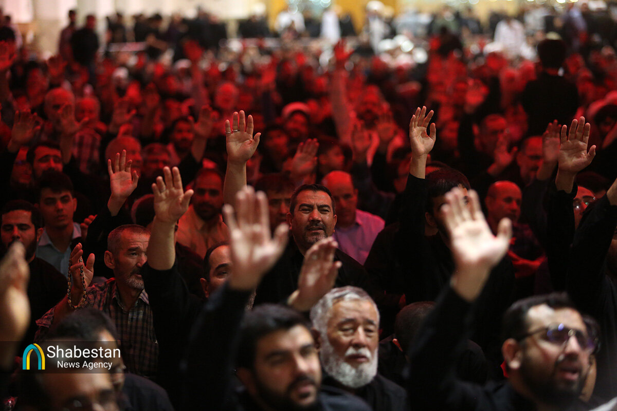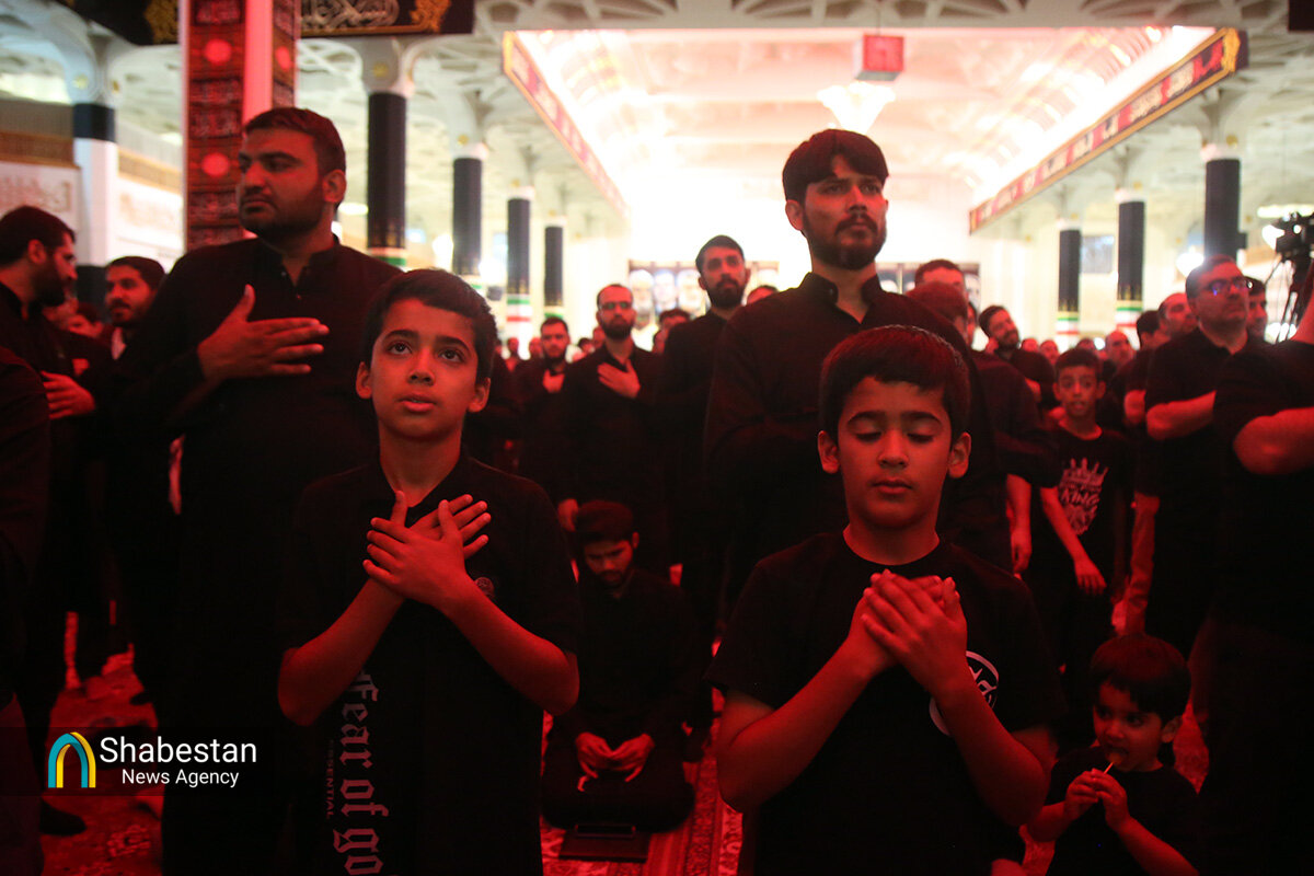 مراسم عزاداری شب اول محرم در حرم مطهر حضرت فاطمه معصومه سلام الله علیها و وداع با پیکر مطهر دو شهید حملات رژیم صهیونیستی با حضور پرشور مردم در شبستان امام خمینی(ره) حرم مطهر برگزار شد.