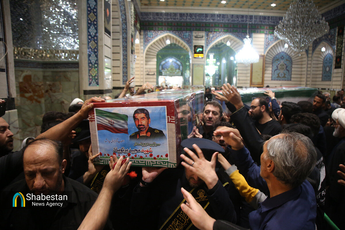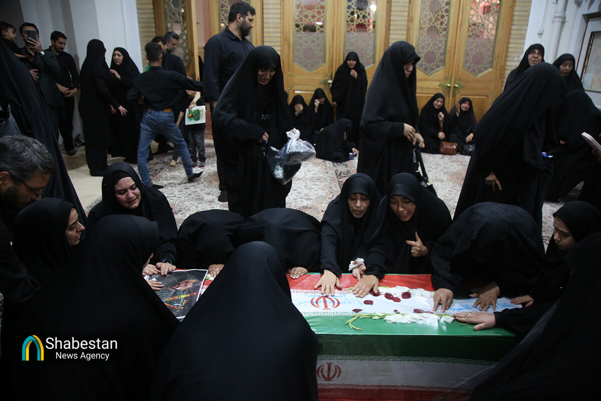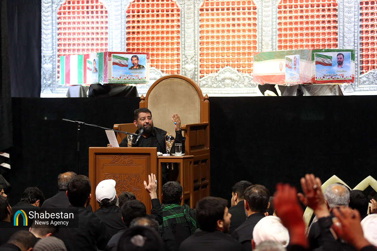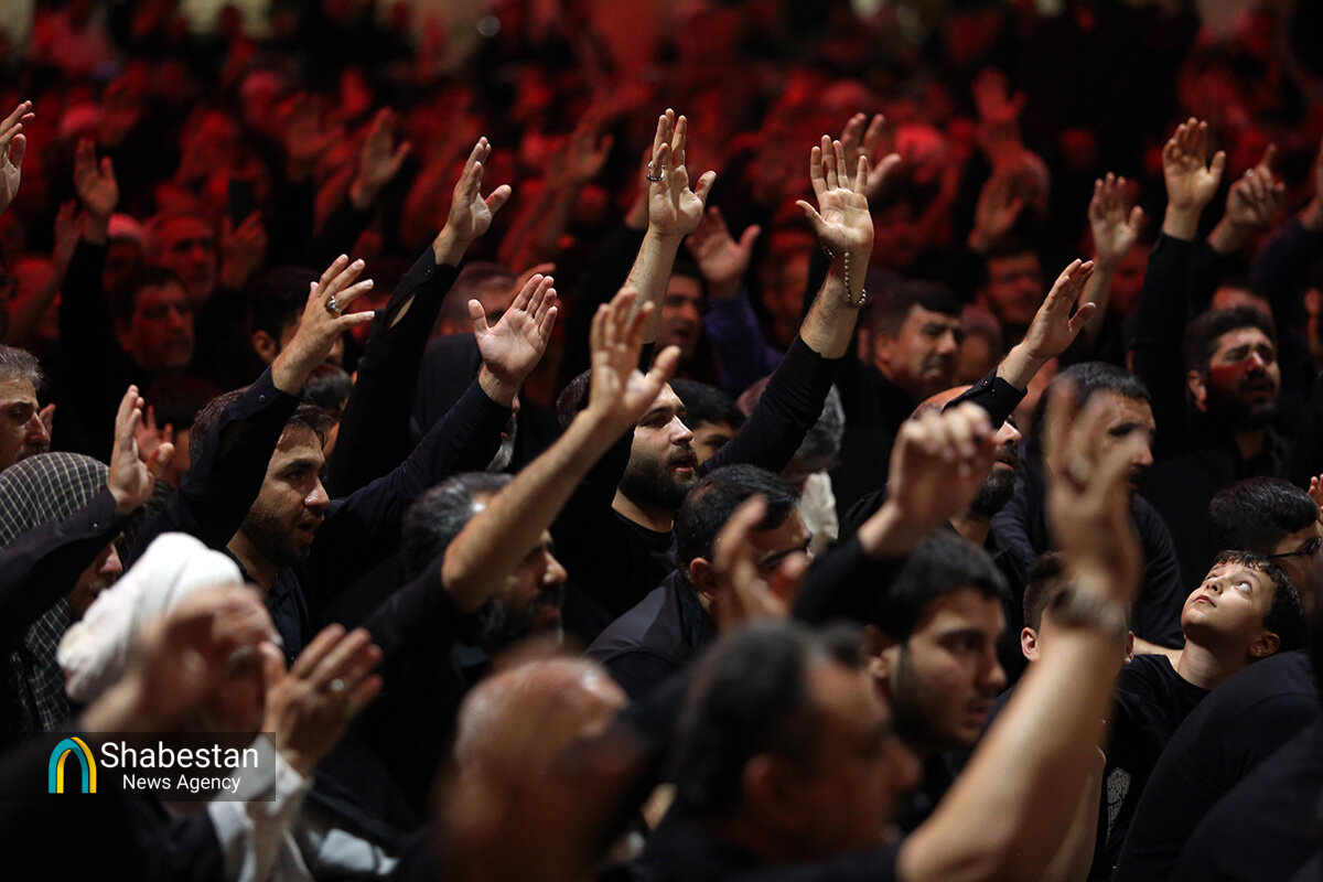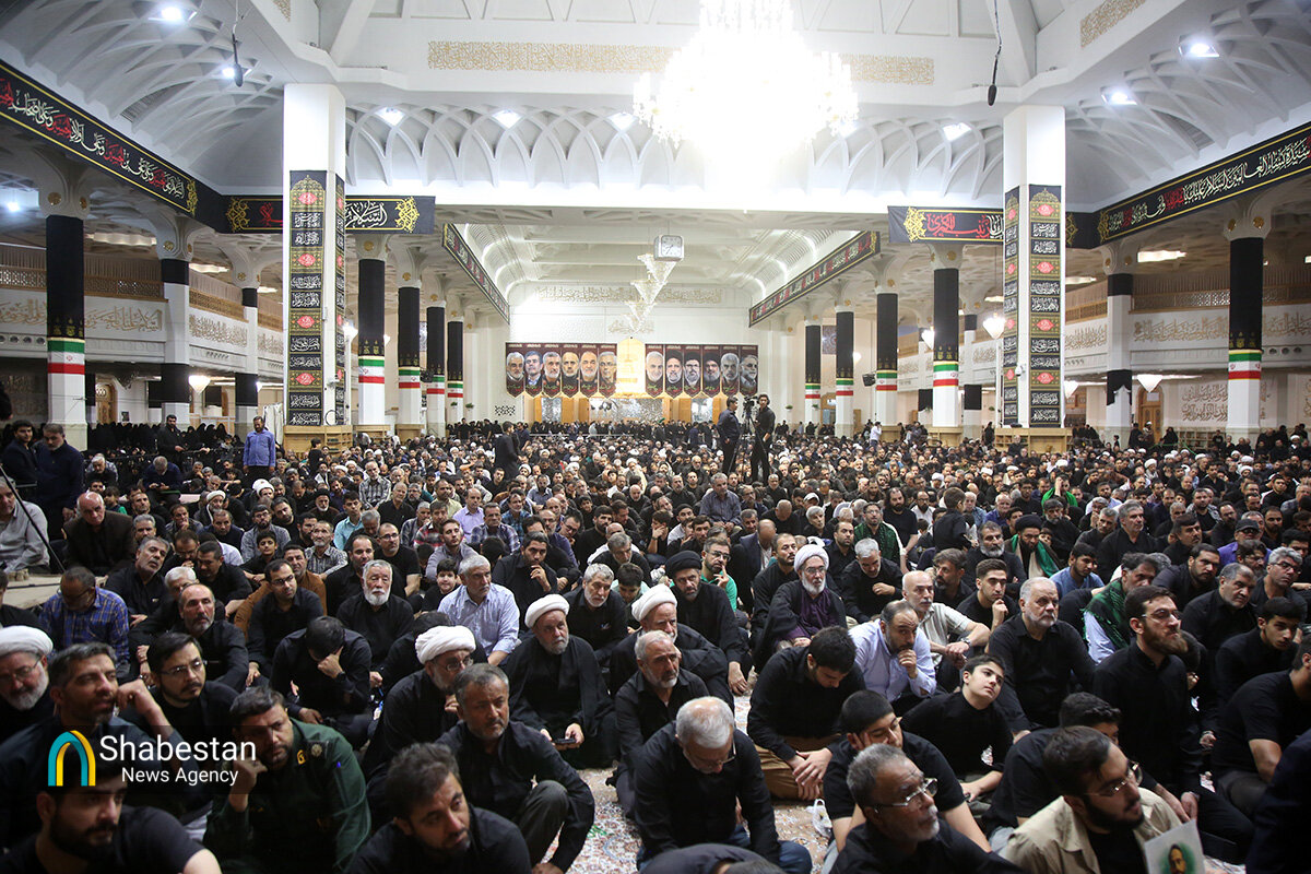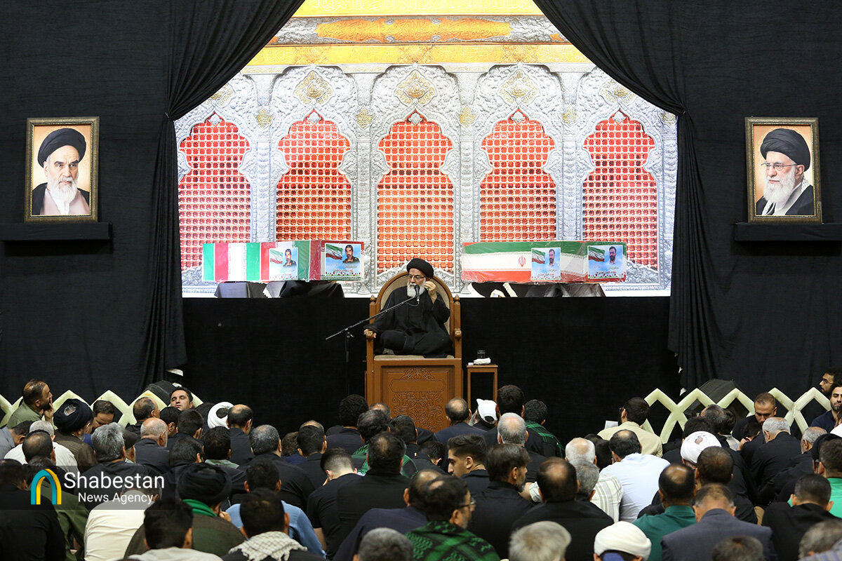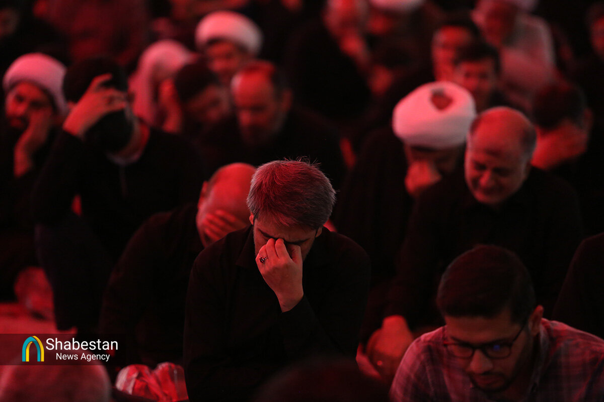 مراسم عزاداری شب اول محرم در حرم مطهر حضرت فاطمه معصومه سلام الله علیها و وداع با پیکر مطهر دو شهید حملات رژیم صهیونیستی با حضور پرشور مردم در شبستان امام خمینی(ره) حرم مطهر برگزار شد.