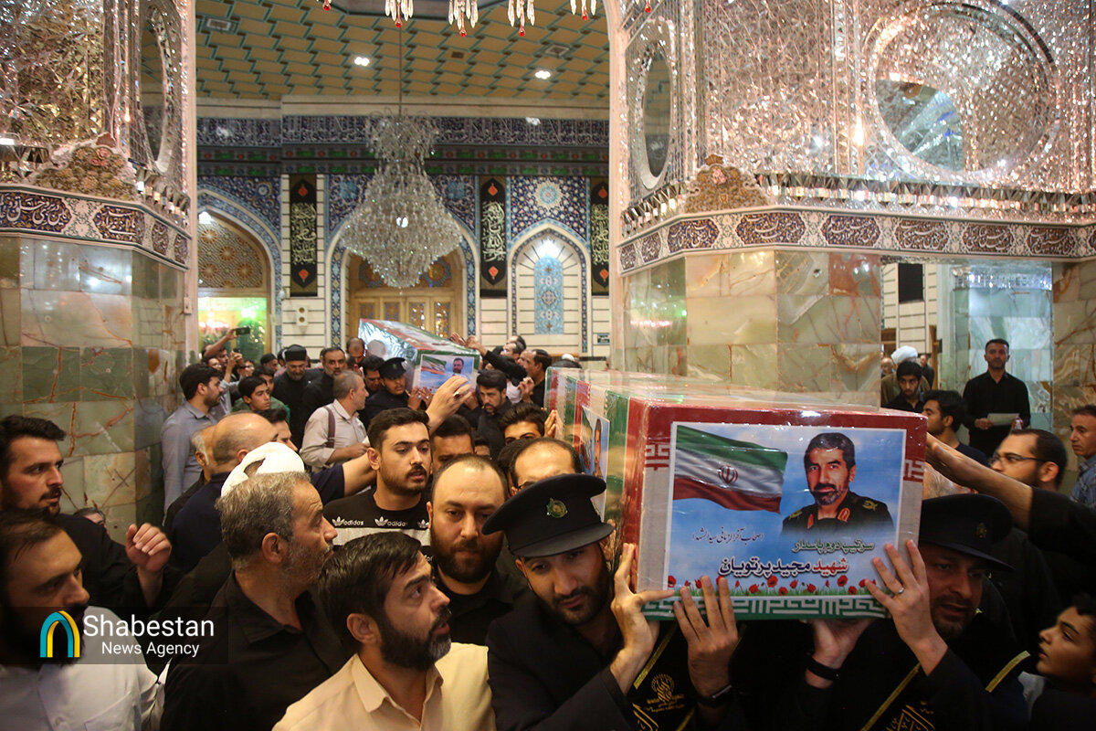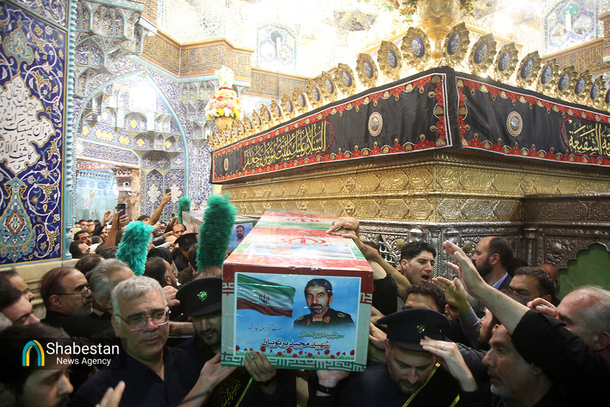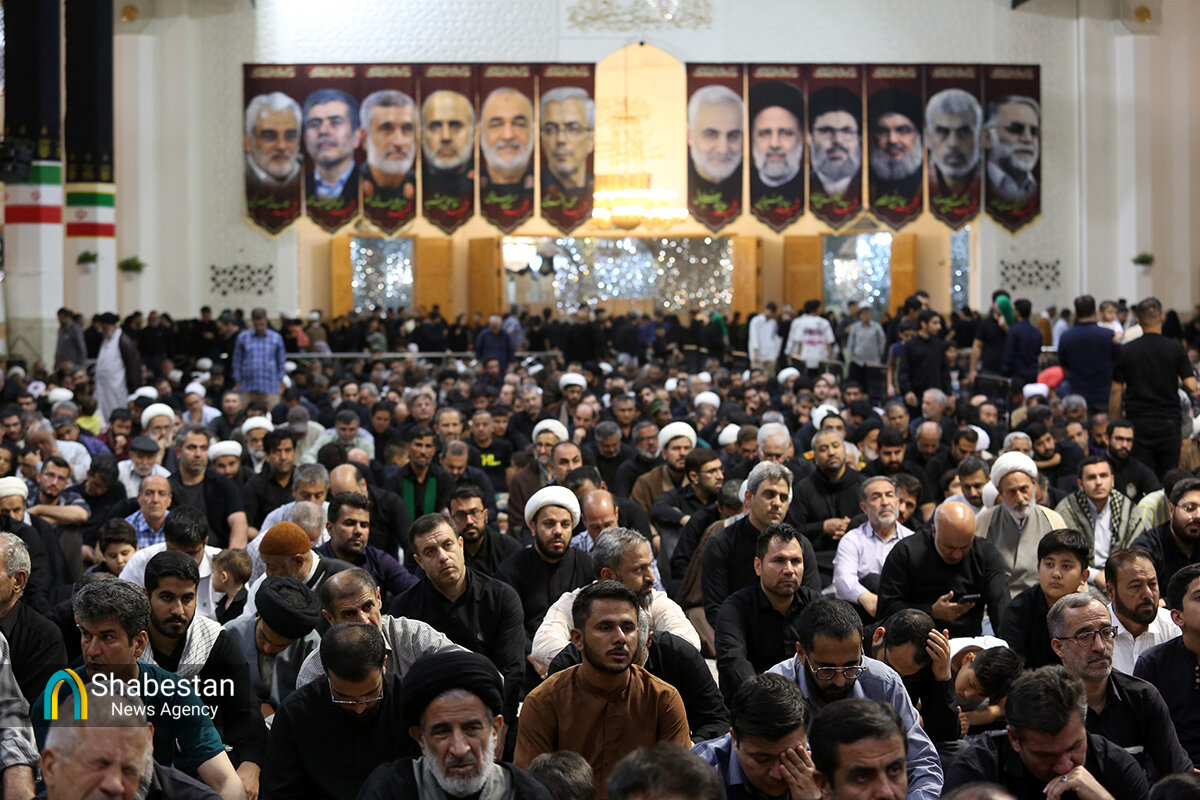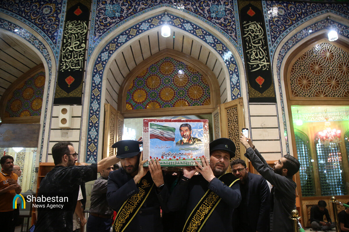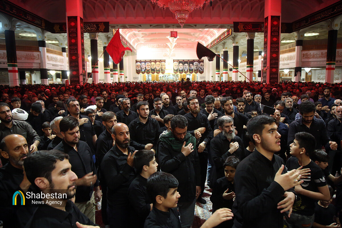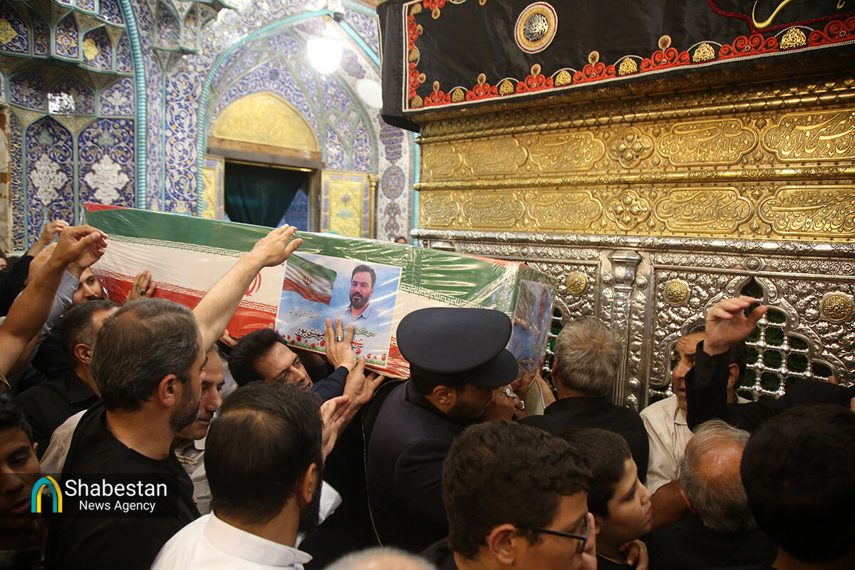 مراسم عزاداری شب اول محرم در حرم مطهر حضرت فاطمه معصومه سلام الله علیها و وداع با پیکر مطهر دو شهید حملات رژیم صهیونیستی با حضور پرشور مردم در شبستان امام خمینی(ره) حرم مطهر برگزار شد.