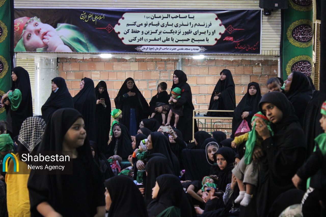 همزمان با اولین جمعه ماه محرم‌الحرام، مراسم شیرخوارگان حسینی توسط مجمع جهانی حضرت علی اصغر علیه‌السلام در مسجد و مهدیه صاحب الزمان عجل‌الله تعالی فرجه کرمان برگزار شد.