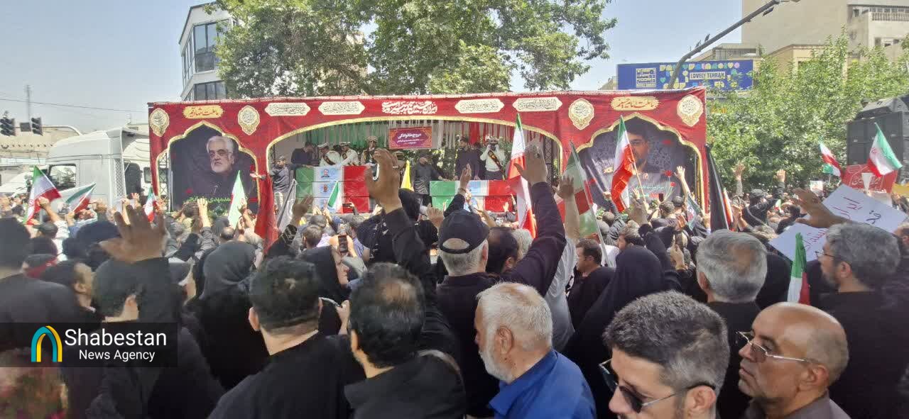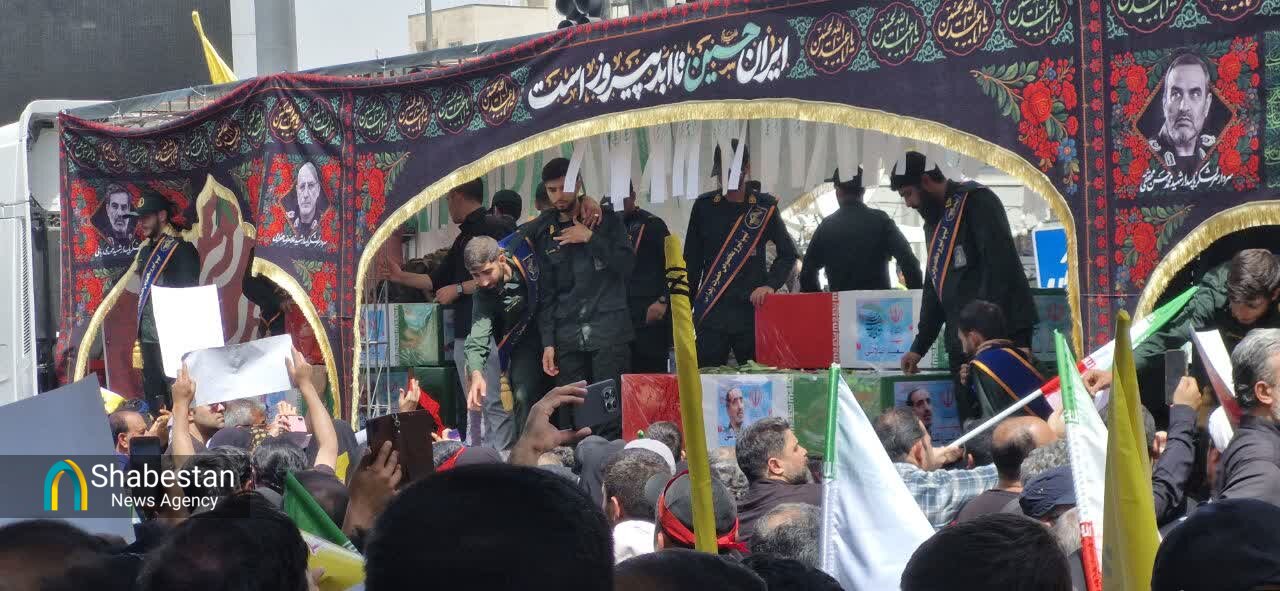 مراسم تشییع پیکر شهدای حملات رژیم صهیونیستی صبح امروز( شنبه ۷ تیر ۱۴۰۴) با حضور مسئولان لشکری، کشوری و اقشار مختلف مردم از میدان انقلاب اسلامی به سمت میدان آزادی تهران برگزار شد.