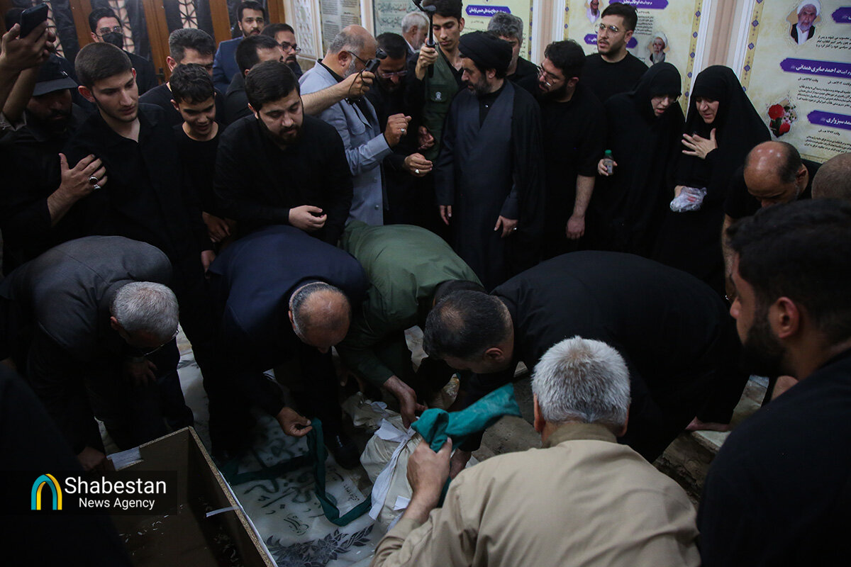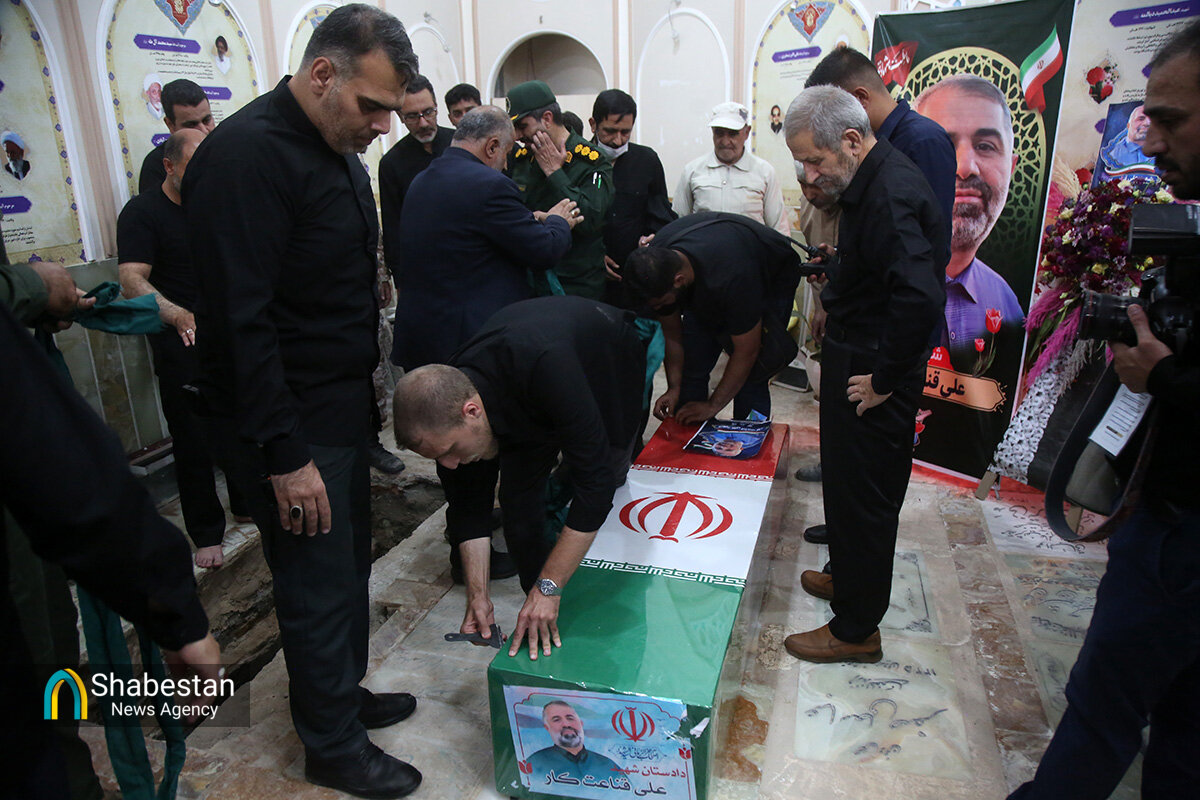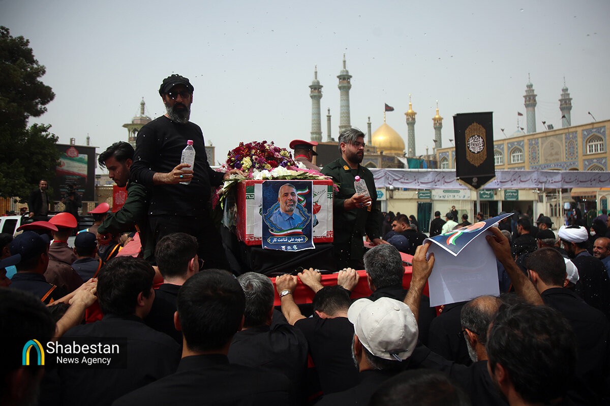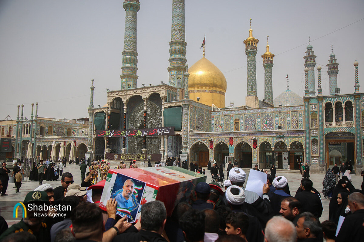 پیکر مطهر شهید علی قناعتکار دادستان زندان اوین که در حملات رژیم صهیونیستی به شهادت رسید امروز بر روی دستان مردم قدرشناس قم تشییع شد و پس از طواف بر گرد ضریح مطهر حرم بانوی کرامت در مقبره شهید مفتح به خاک سپرده شد.
