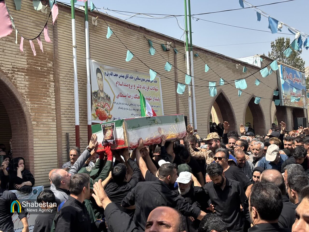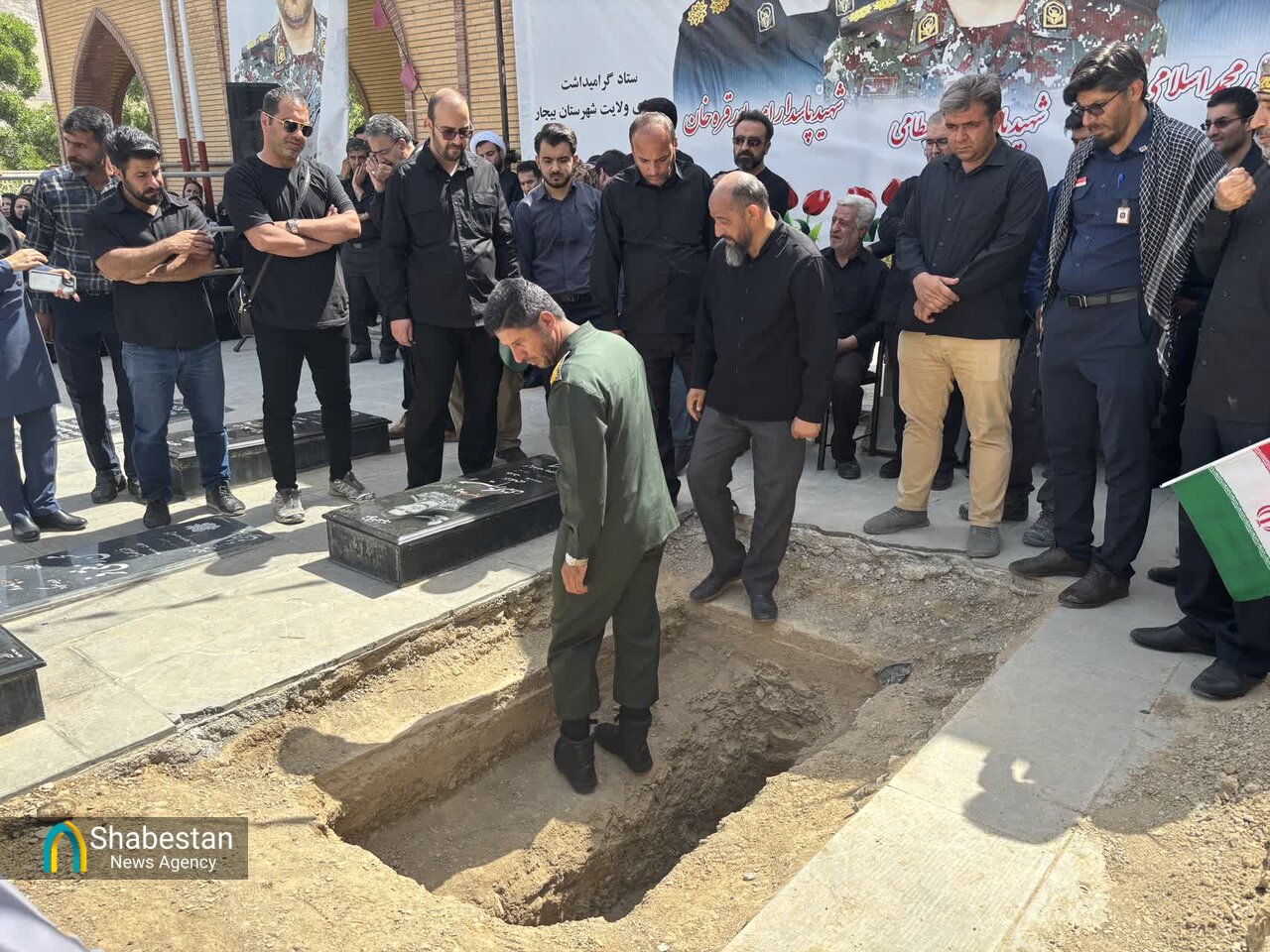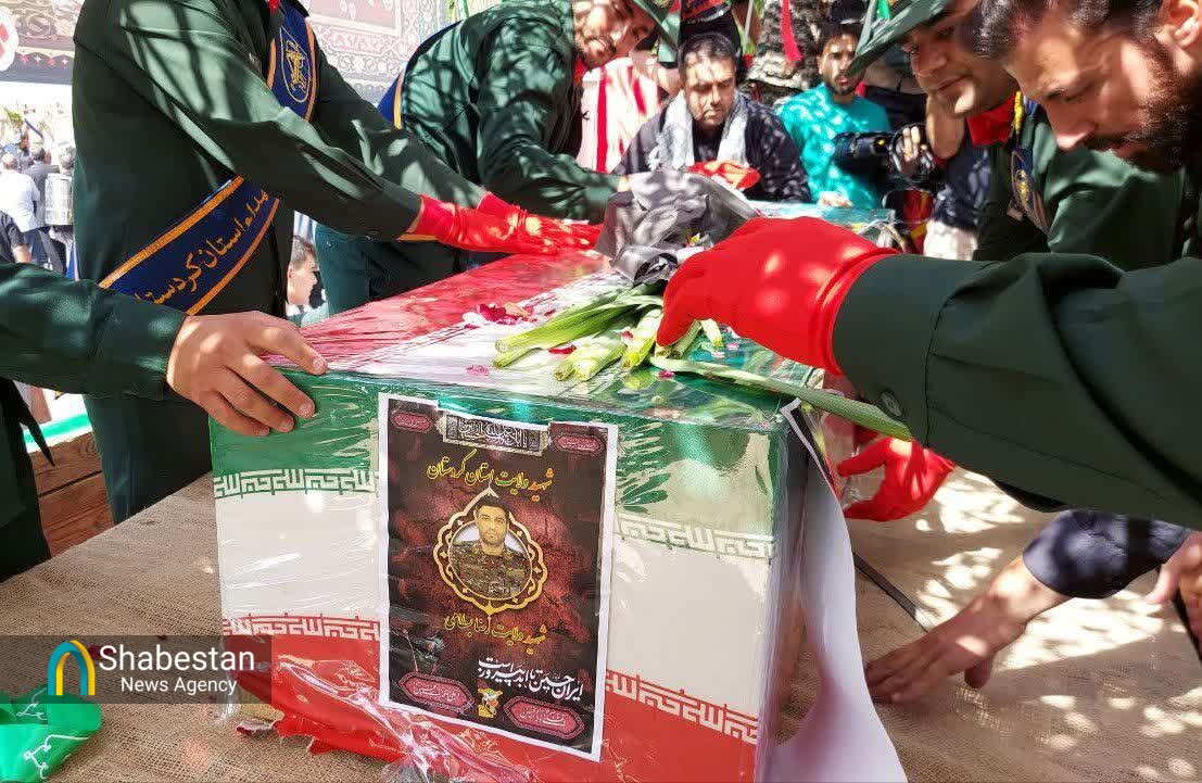پیکر مطهر شهید رضا بسطامی از شهدای مدافع وطن که اخیرا در حملات رژیم صهیونیستی در تهران به شهادت رسید بر دستان مردم بیجار تشییع و در زادگاهش شهر بیجار تدفین و آرام گرفت.