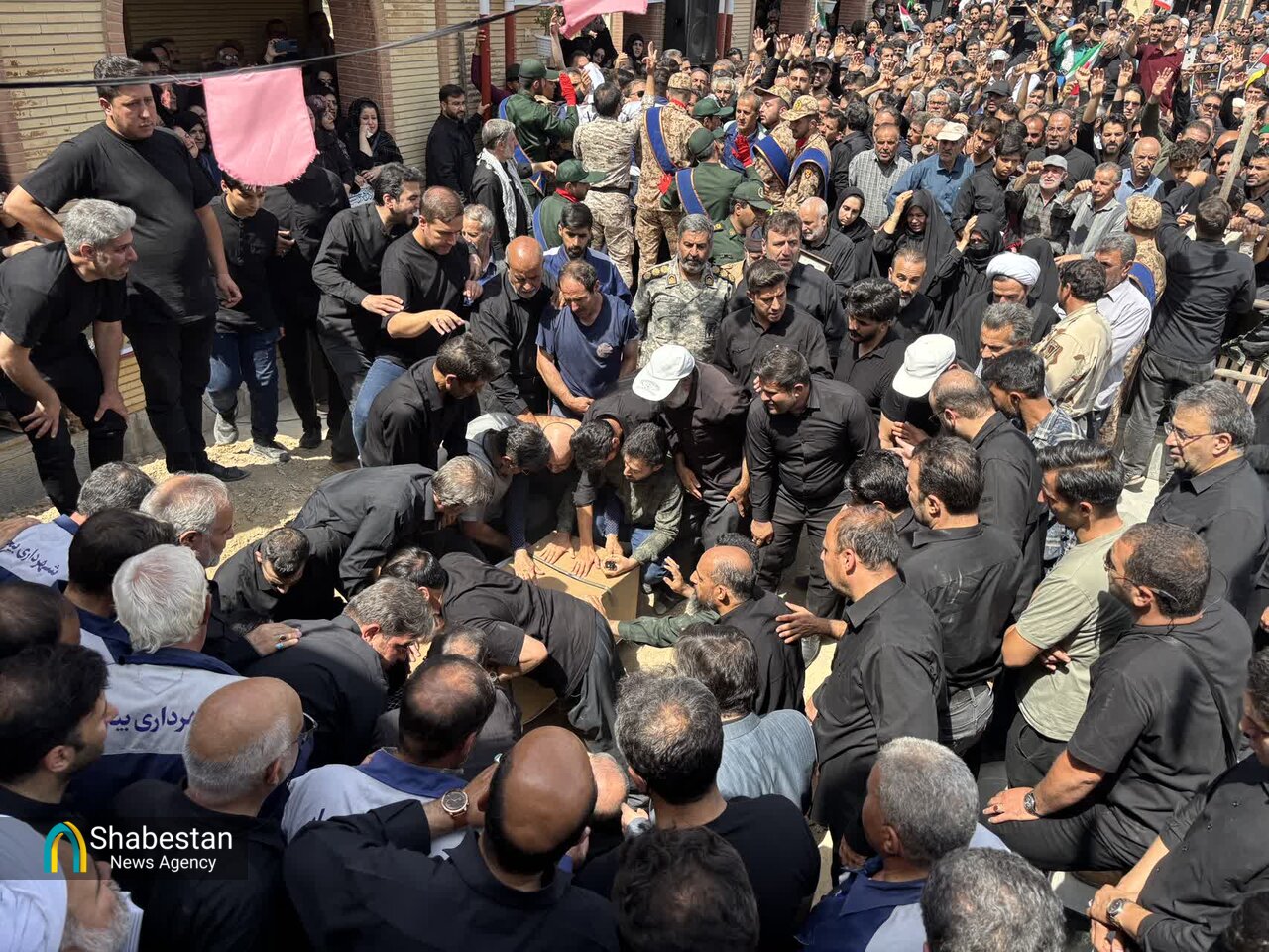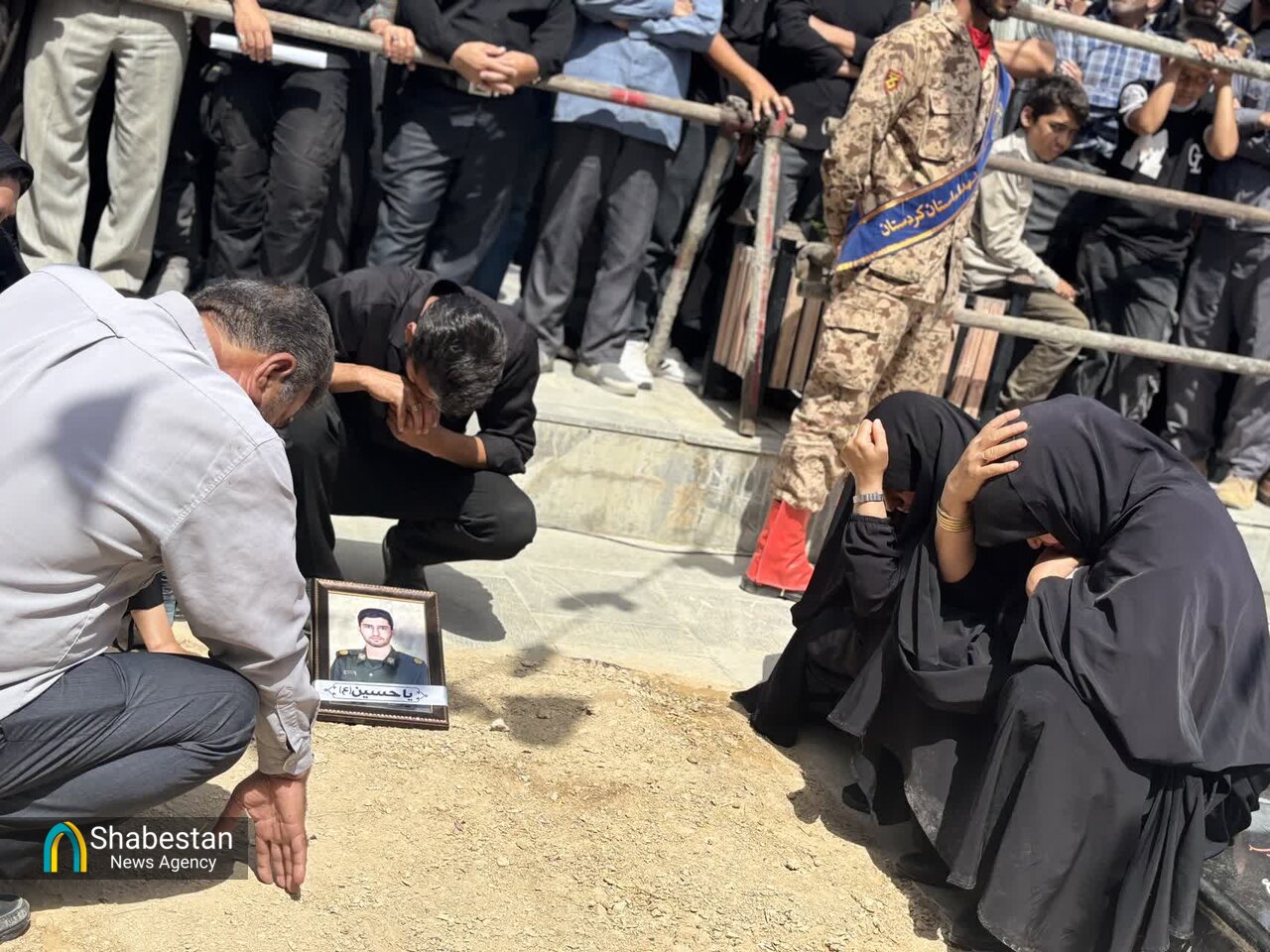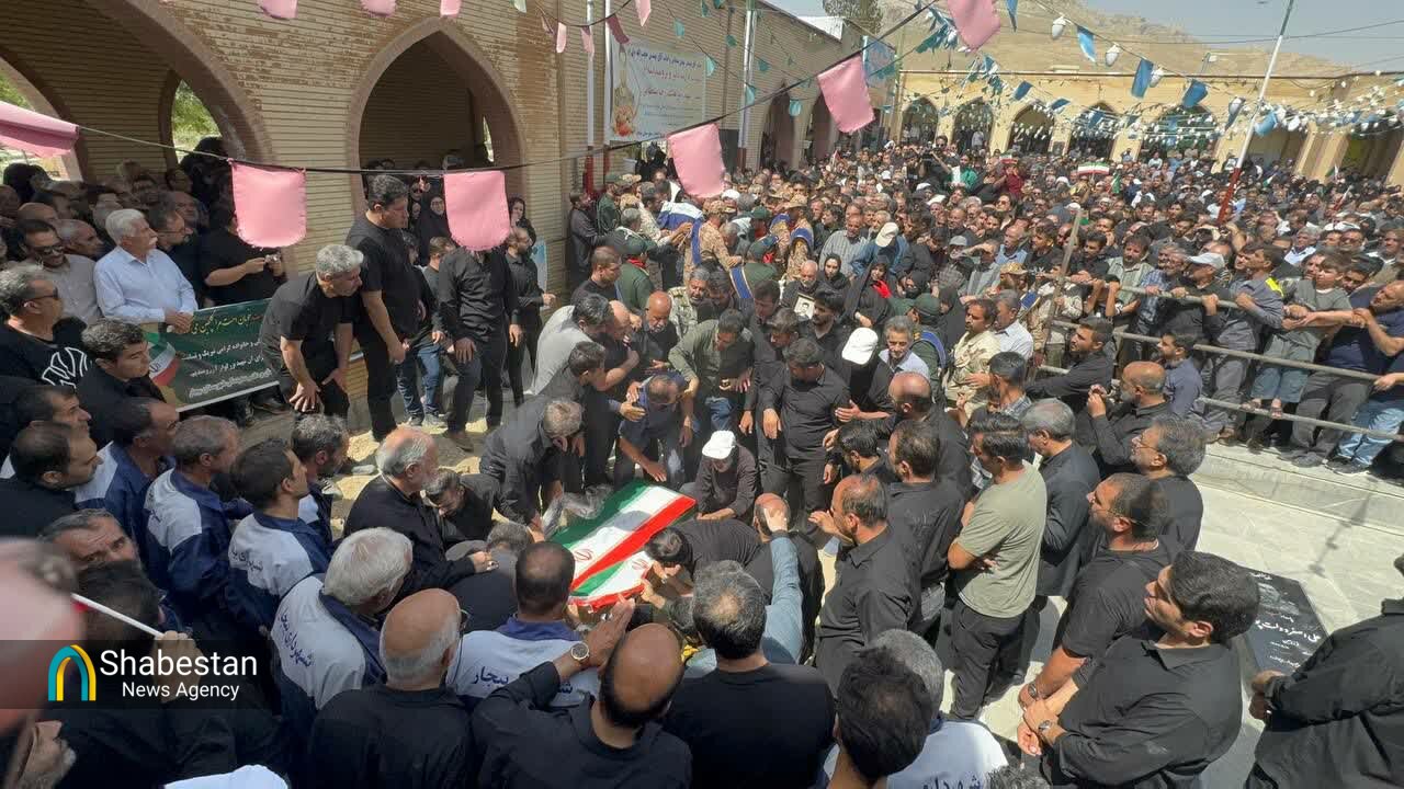 پیکر مطهر شهید رضا بسطامی از شهدای مدافع وطن که اخیرا در حملات رژیم صهیونیستی در تهران به شهادت رسید بر دستان مردم بیجار تشییع و در زادگاهش شهر بیجار تدفین و آرام گرفت.