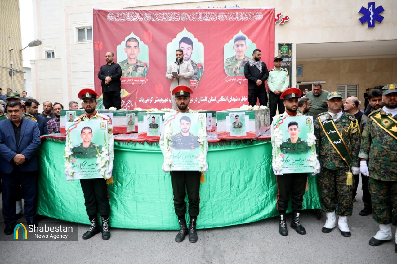پیکر مطهر شهیدان عباس کردکتولی، امیرحسین دوگونچی و شهید یوسف گرگانلی دوجی از شهدای دیگر نیروی انتظامی استان گلستان که در حملات ناجوانمردانه تروریستی رژیم صهیونیستی به درجه رفیع شهادت نائل آمدند، امروز (سه شنبه ١٠ تیر) با حضور مردم مومن و شهید پرور استان گلستان در گرگان تشییع شد. آیت الله سیدکاظم نورمفیدی، نماینده مقام معظم رهبری در استان گلستان و امام جمعه گرگان با حضور در معراج شهدای گرچان، بر پیکر این شهدای گرانقدر اقامه نماز کردند.