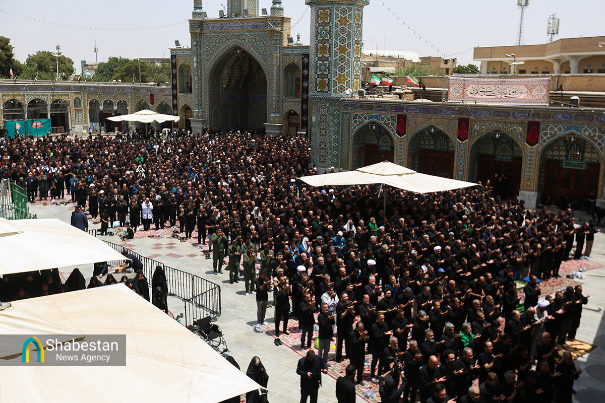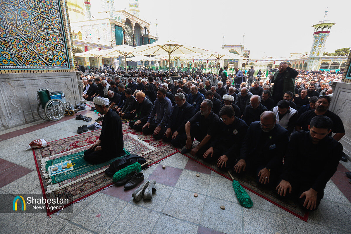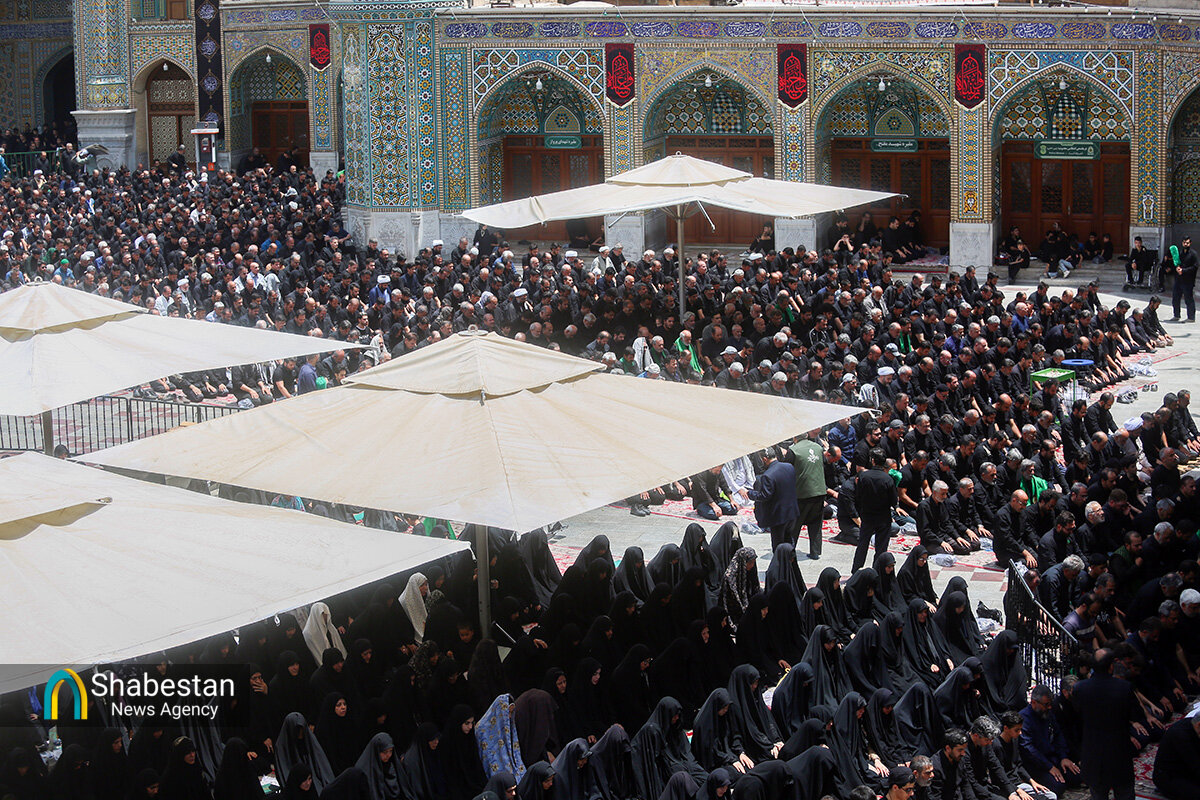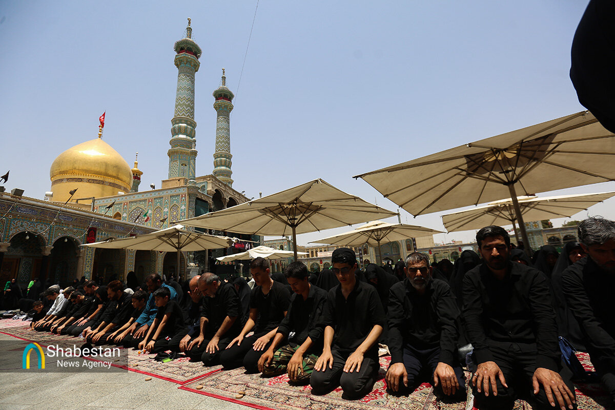 نماز ظهر عاشورا در صحنها و شبستان های مختلف حرم مطهر حضرت فاطمه معصومه سلام الله علیها با حضور پرشور عزاداران حسینی اقامه شد.