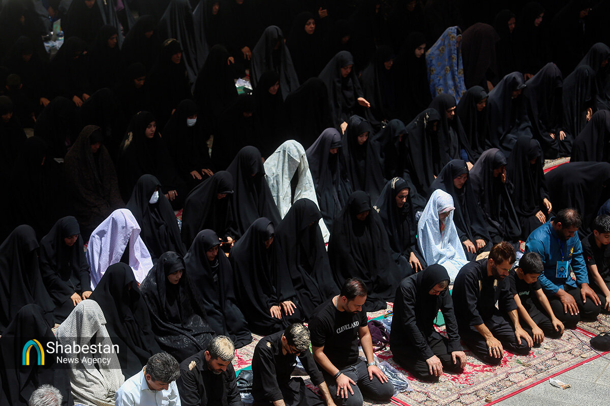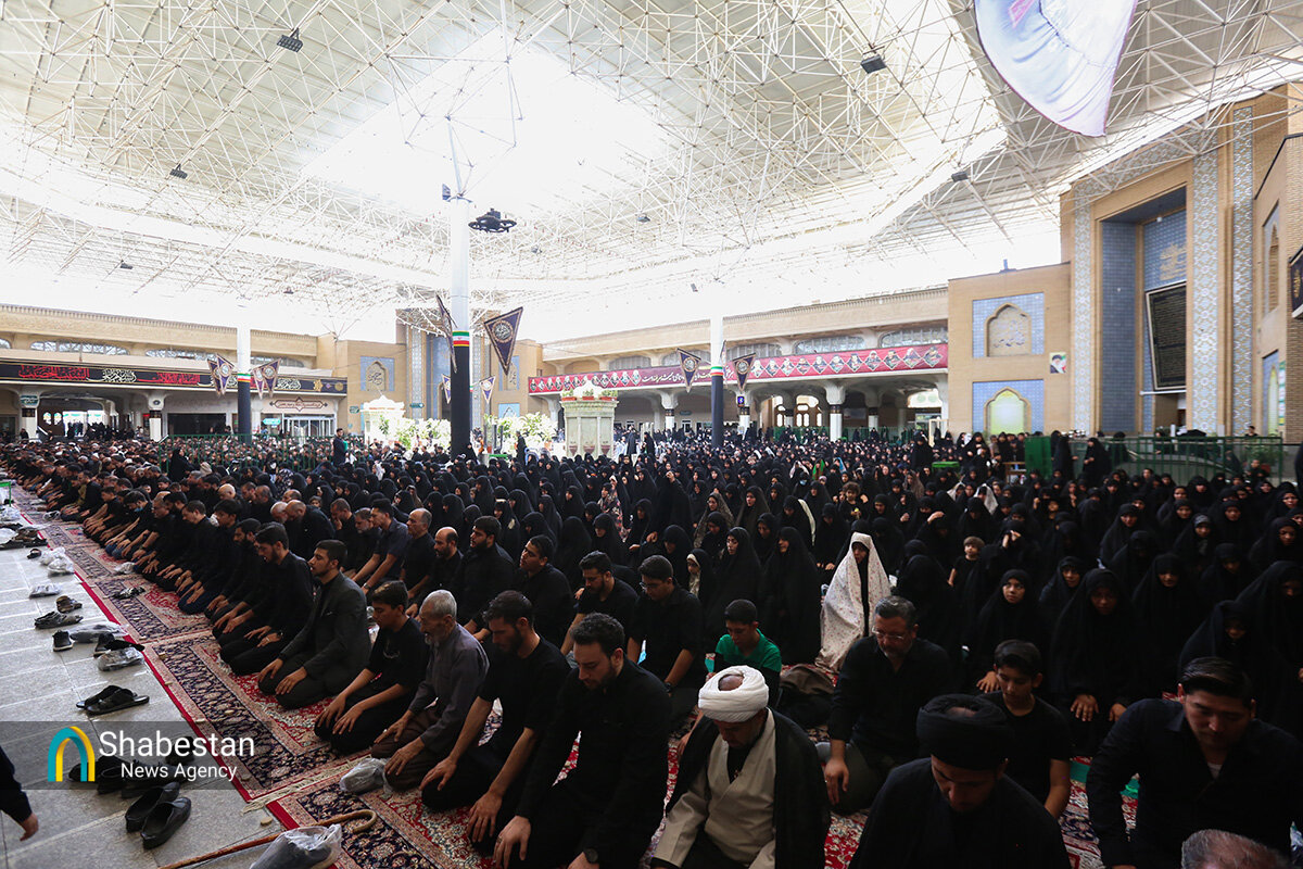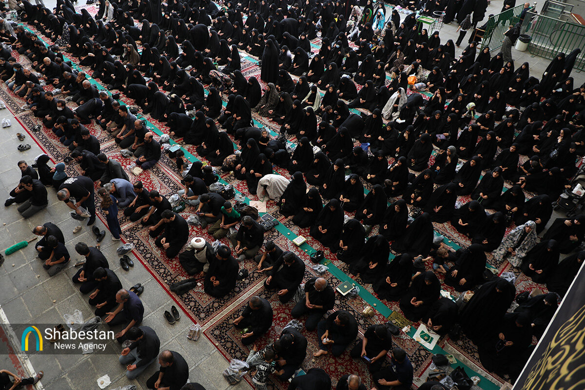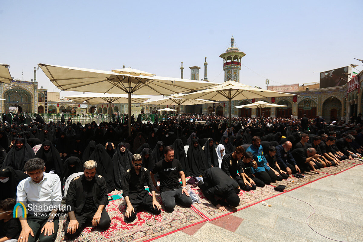نماز ظهر عاشورا در صحنها و شبستان های مختلف حرم مطهر حضرت فاطمه معصومه سلام الله علیها با حضور پرشور عزاداران حسینی اقامه شد.