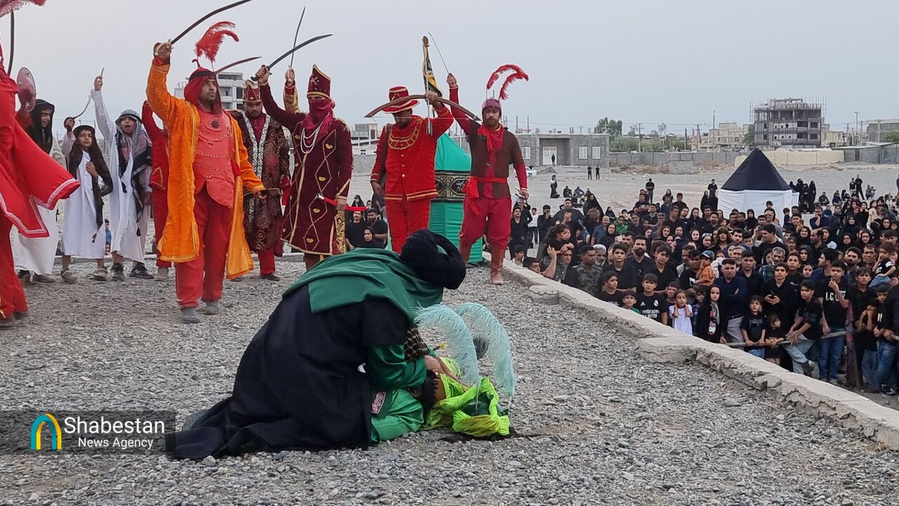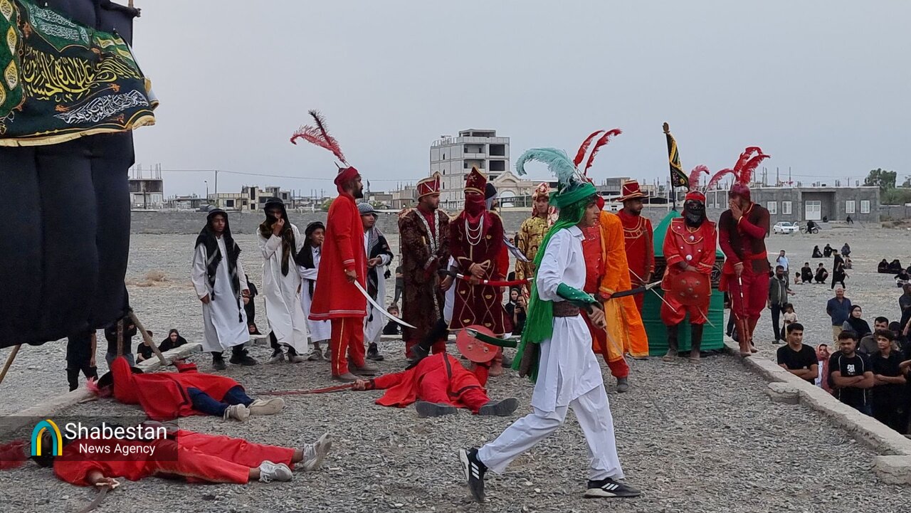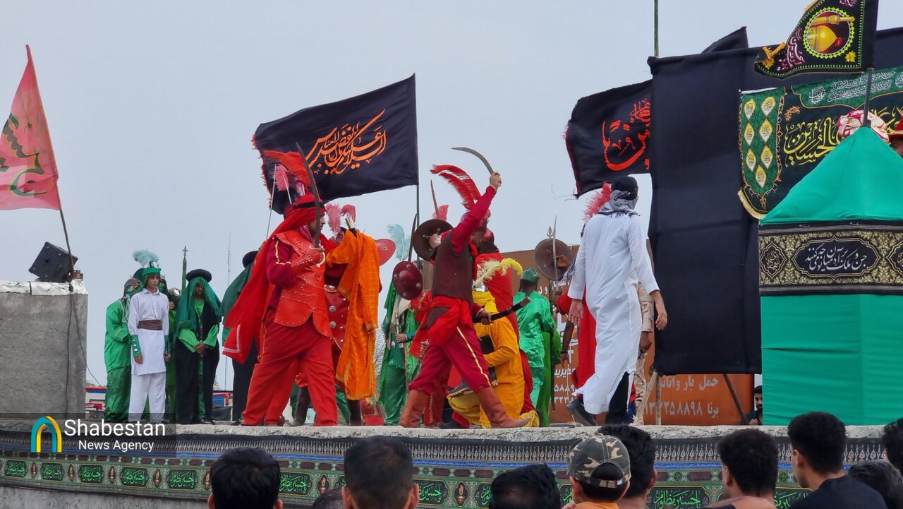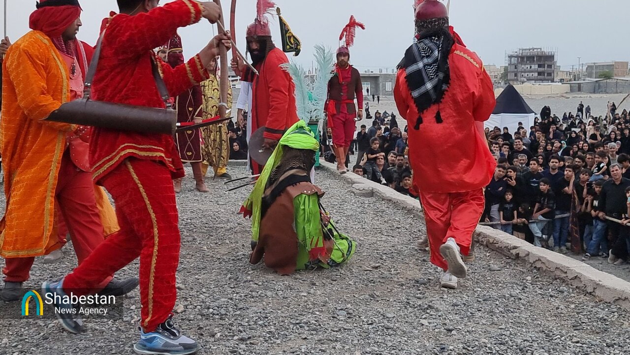 همزمان با عصر عاشورای حسینی بچه هیئتی های هیئت انصار الرسول مسجد الرسول شهر جیرفت با اجرای تعزیه در محوطه مصلی پیامبر اعظم (ص) وقایع عاشورا را به تصویر کشیدند.