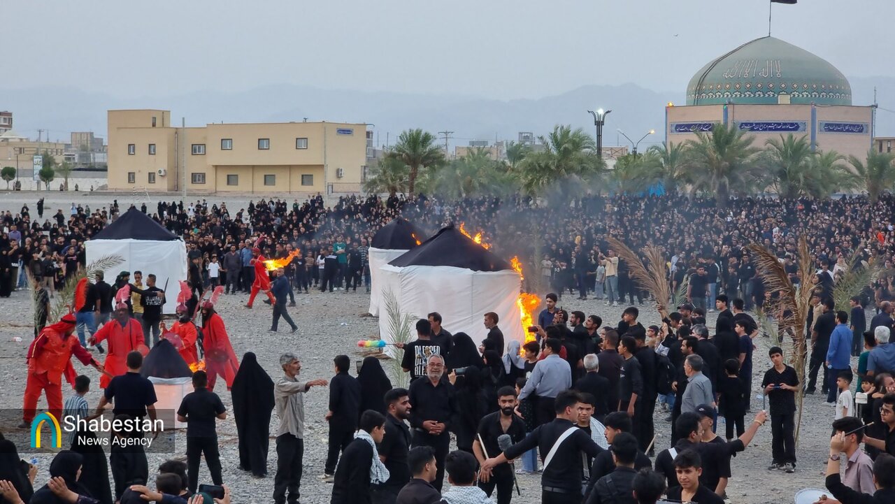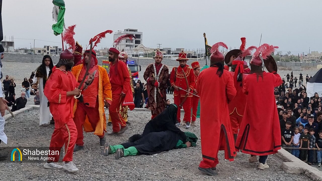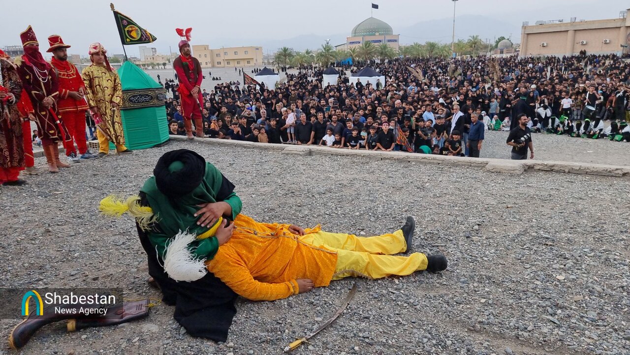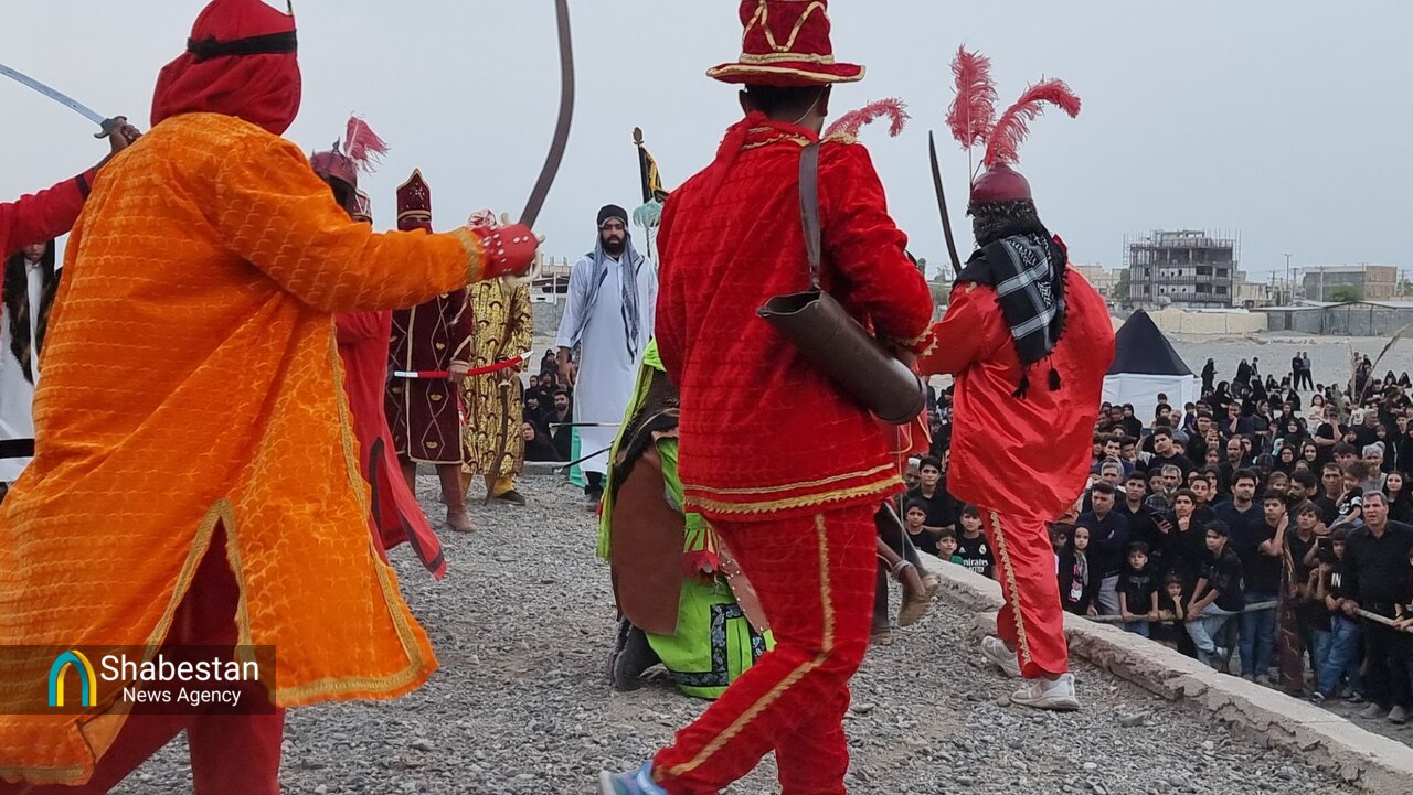 همزمان با عصر عاشورای حسینی بچه هیئتی های هیئت انصار الرسول مسجد الرسول شهر جیرفت با اجرای تعزیه در محوطه مصلی پیامبر اعظم (ص) وقایع عاشورا را به تصویر کشیدند.
