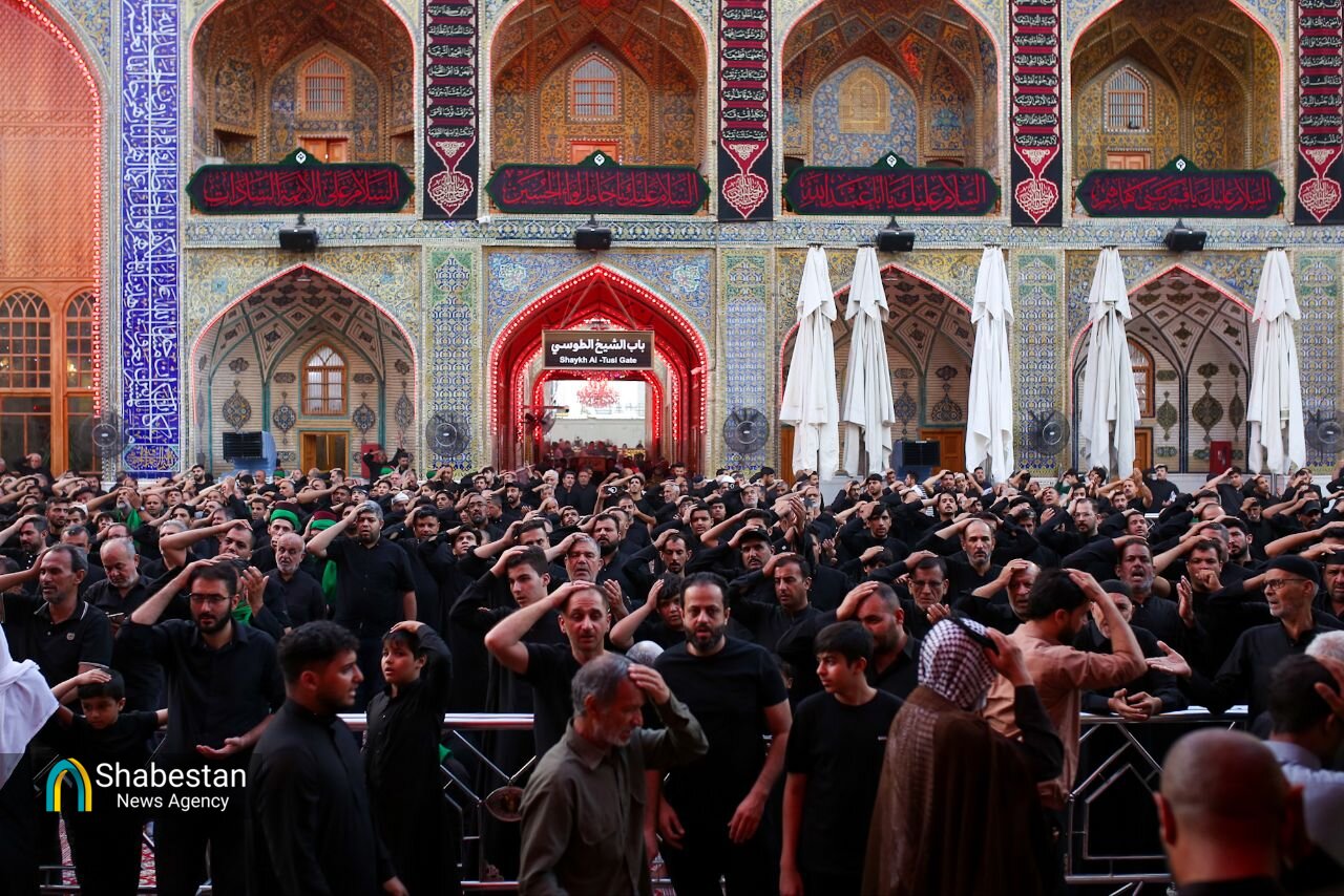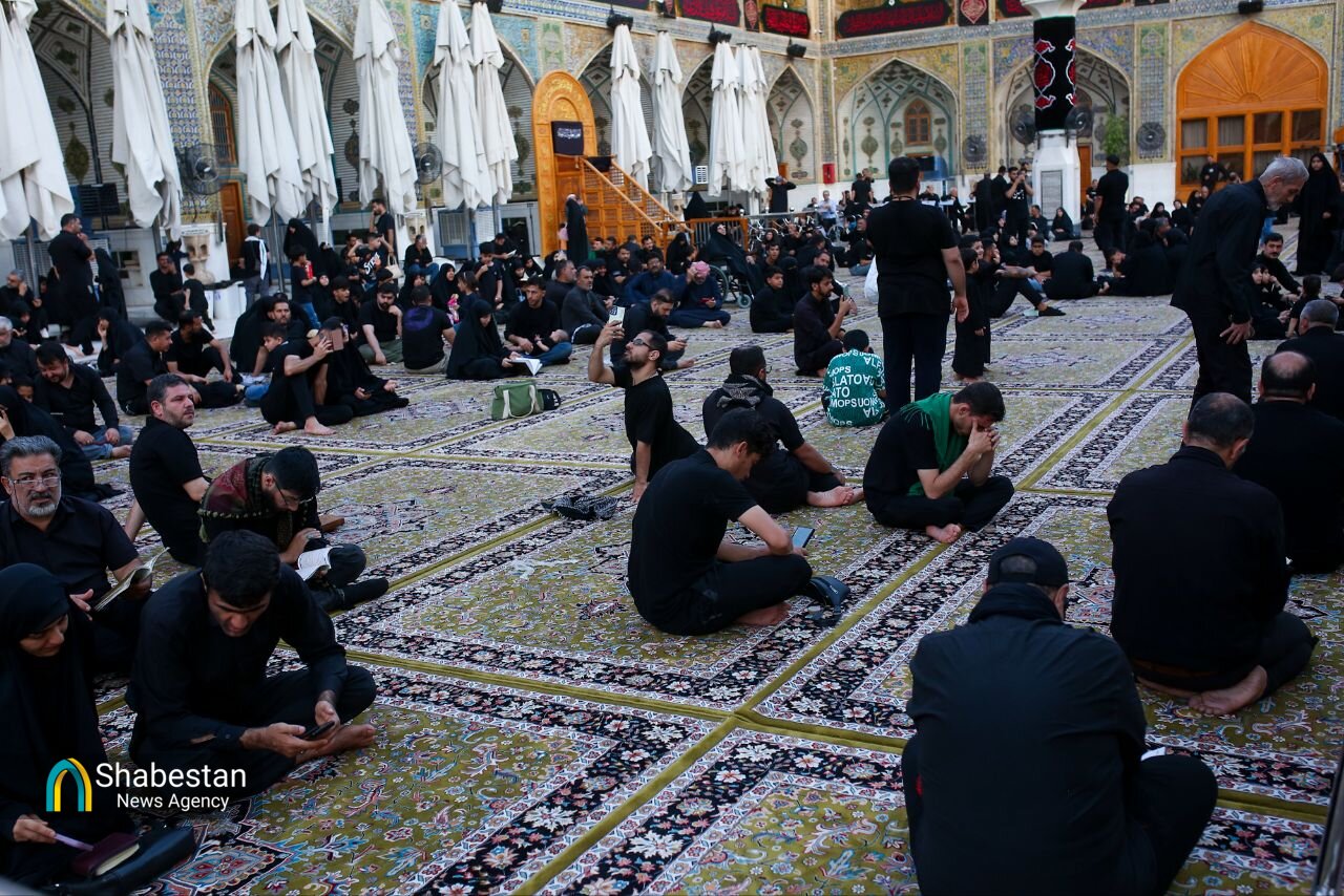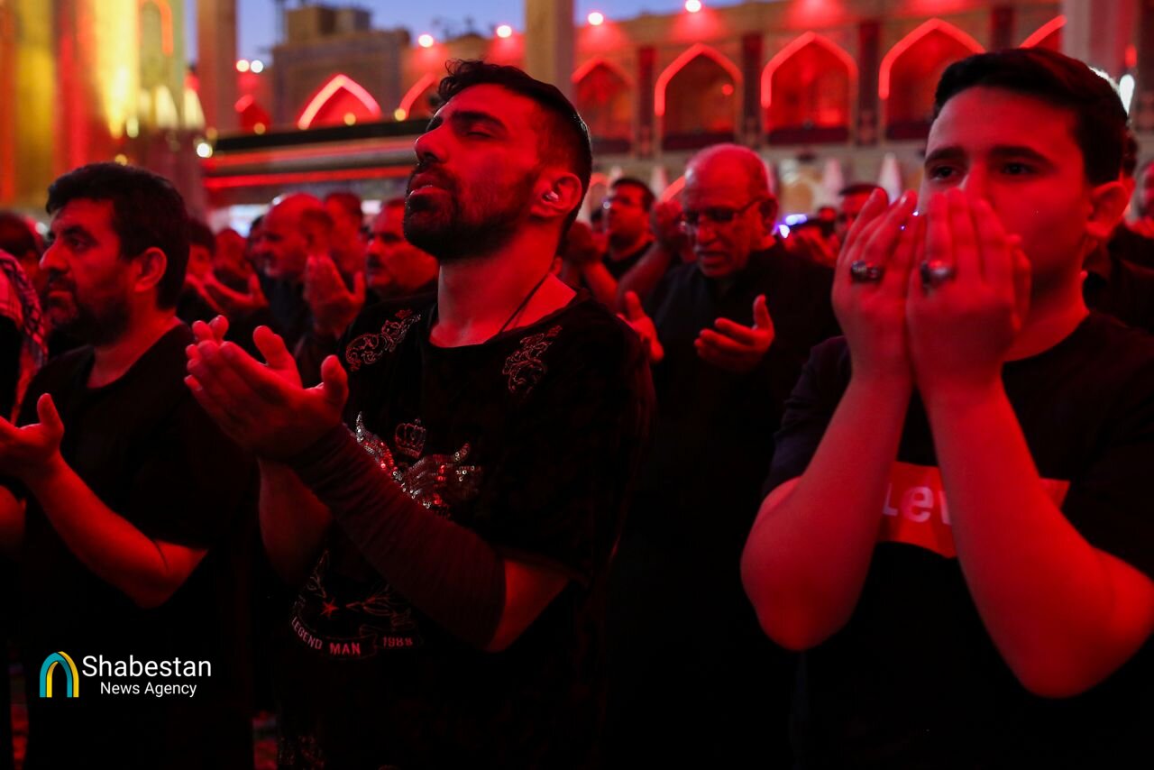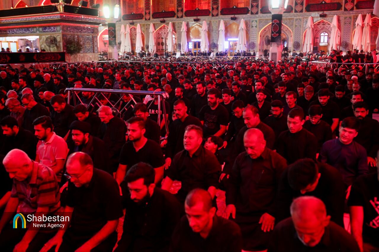 زائران و مجاوران حرم امیرالمؤمنین علی(علیه‌السلام) در شب شهادت امام سجاد(علیه‌السلام) به عزاداری پرداختند.