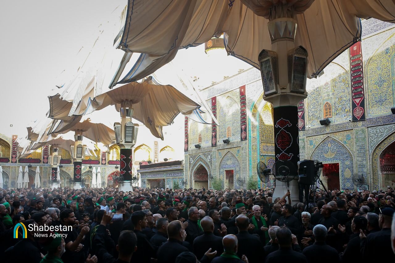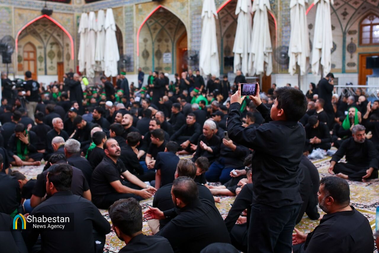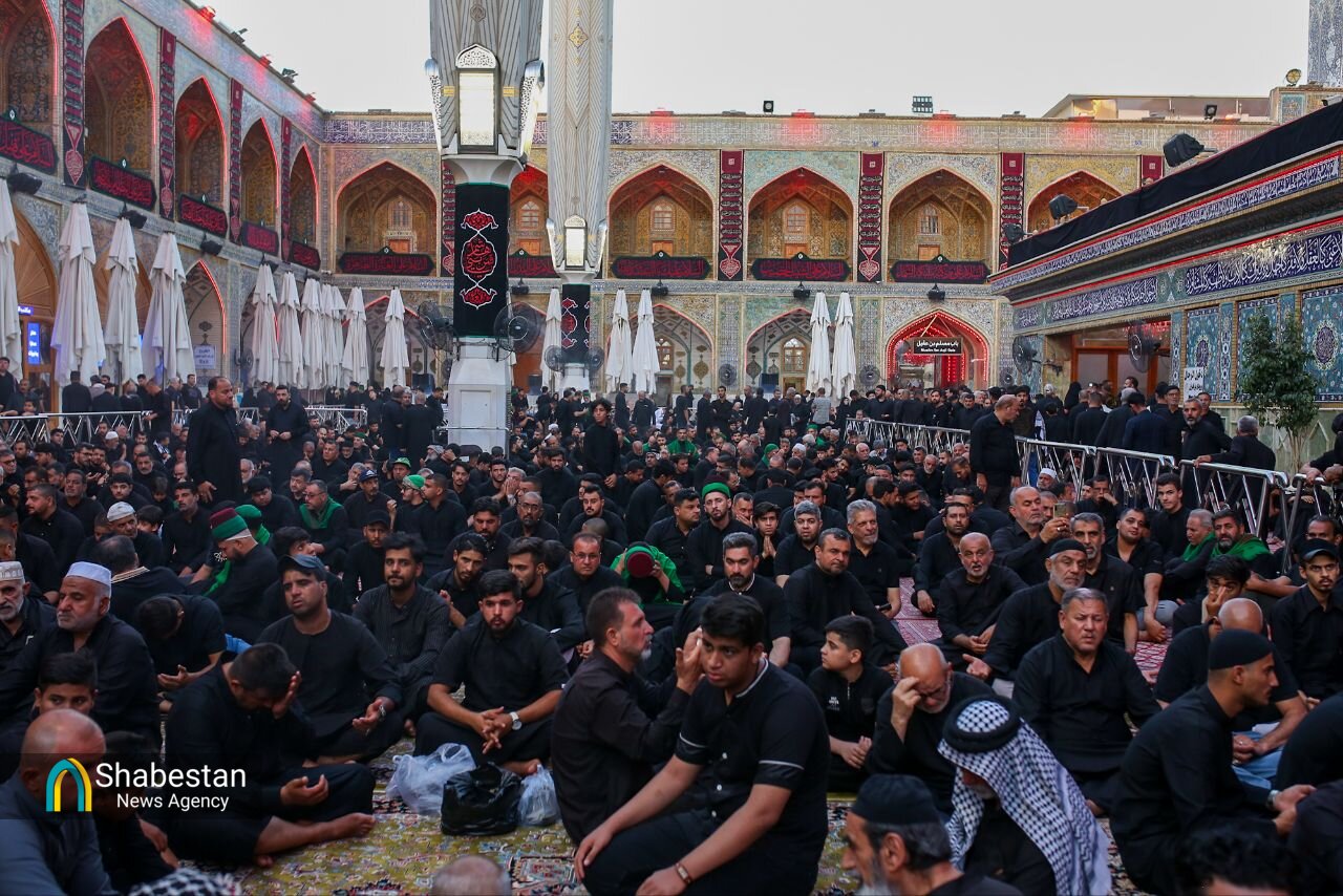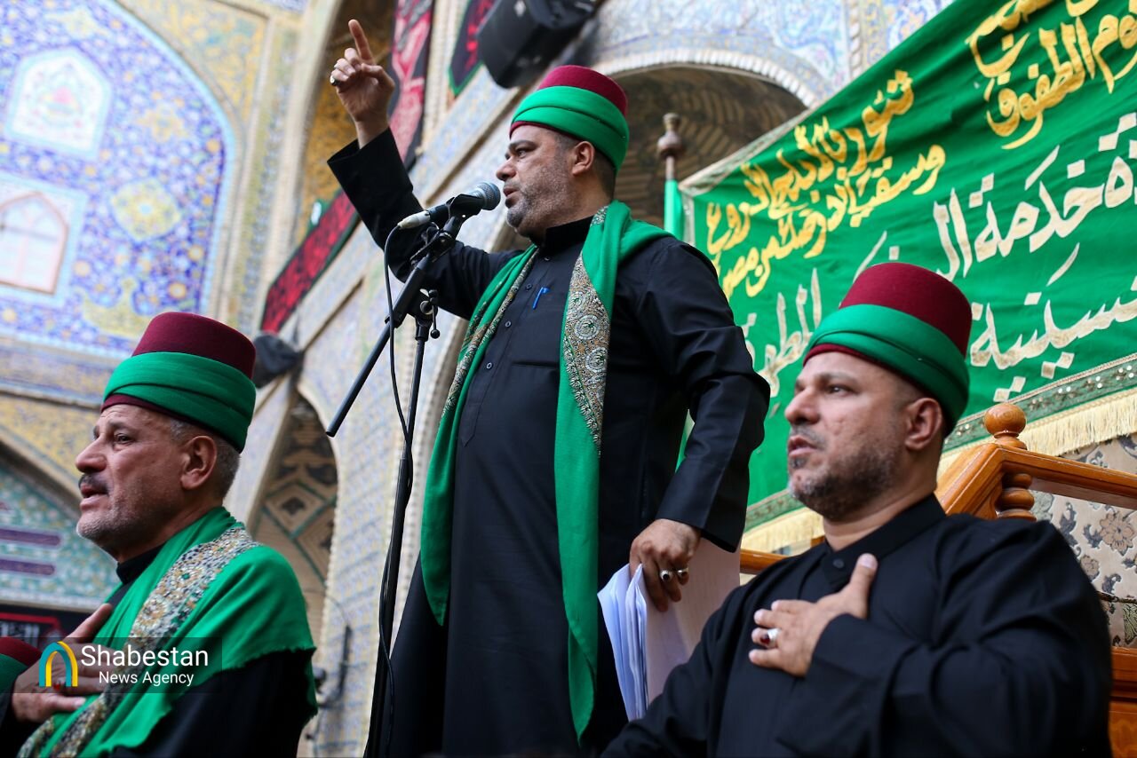 زائران و مجاوران حرم امیرالمؤمنین علی(علیه‌السلام) در شب شهادت امام سجاد(علیه‌السلام) به عزاداری پرداختند.