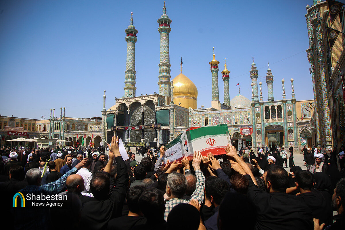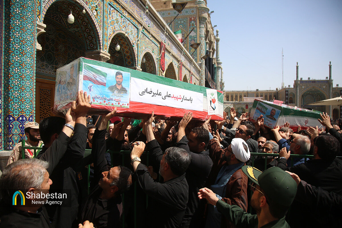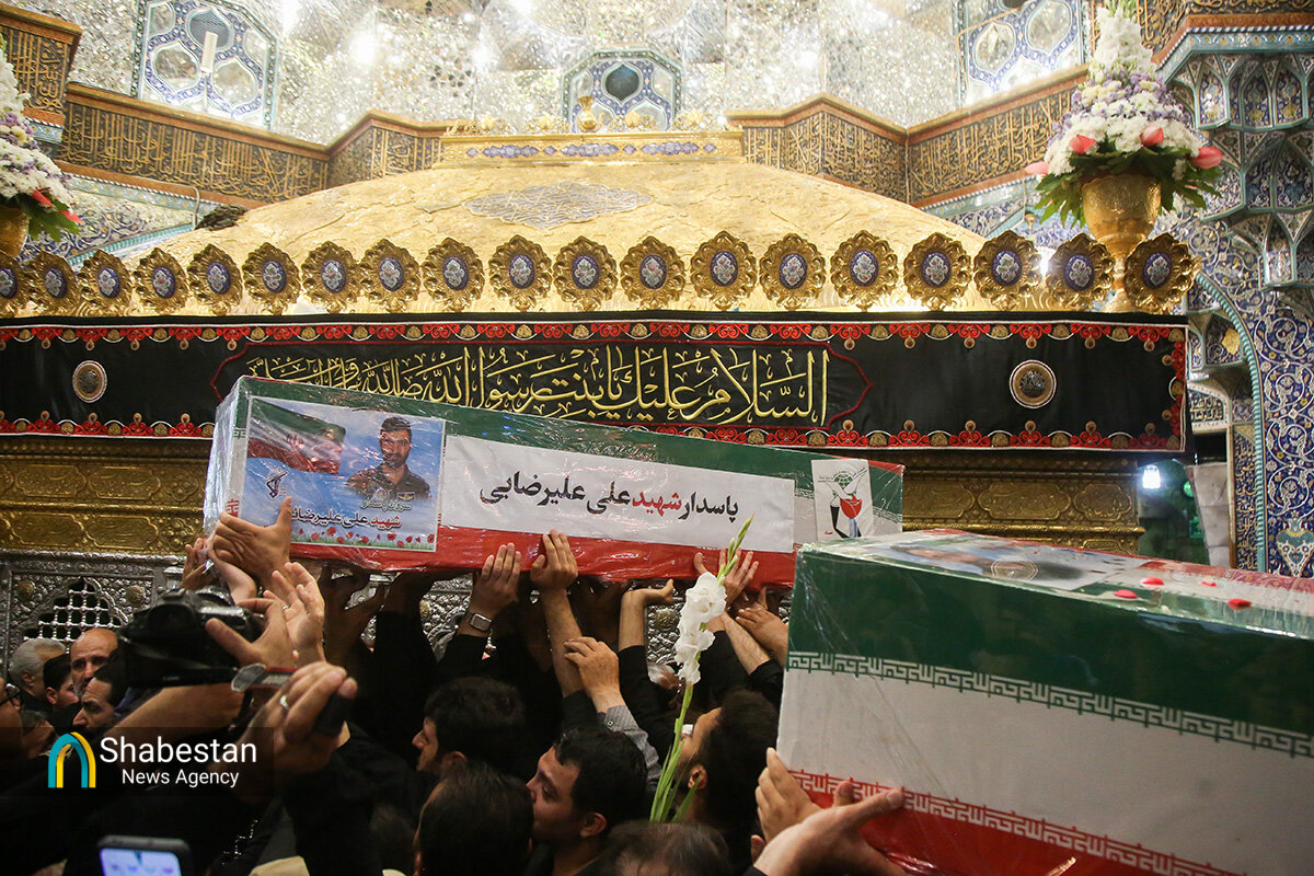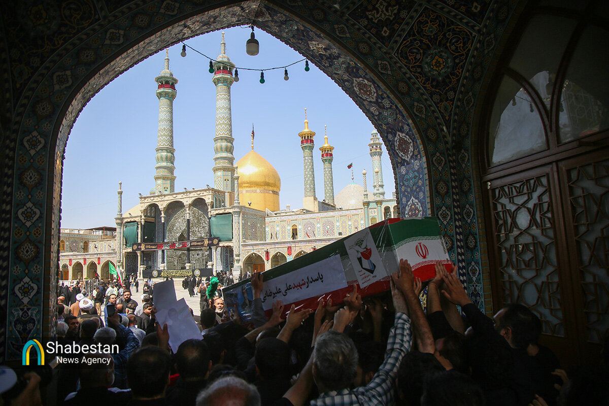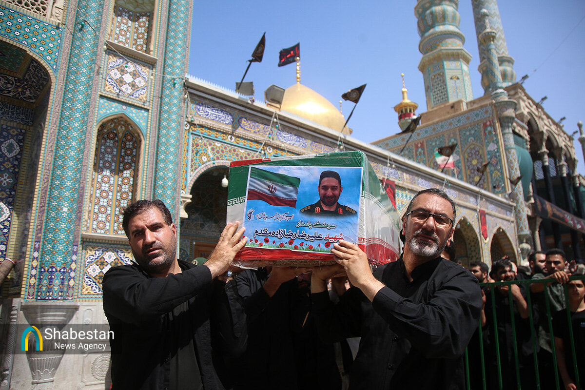 مراسم تشییع و تدفین پیکر مطهر سرهنگ پاسدار علیرضا رضازاده مقدم و سروان پاسدار علی علیرضایی دو شهید دفاع مقدس علیه رژیم منحوس صهیونیستی صبح امروز با حضور پرشور مردم قم در حرم مطهر حضرت فاطمه معصومه سلام الله علیها برگزار شد.