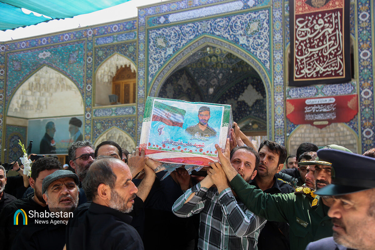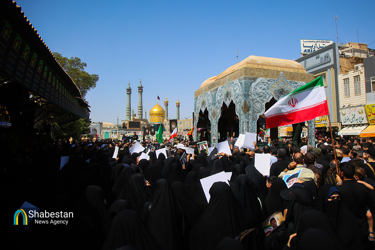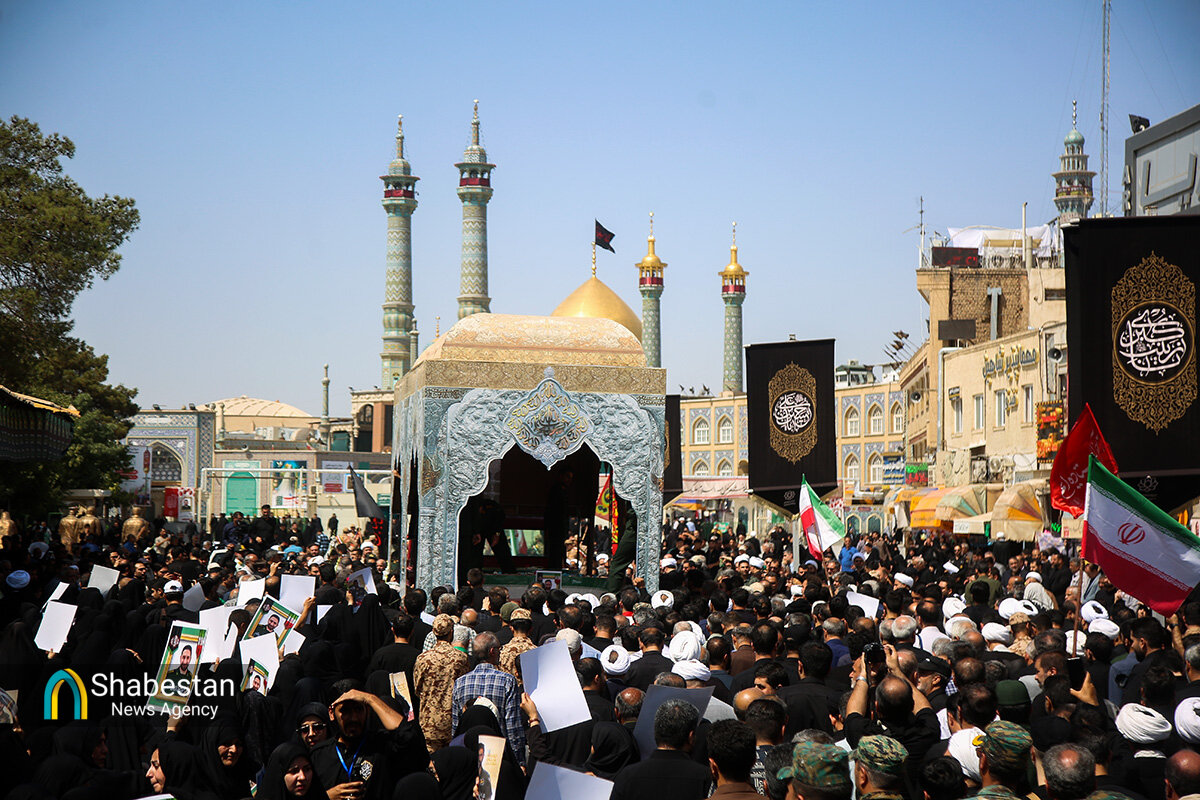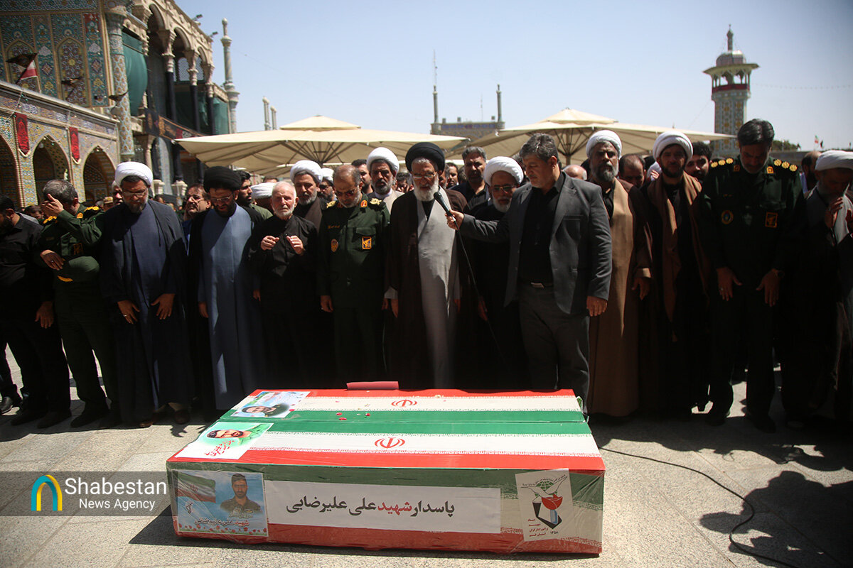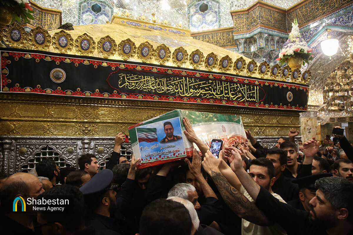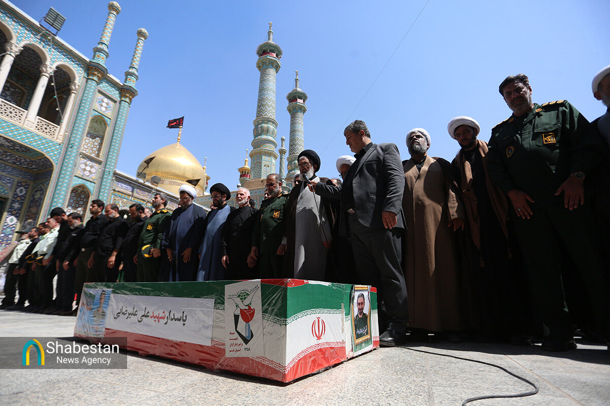 مراسم تشییع و تدفین پیکر مطهر سرهنگ پاسدار علیرضا رضازاده مقدم و سروان پاسدار علی علیرضایی دو شهید دفاع مقدس علیه رژیم منحوس صهیونیستی صبح امروز با حضور پرشور مردم قم در حرم مطهر حضرت فاطمه معصومه سلام الله علیها برگزار شد.