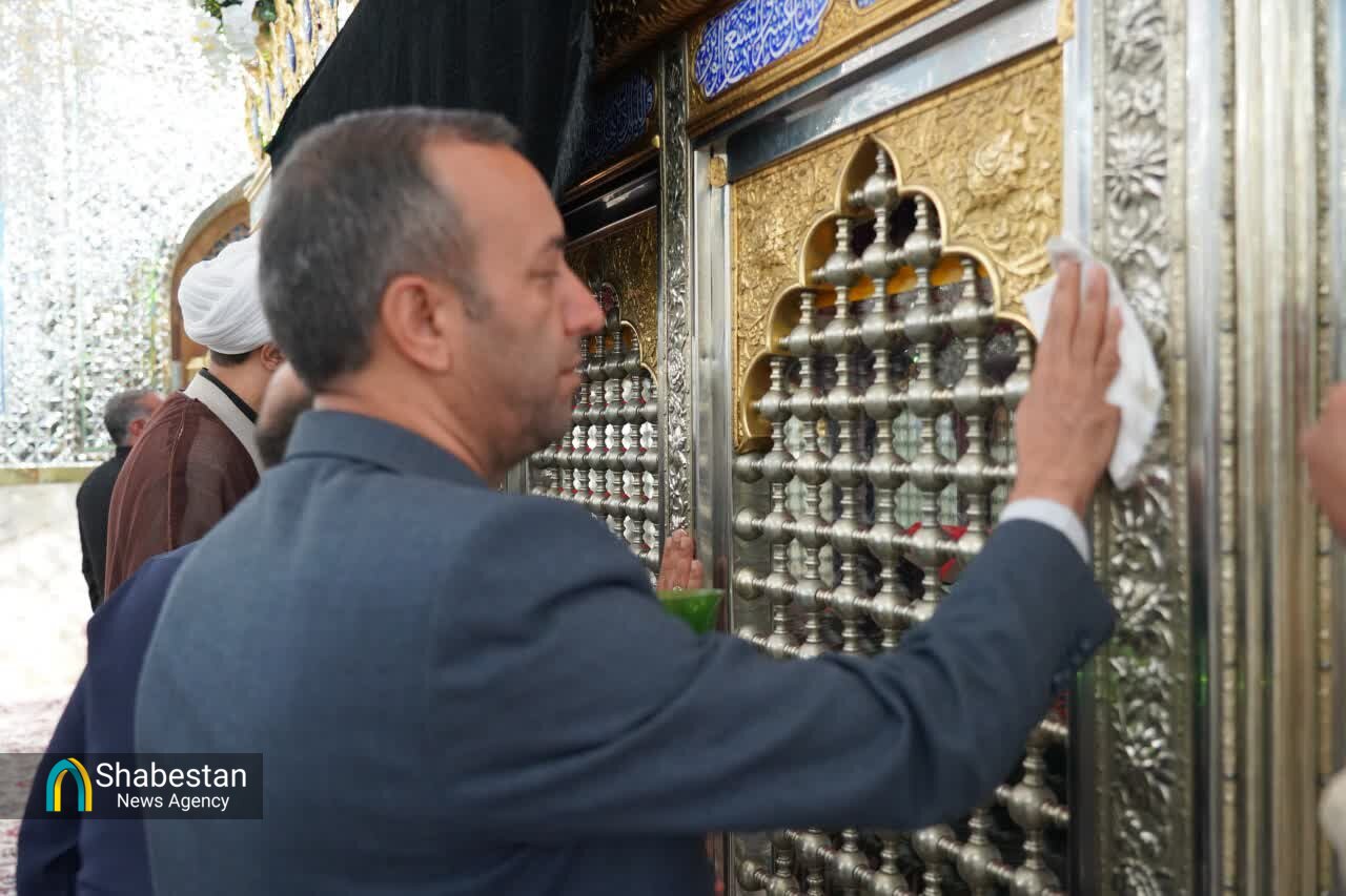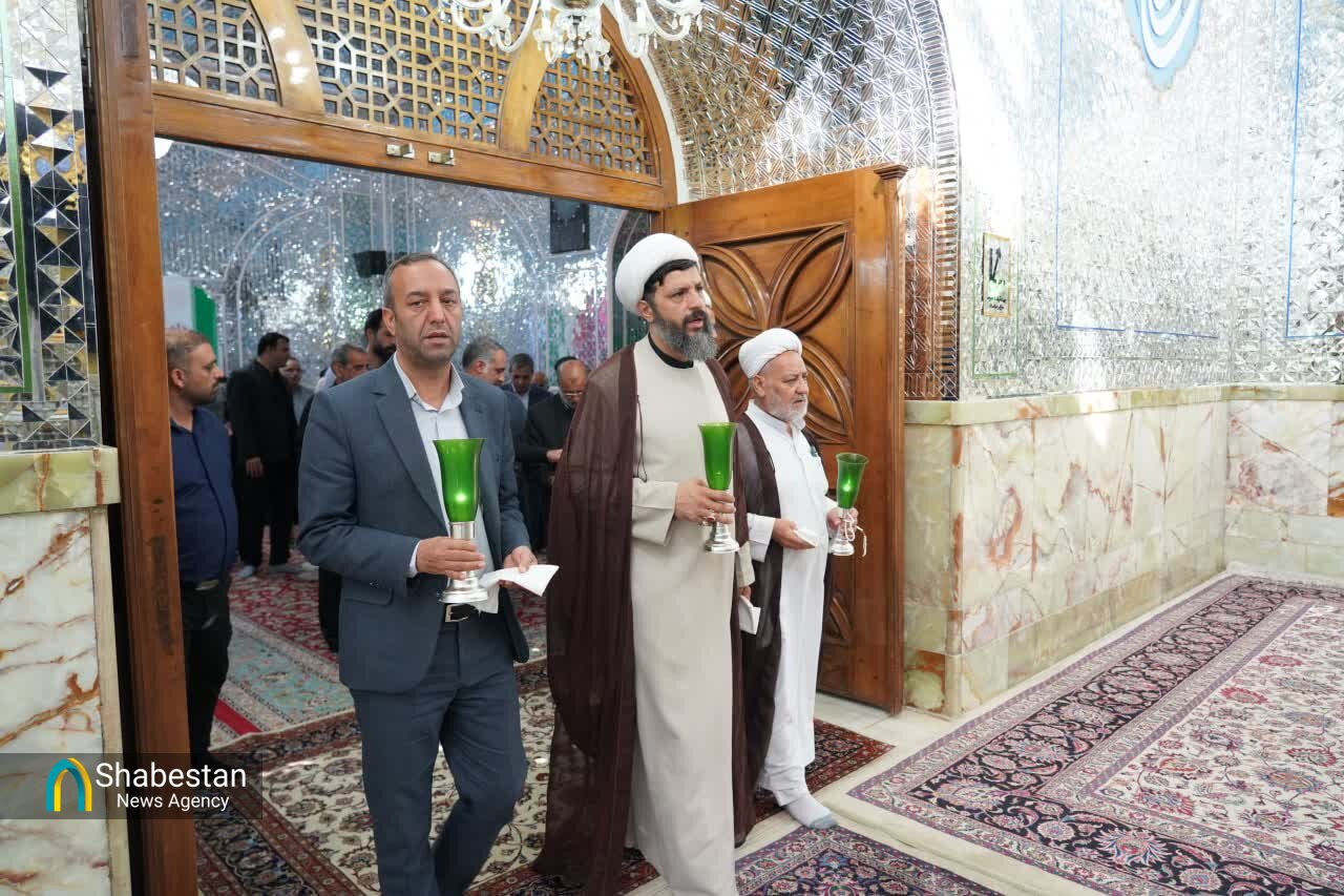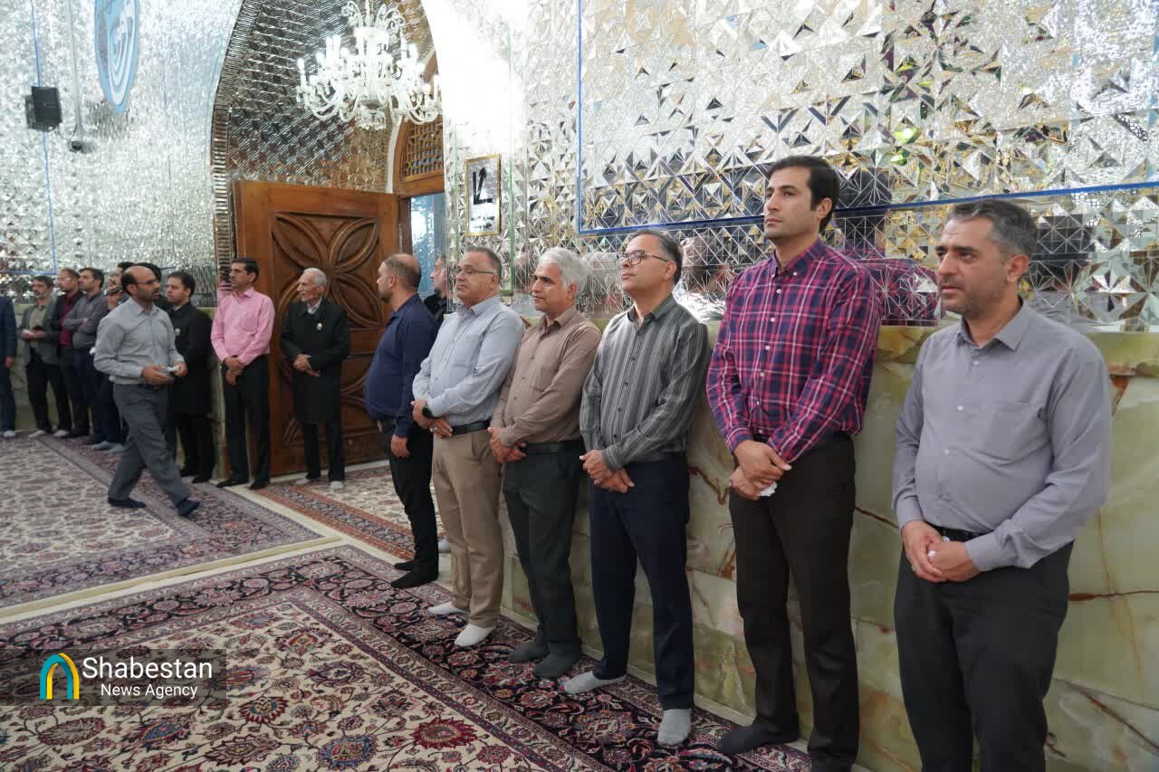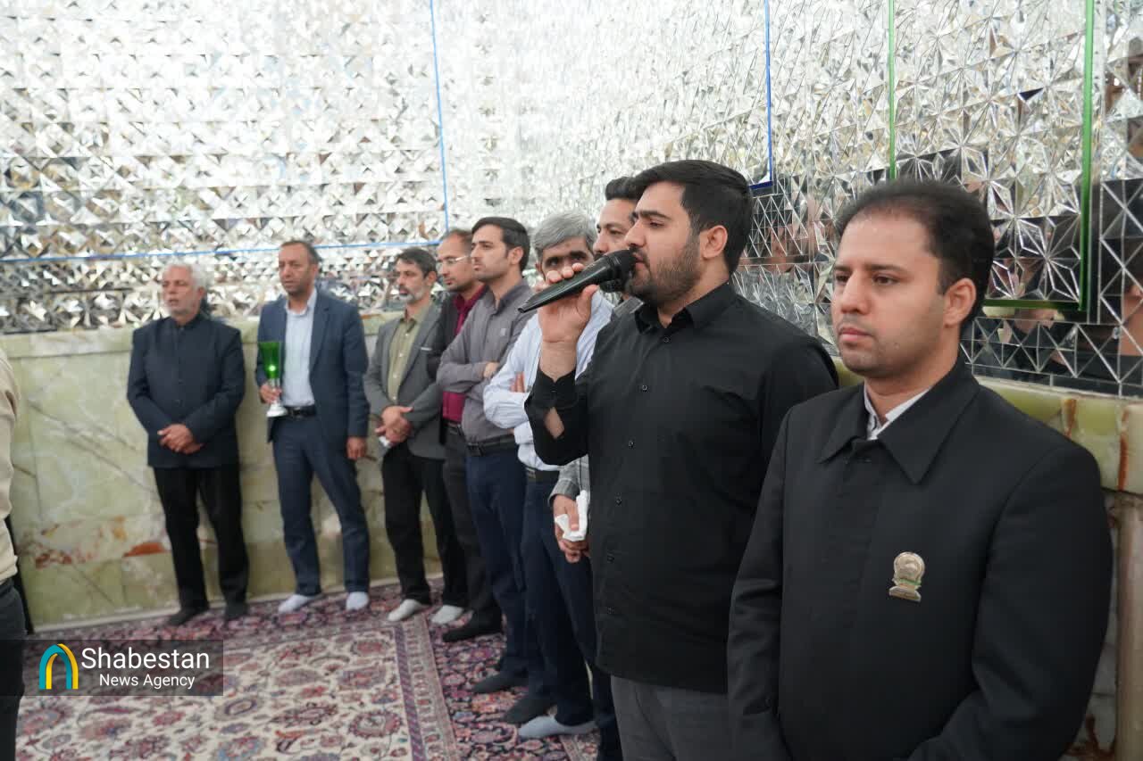 مراسم اذن خدمت با حضور اعضای ستاد نماز جمعه شهرستان طبس به مناسبت پنجم مردادماه سالروز اقامه اولین نماز جمعه جمهوری اسلامی ایران در آستان حضرت حسین بن موسی الکاظم(ع) طبس برگزار شد.