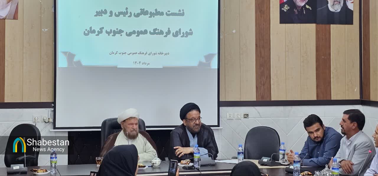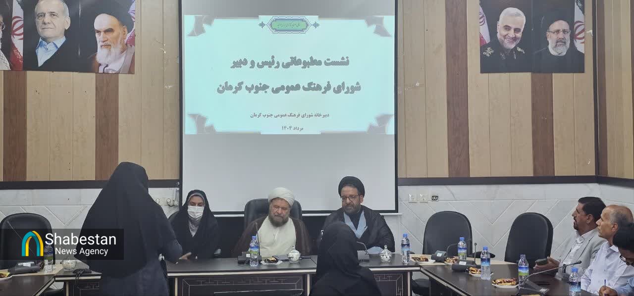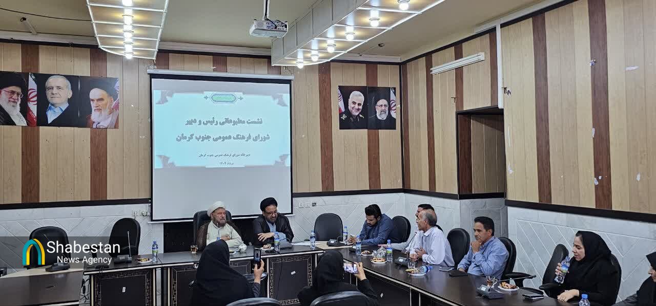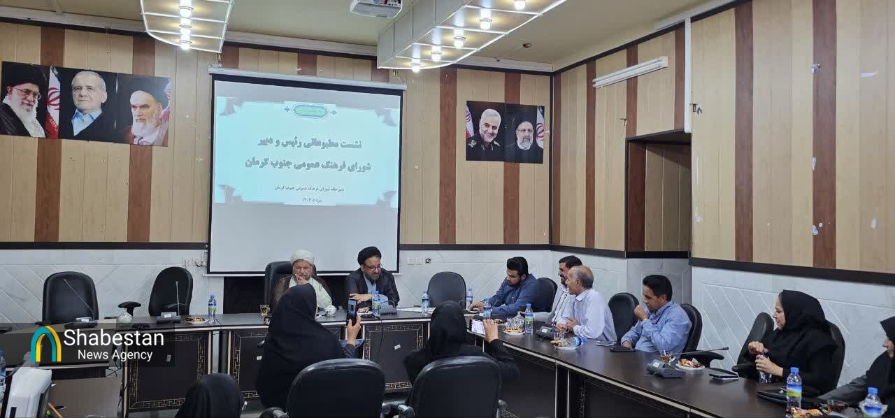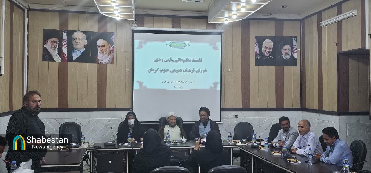 نشست خبری رییس و دبیر شورای فرهنگ عمومی جنوب کرمان با خبرنگاران با حضور فرماندار جیرفت در سالن اجتماعات فرمانداری این شهرستان برگزار شد.
