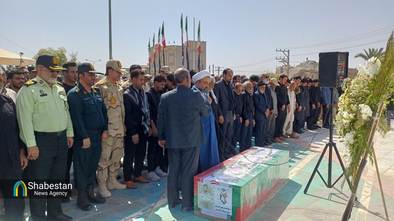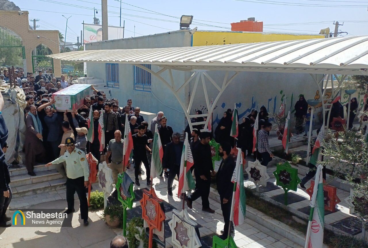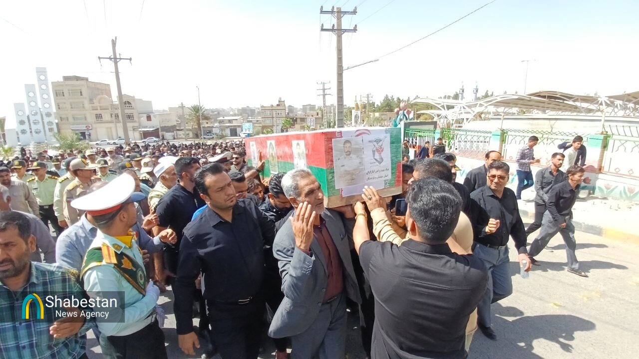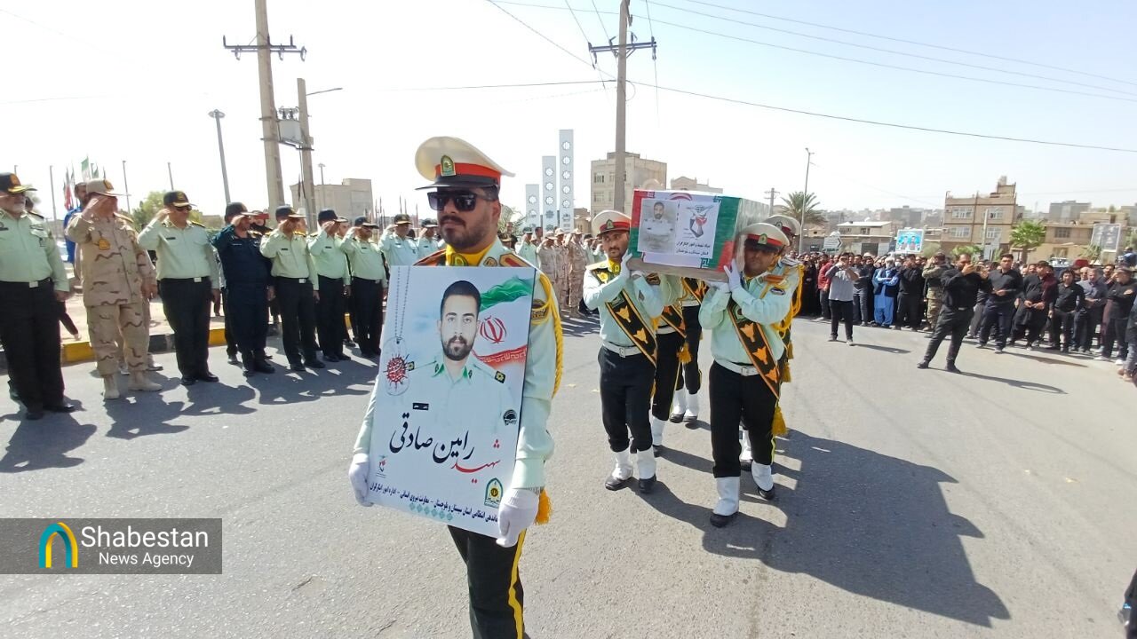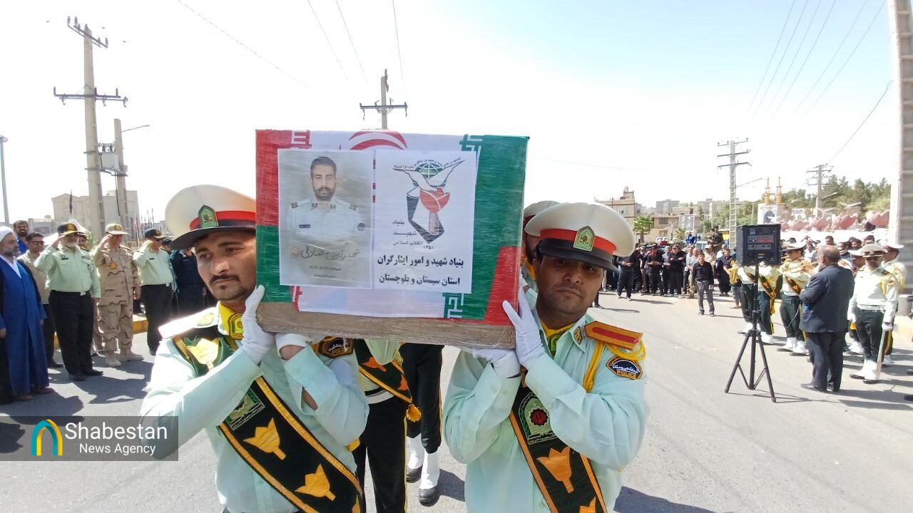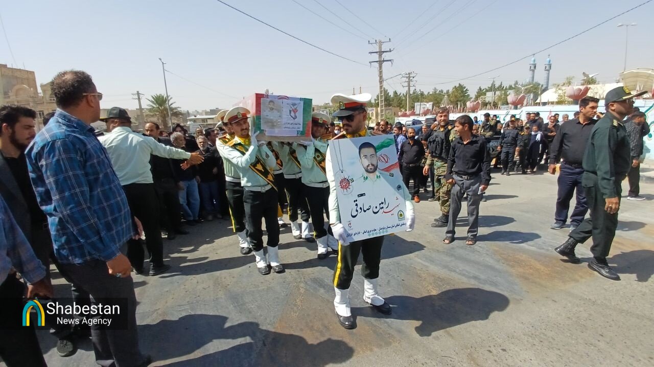 مراسم تشییع پیکر مطهر شهید مدافع امنیت ستوانسوم رامین صادقی که توسط عناصر خبیث گروهک تروریستی جیش الظلم در ایرانشهر در شامگاه جمعه ۲۴ مردادماه به فیض شهادت نائل گردید، امروز باحضور پر شور مردم ولایتمدار زاهدان برگزار شد.